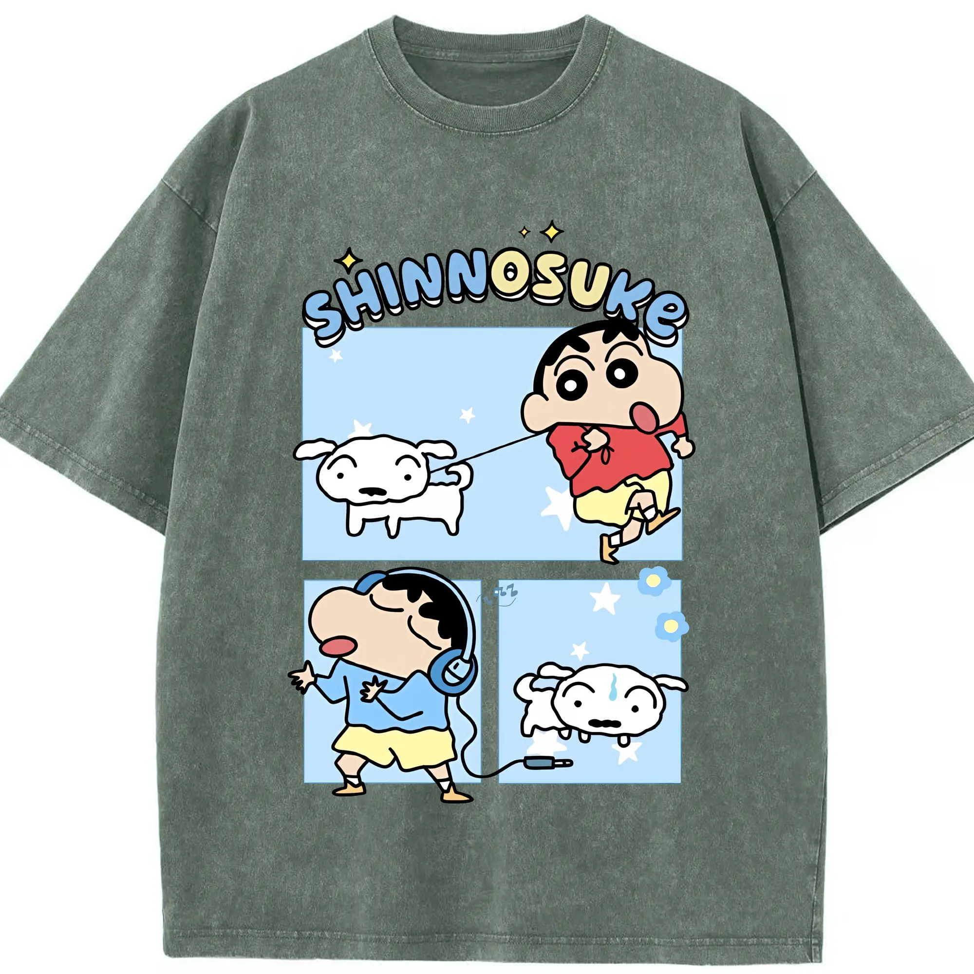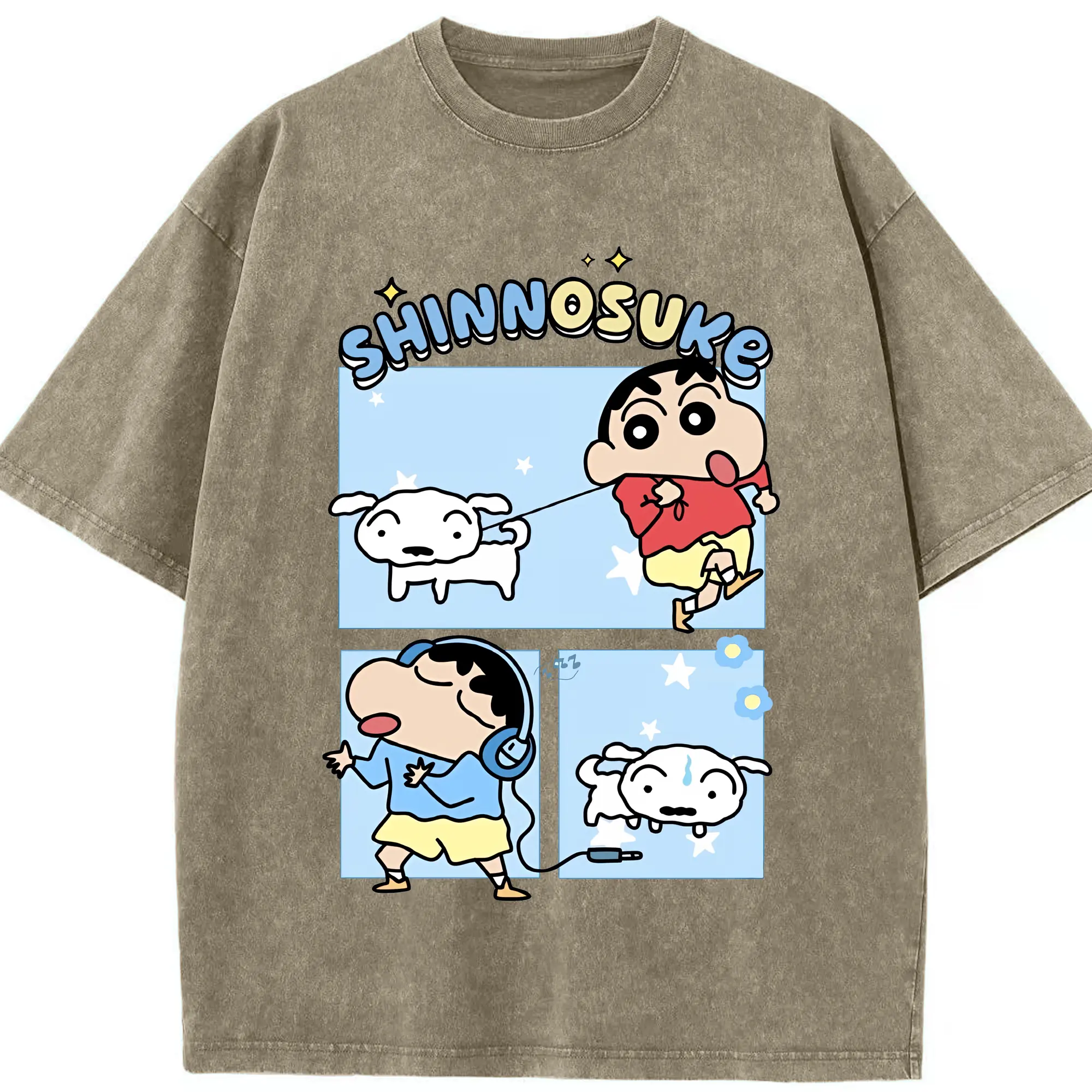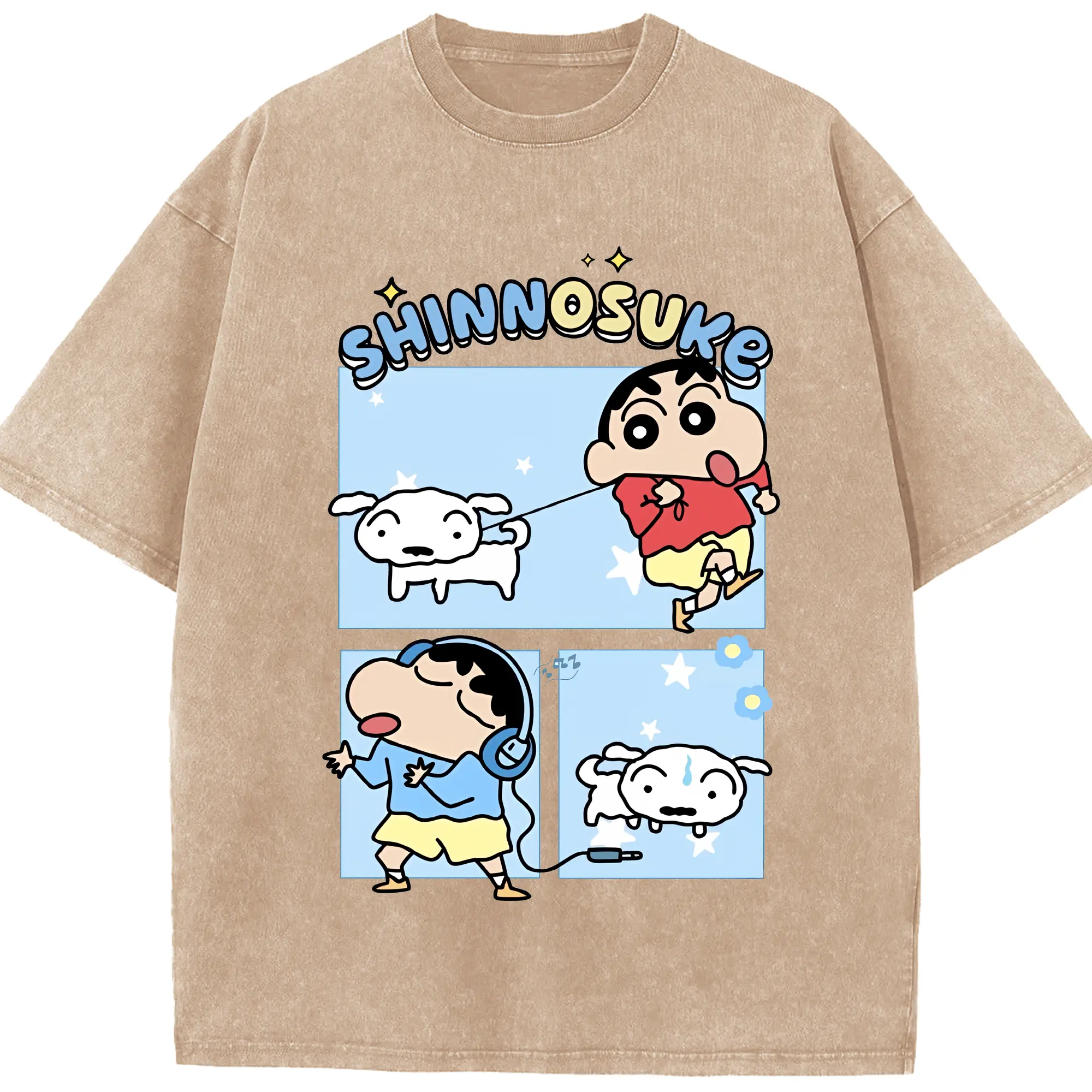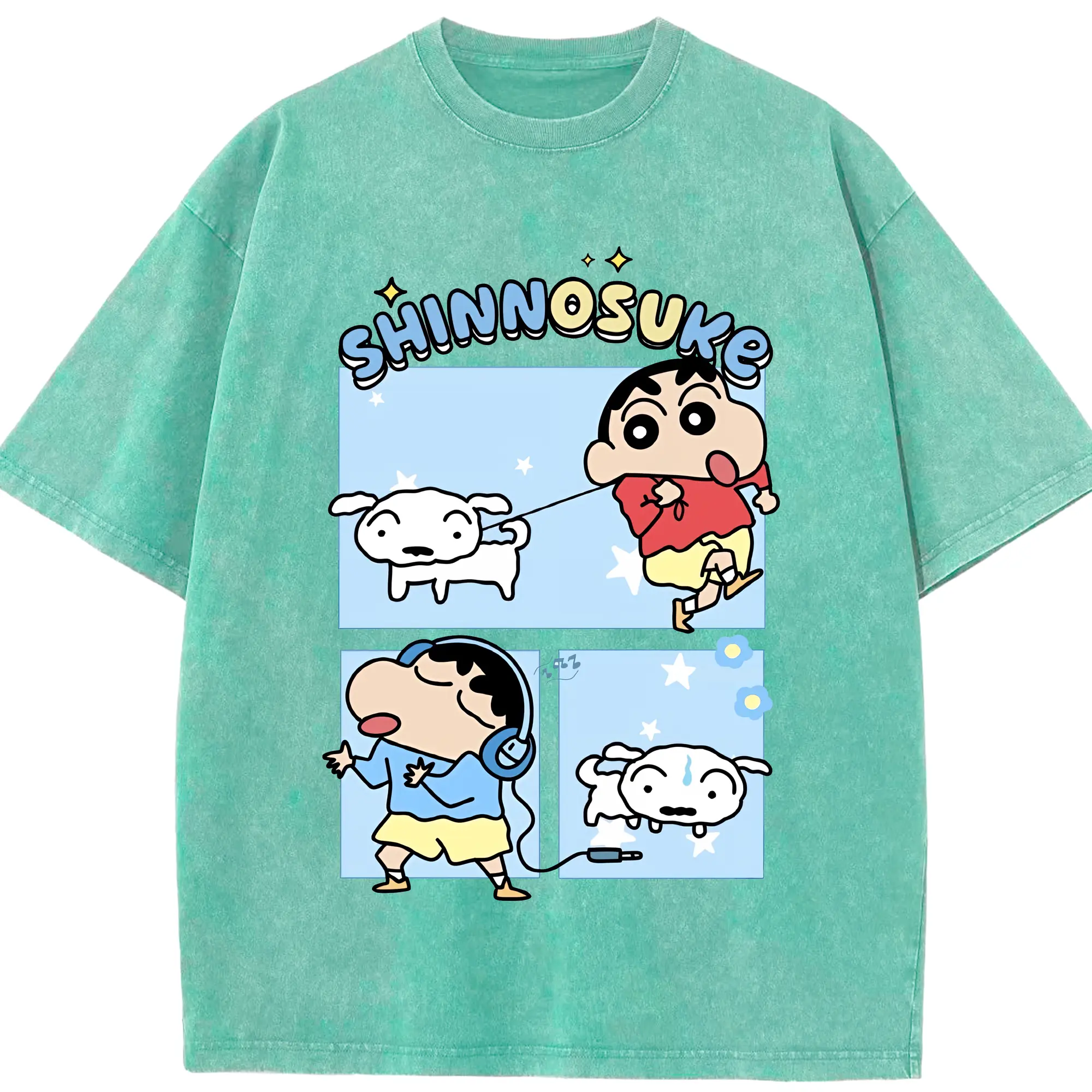 クレヨンしんちゃん グッズ 野原 しんのすけ - 綿100% ヴィンテージ風 半袖Tシャツ ・ 背面プリント ・ 柔らか肌触り ・ 通気性 快適 ・ スポーツ カジュアル 外出用