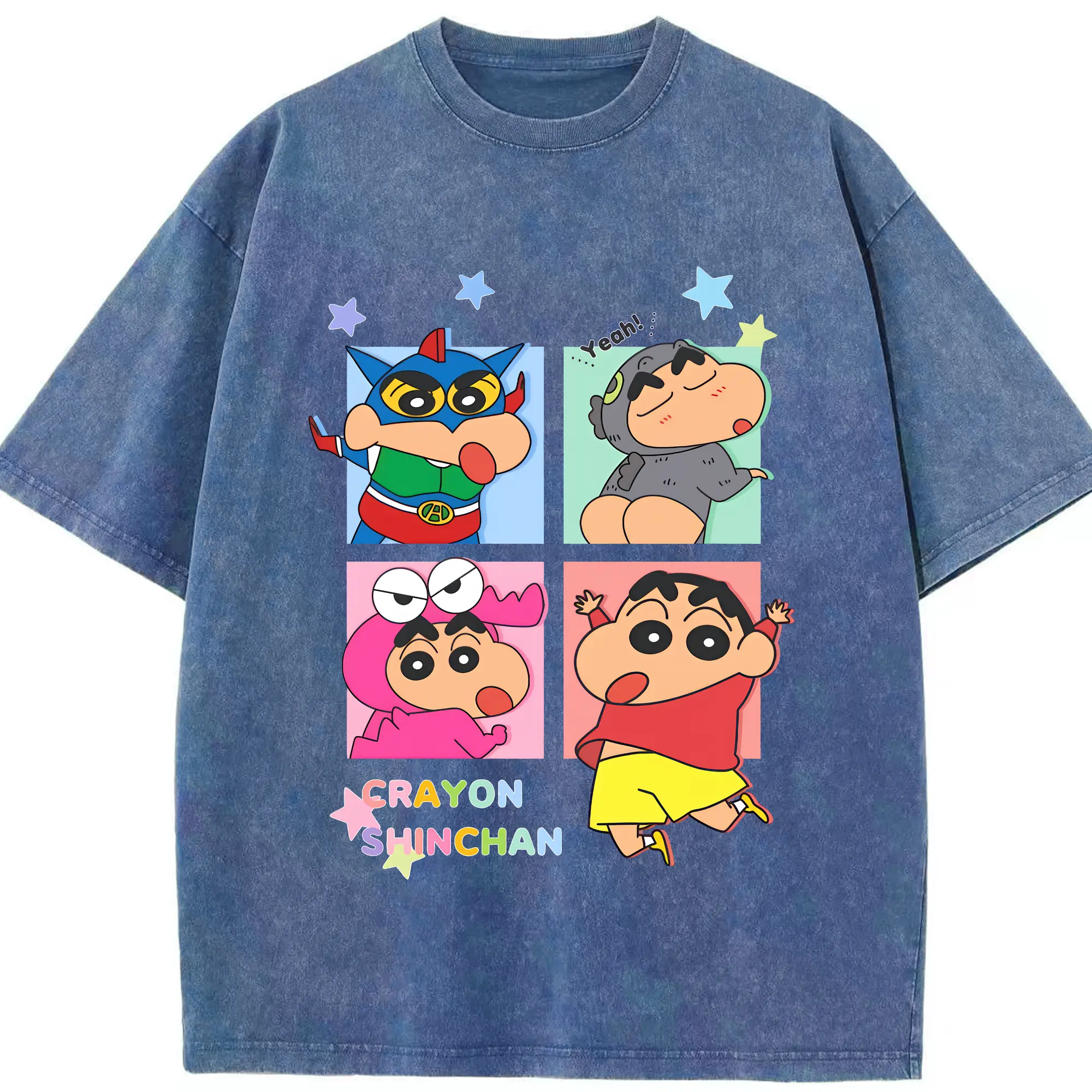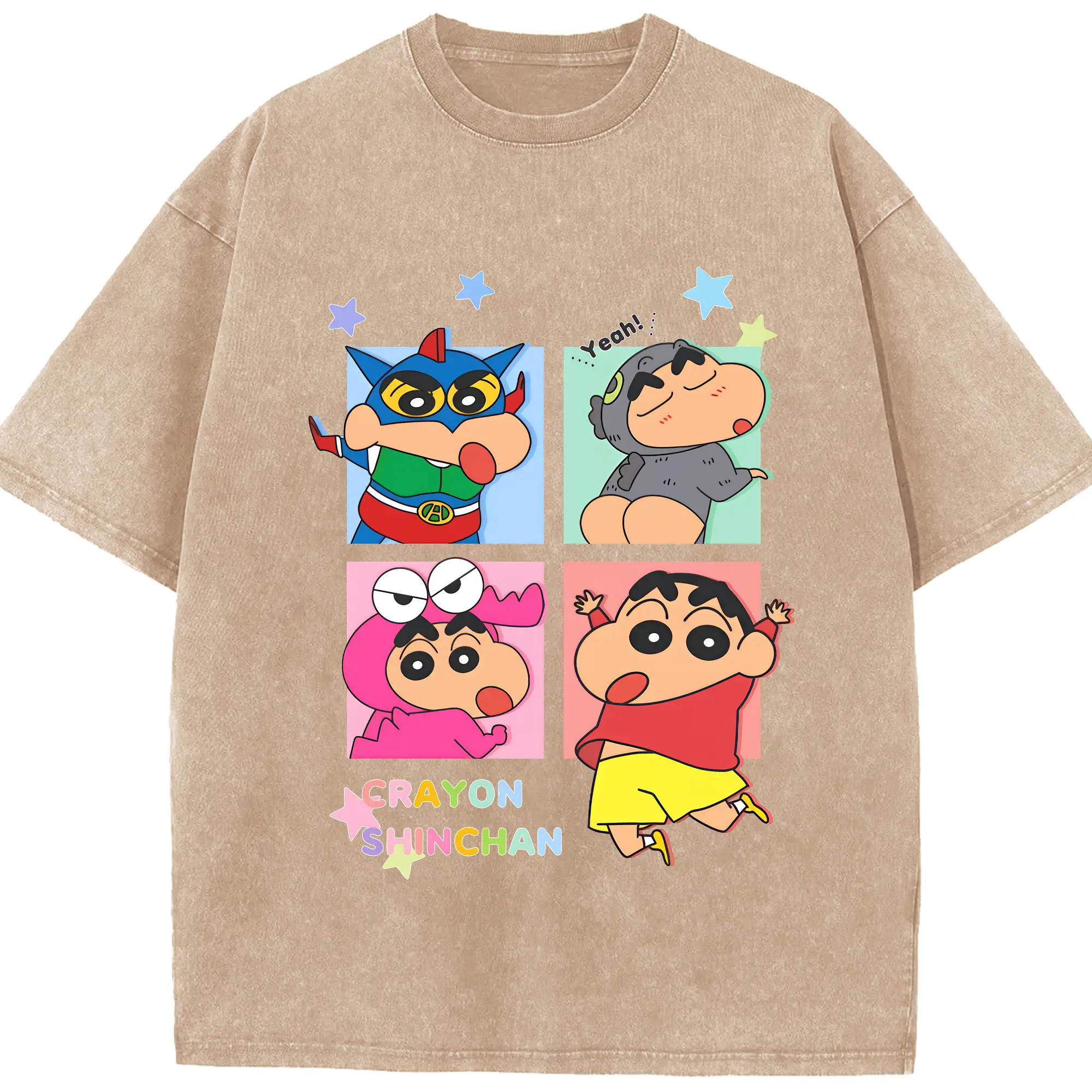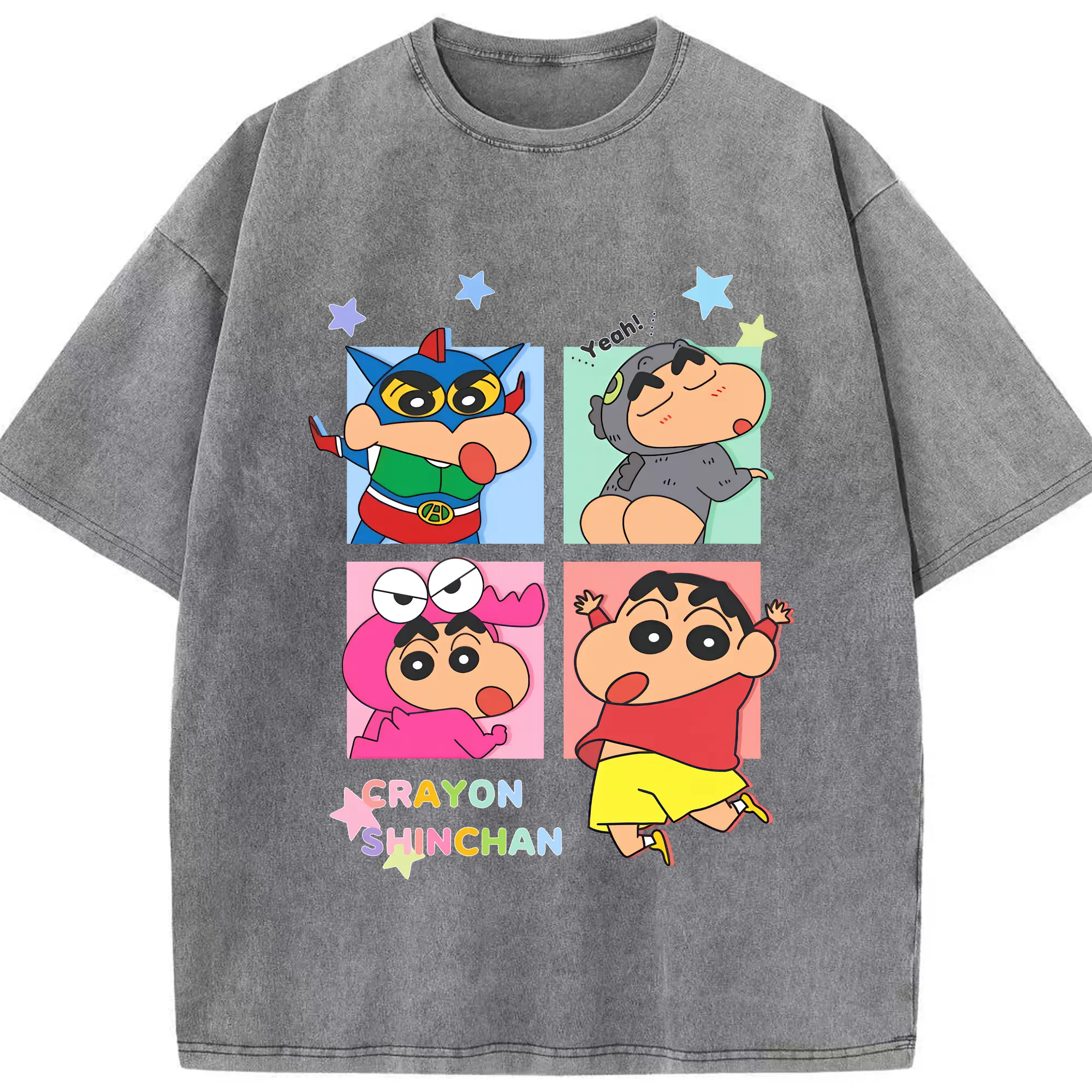 クレヨンしんちゃん グッズ 野原 しんのすけ - 綿100% ヴィンテージ風 半袖Tシャツ ・ 背面プリント ・ 柔らか肌触り ・ 通気性 快適 ・ スポーツ カジュアル 外出用