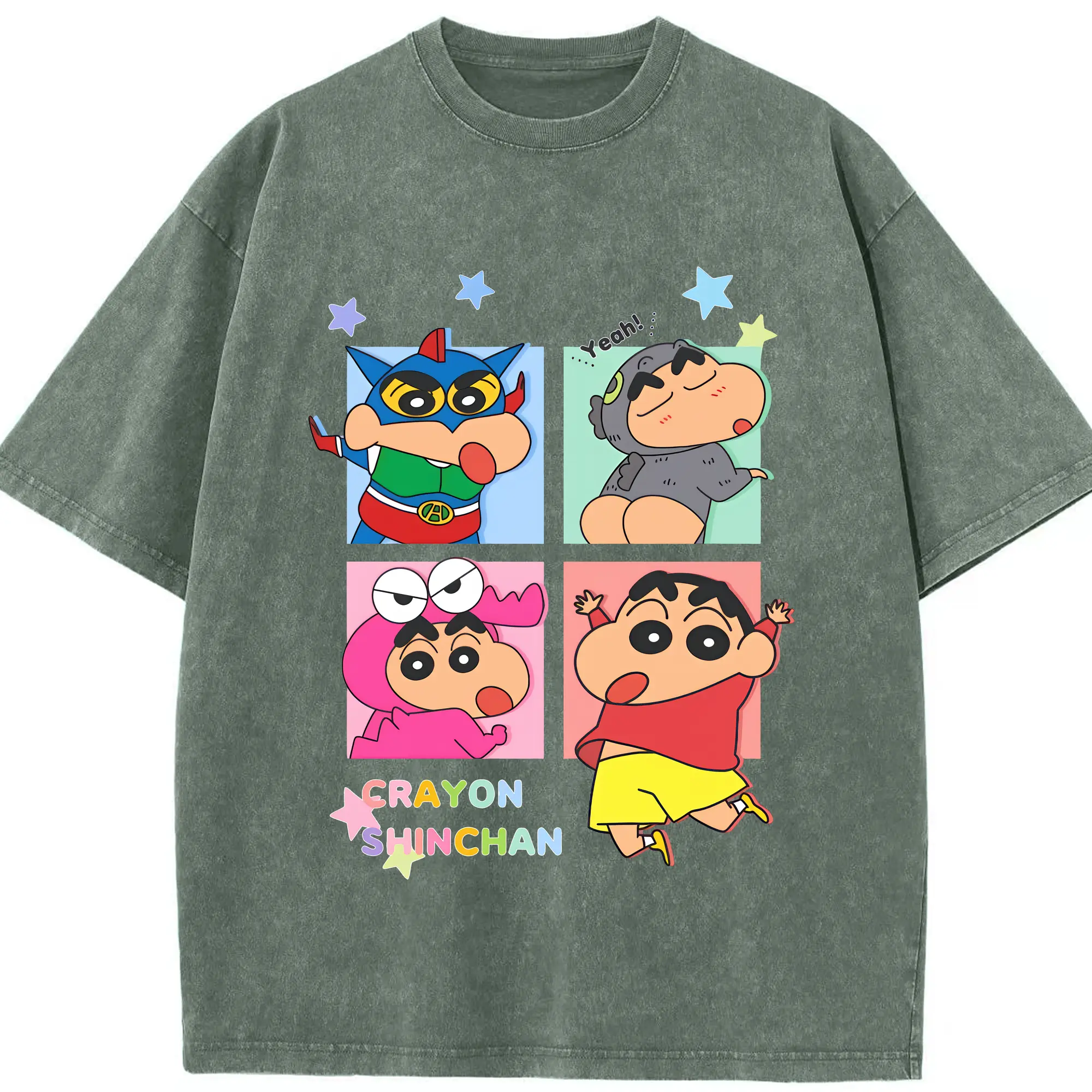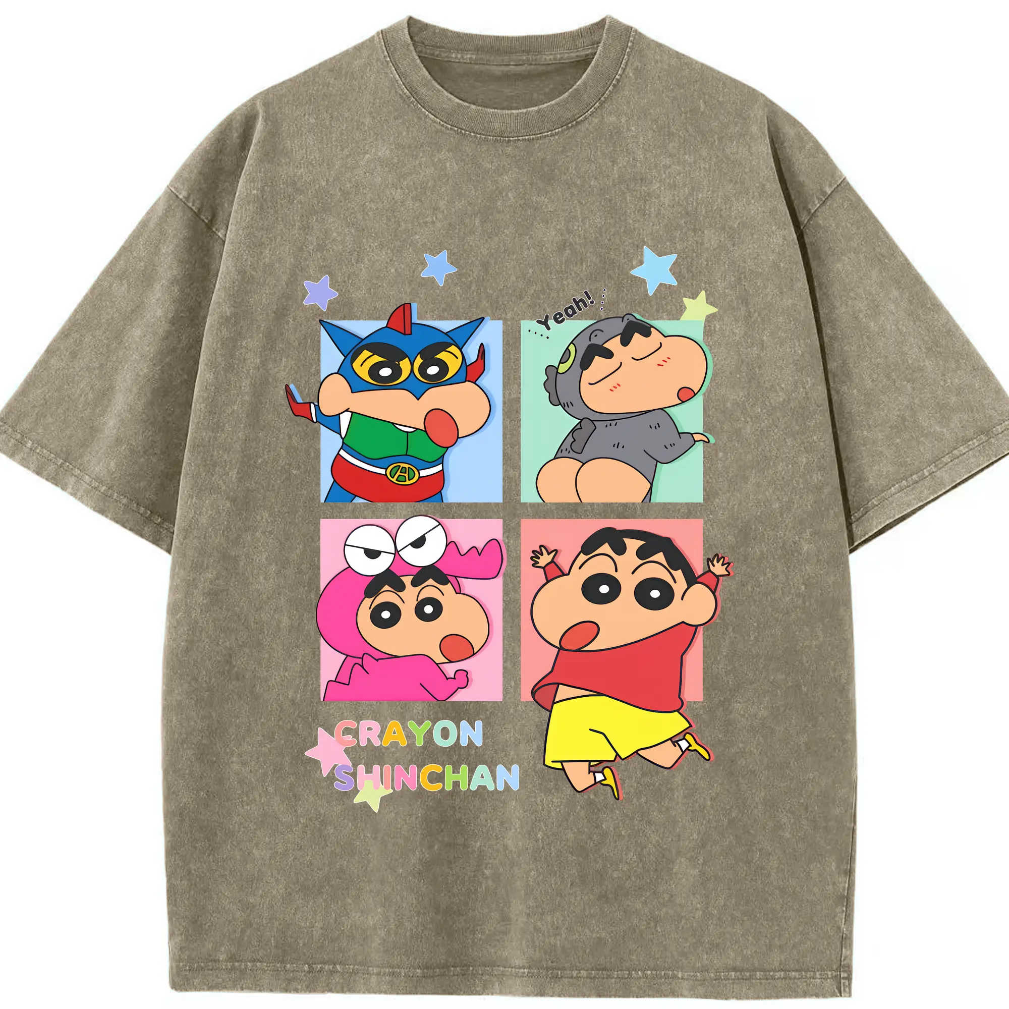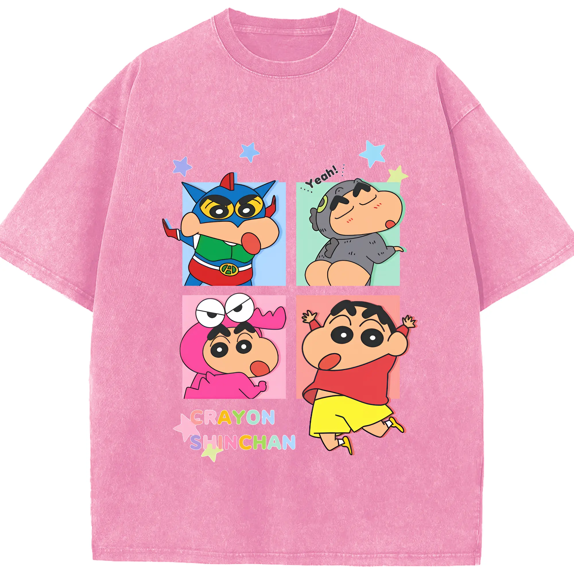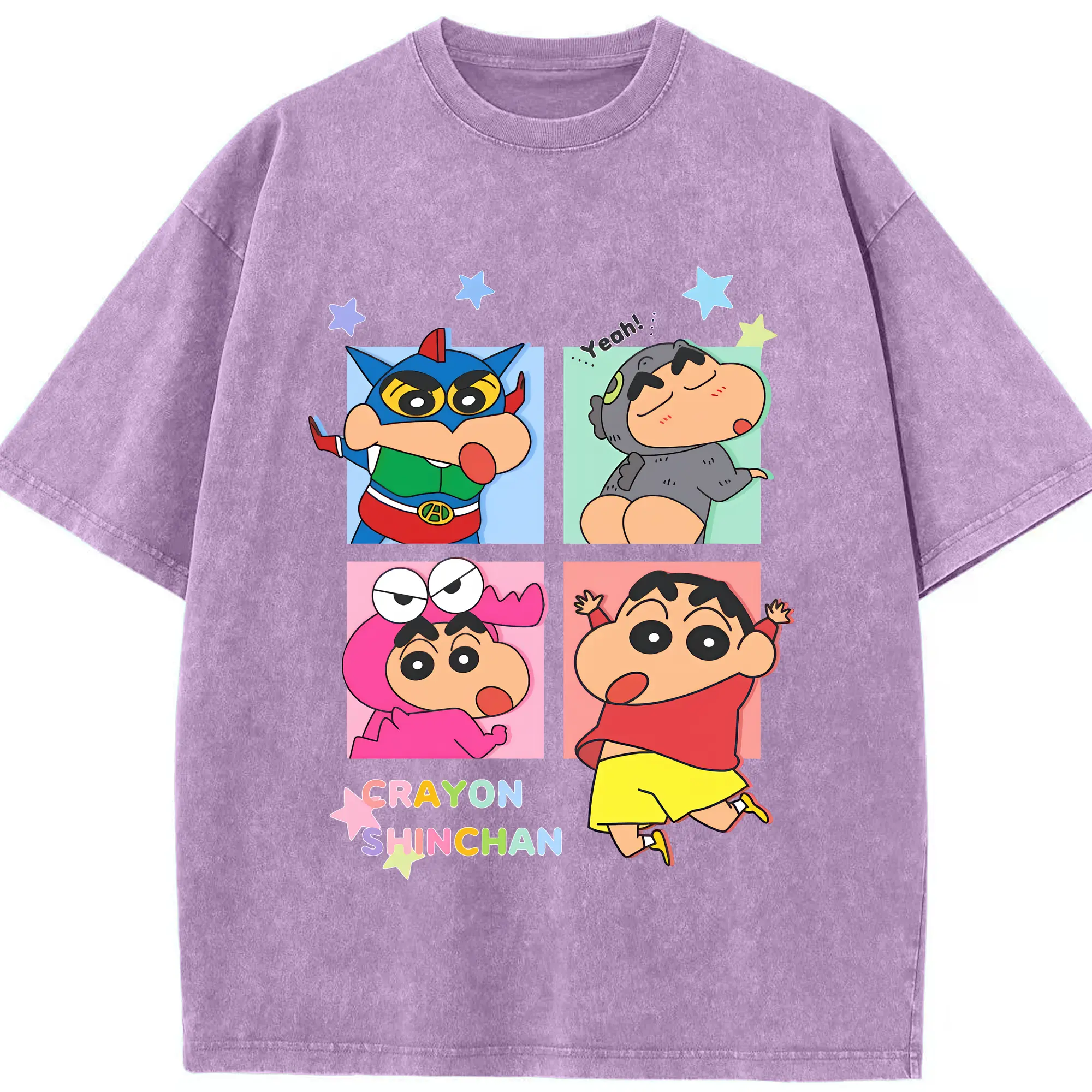 クレヨンしんちゃん グッズ 野原 しんのすけ - 綿100% ヴィンテージ風 半袖Tシャツ ・ 背面プリント ・ 柔らか肌触り ・ 通気性 快適 ・ スポーツ カジュアル 外出用