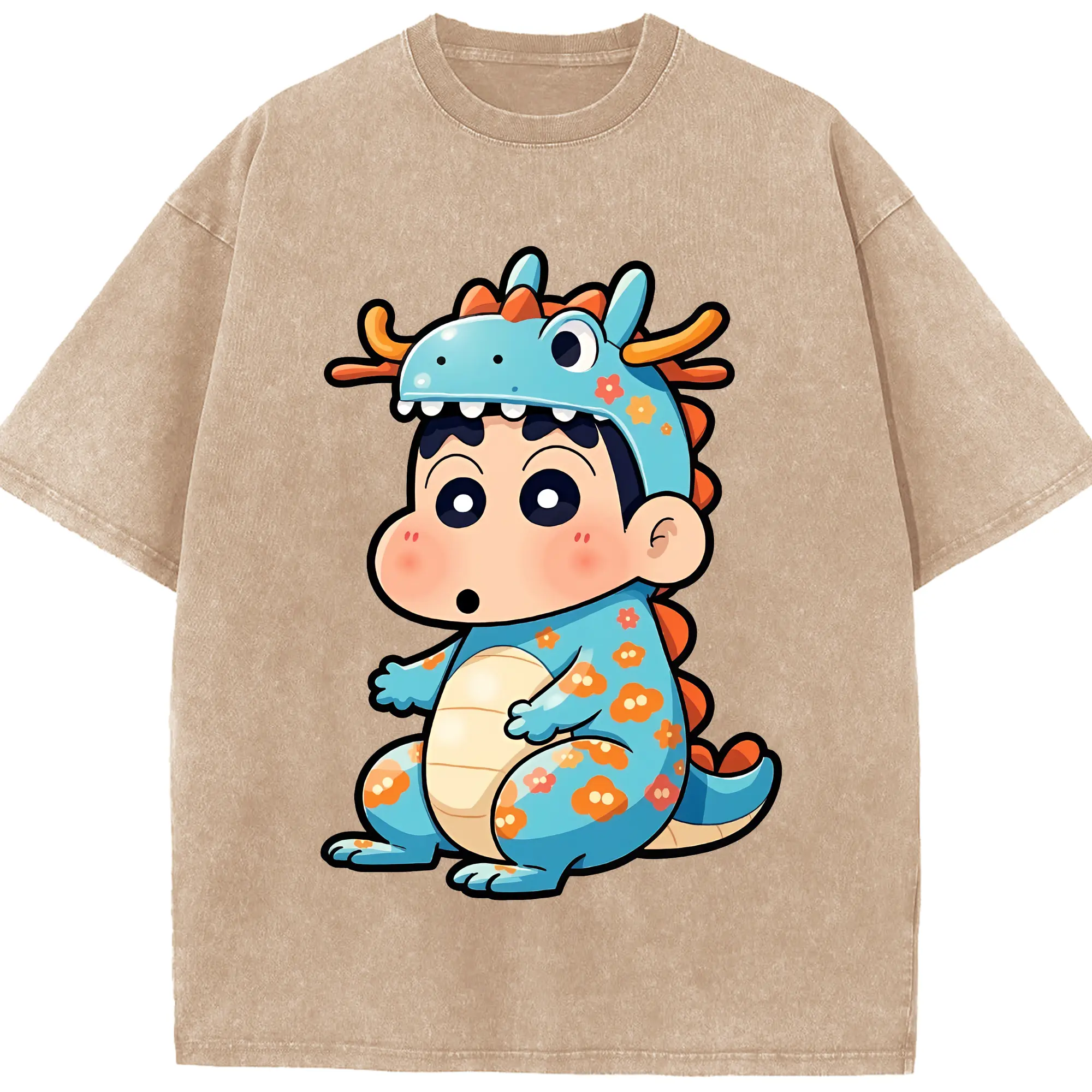 クレヨンしんちゃん グッズ 野原 しんのすけ - 綿100% ヴィンテージ風 半袖Tシャツ ・ 背面プリント ・ 柔らか肌触り ・ 通気性 快適 ・ スポーツ カジュアル 外出用