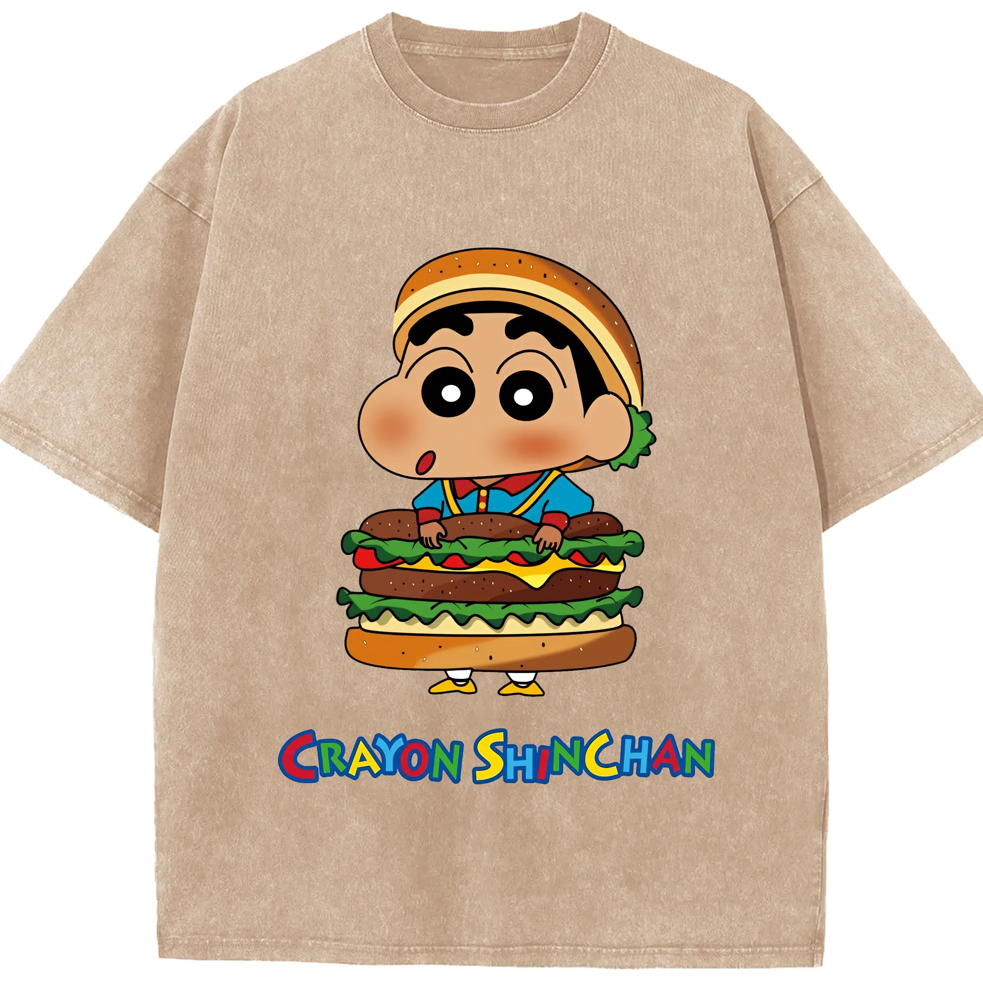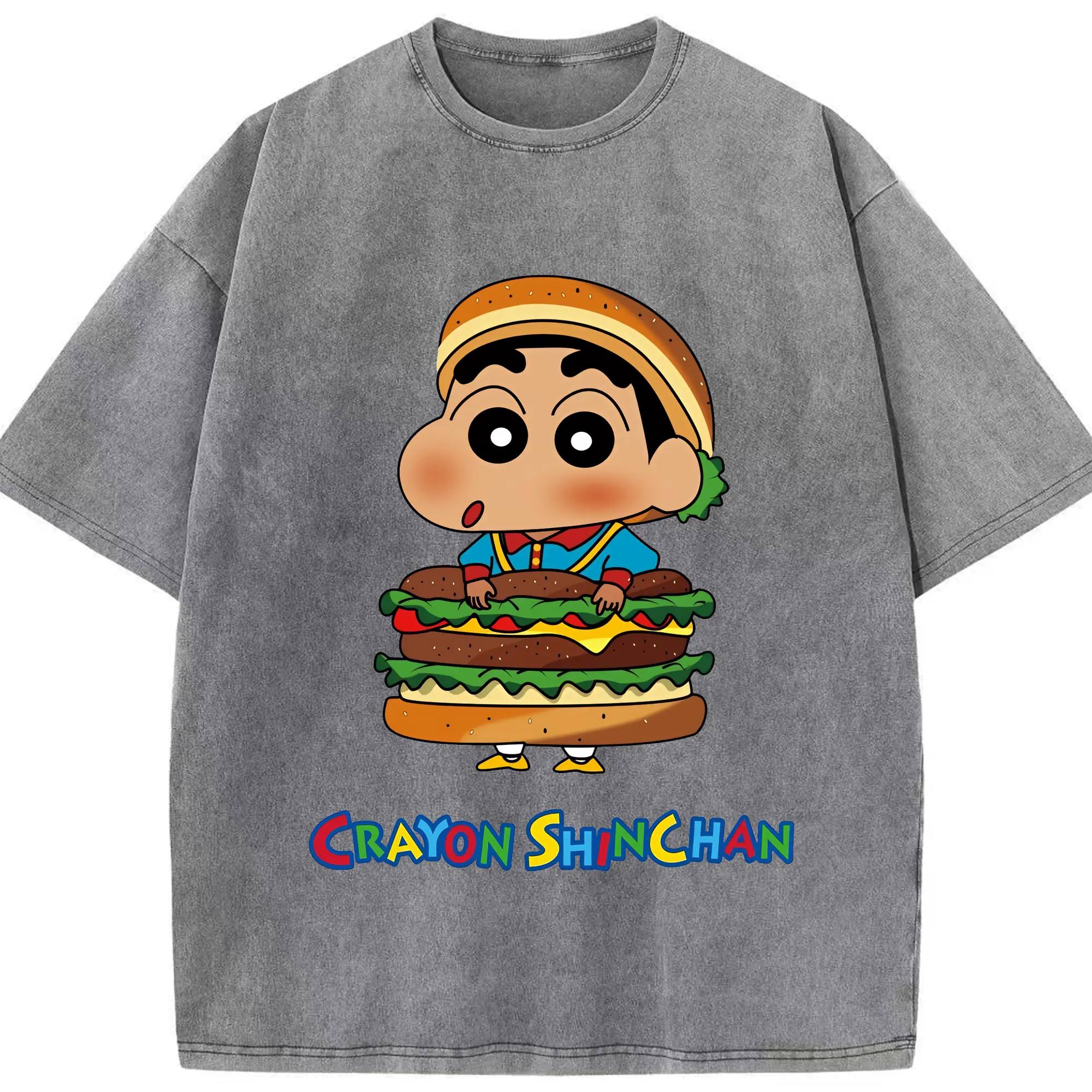 クレヨンしんちゃん グッズ 野原 しんのすけ - 綿100% ヴィンテージ風 半袖Tシャツ ・ 背面プリント ・ 柔らか肌触り ・ 通気性 快適 ・ スポーツ カジュアル 外出用