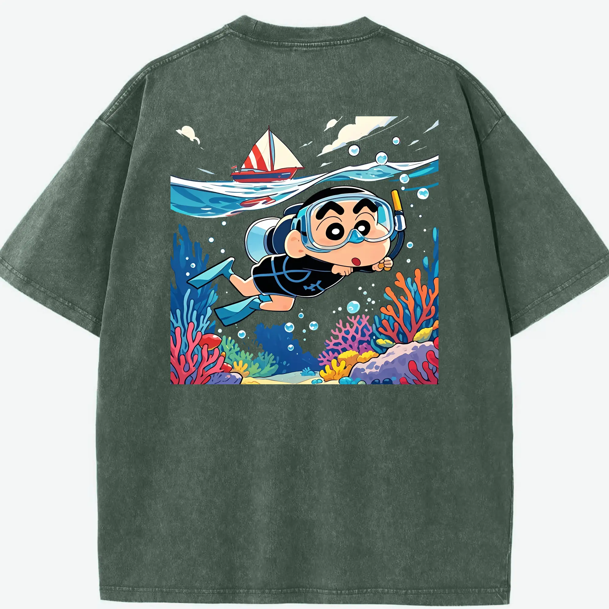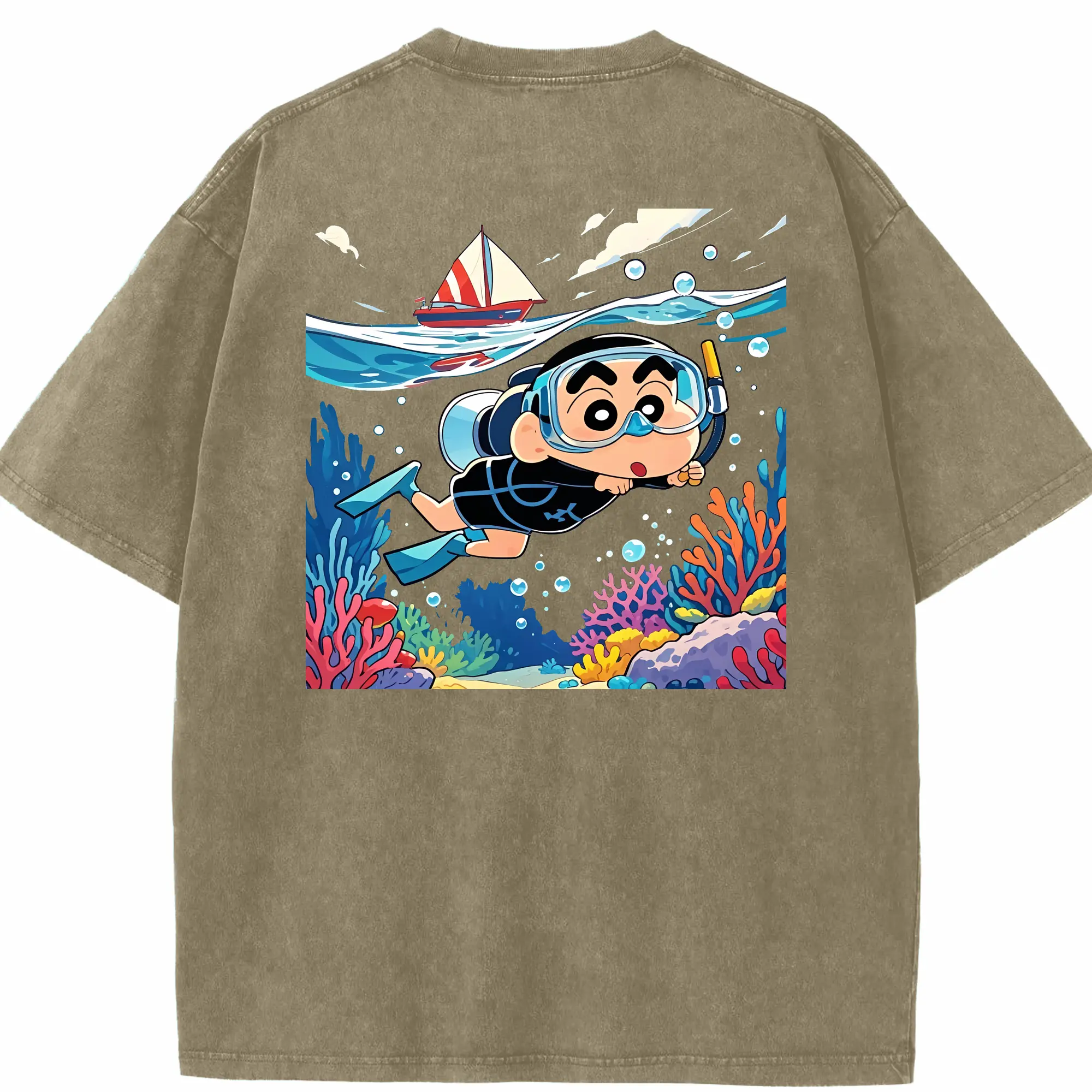 クレヨンしんちゃん グッズ 野原 しんのすけ - 綿100% ヴィンテージ風 半袖Tシャツ ・ フロントプリント ・ 柔らか肌触り ・ 通気性 快適 ・ スポーツ カジュアル 外出用