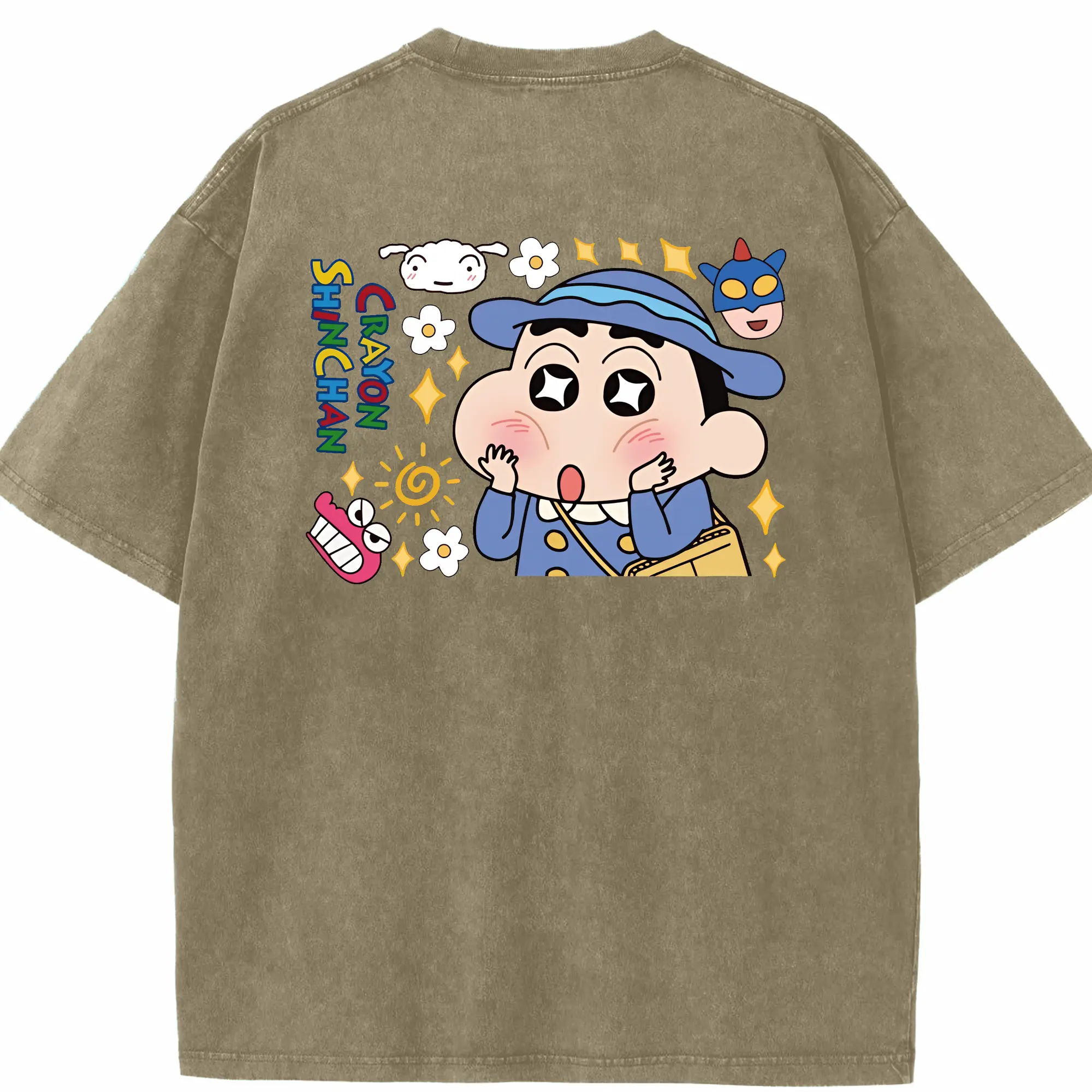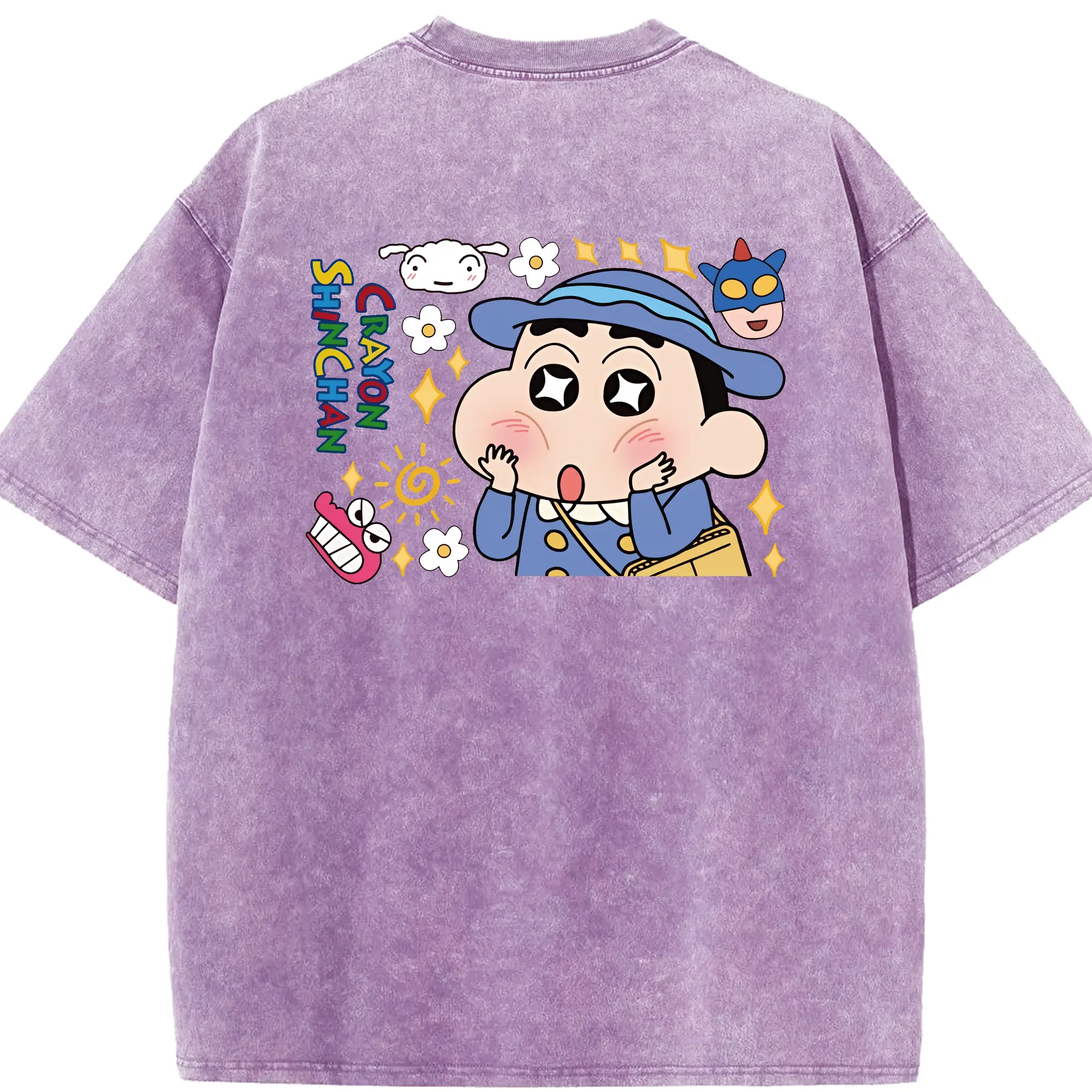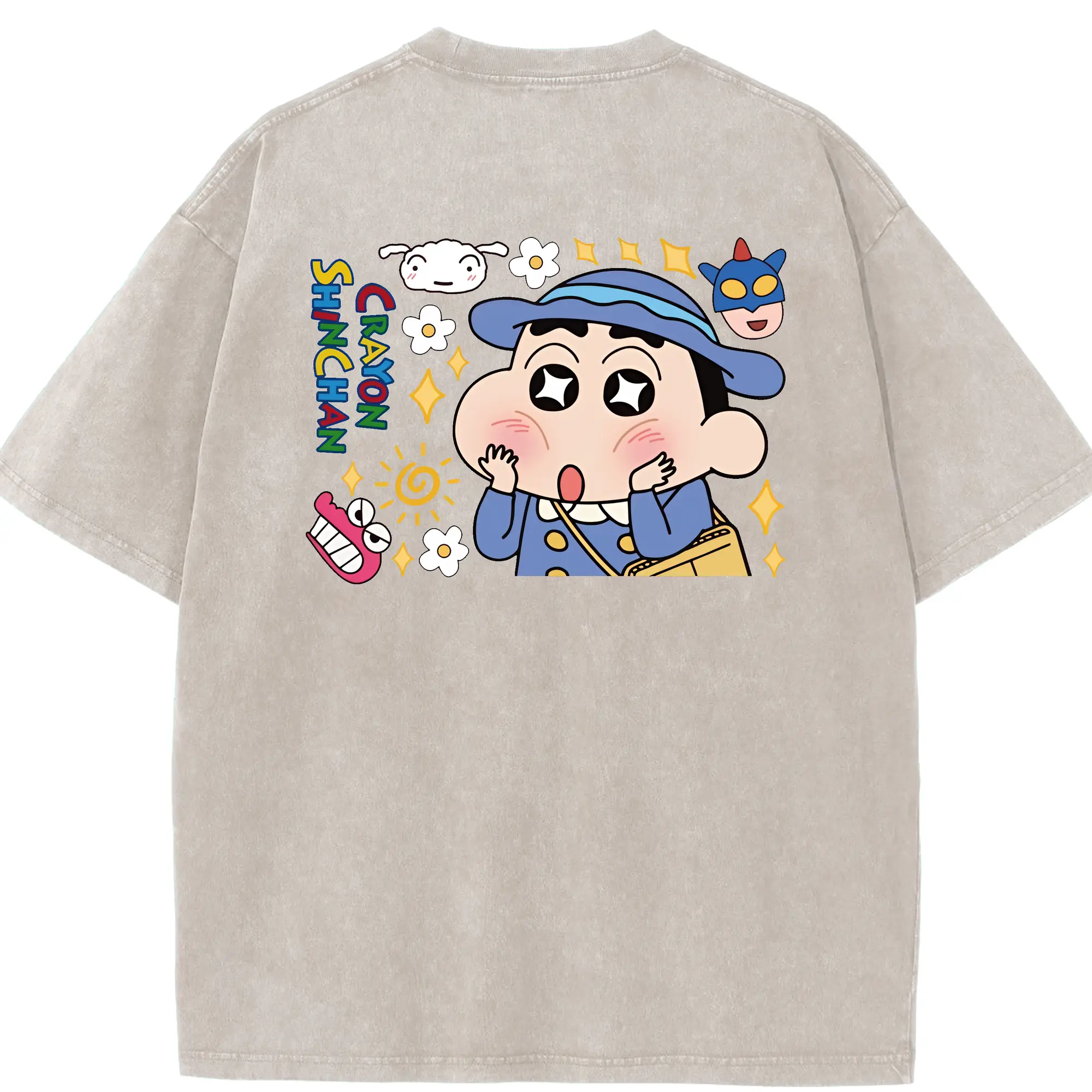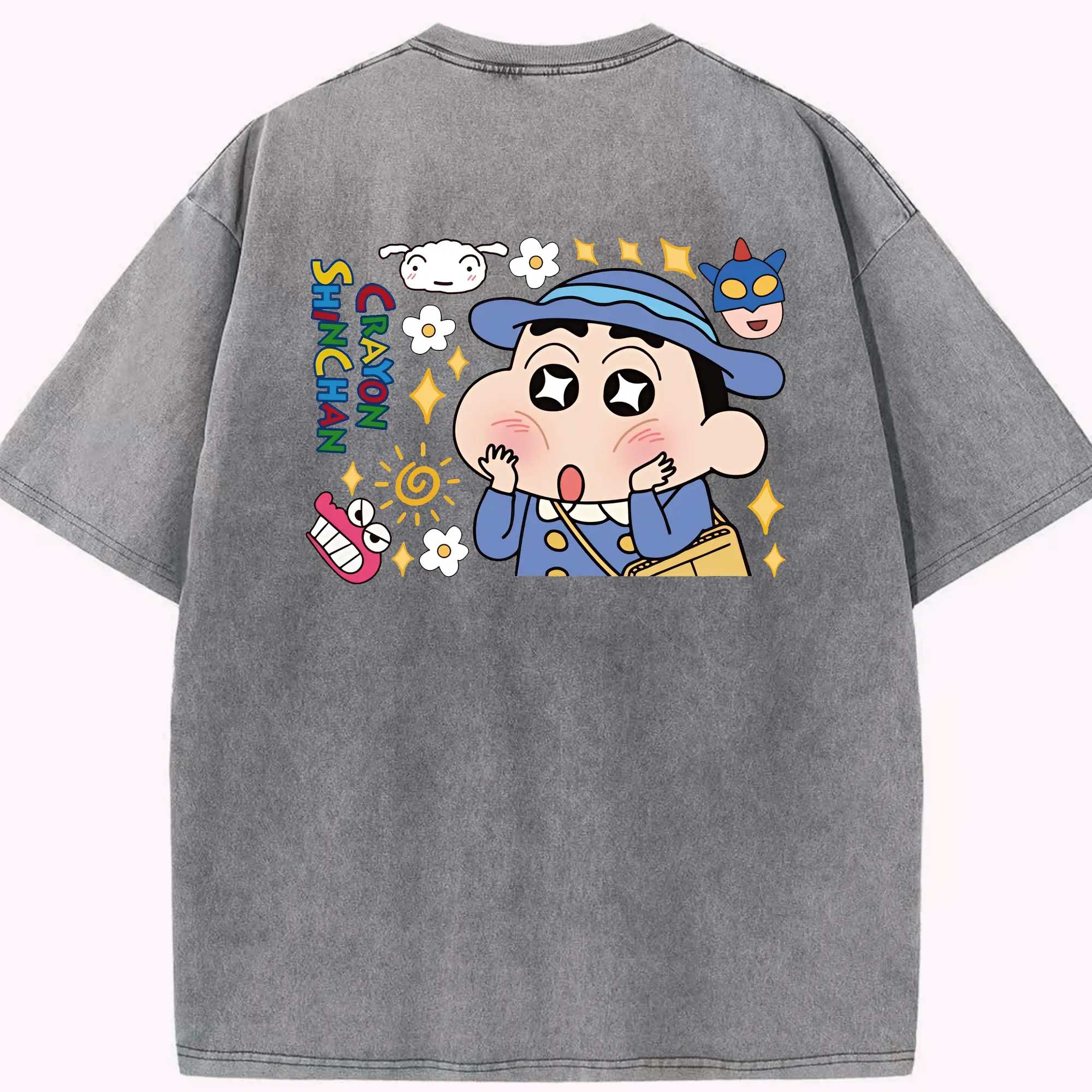 クレヨンしんちゃん グッズ 野原 しんのすけ - 綿100% ヴィンテージ風 半袖Tシャツ ・ フロントプリント ・ 柔らか肌触り ・ 通気性 快適 ・ スポーツ カジュアル 外出用