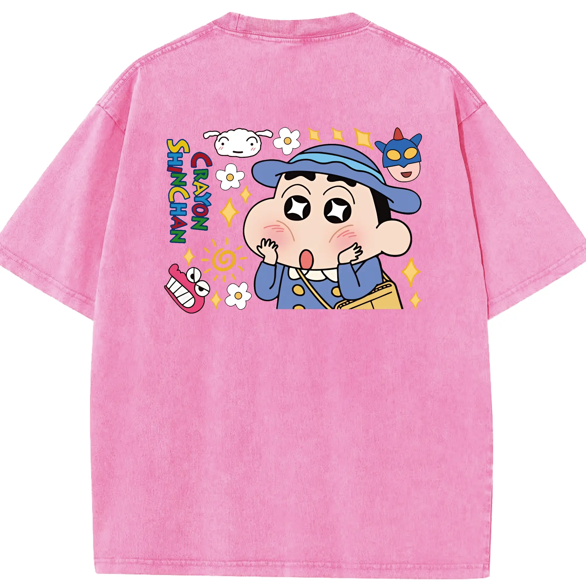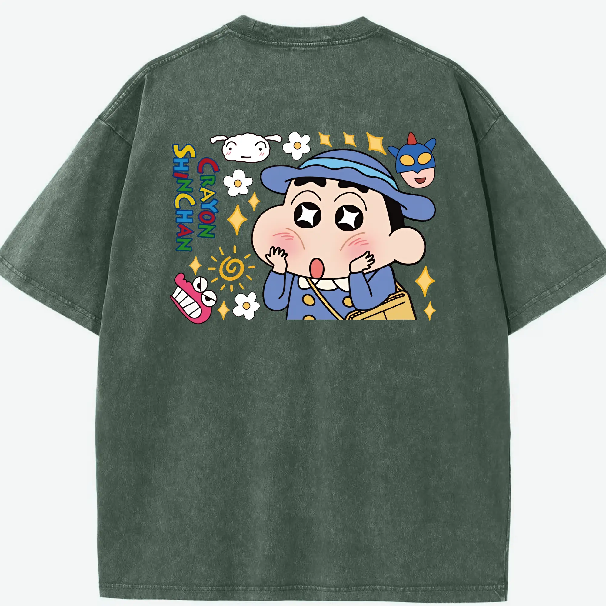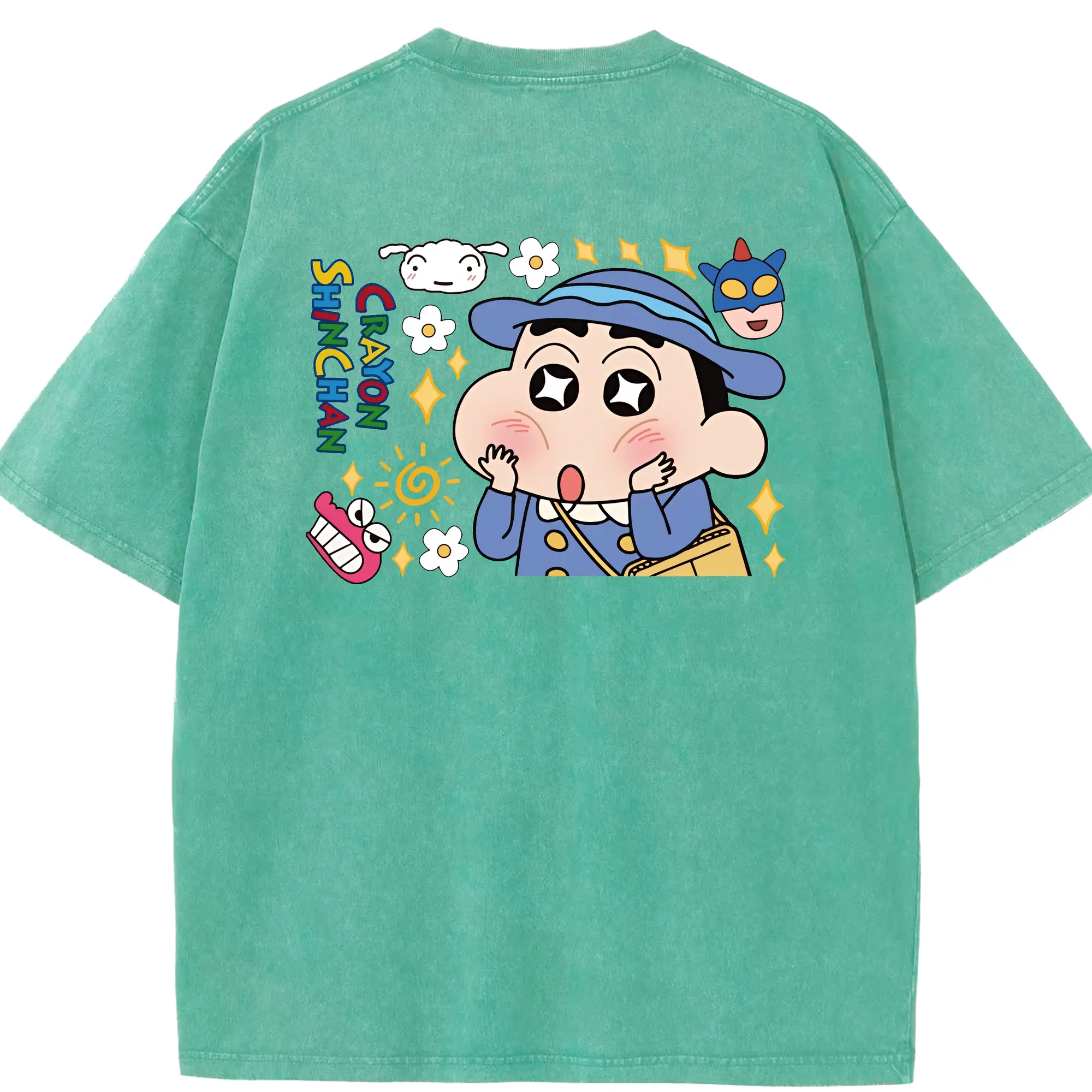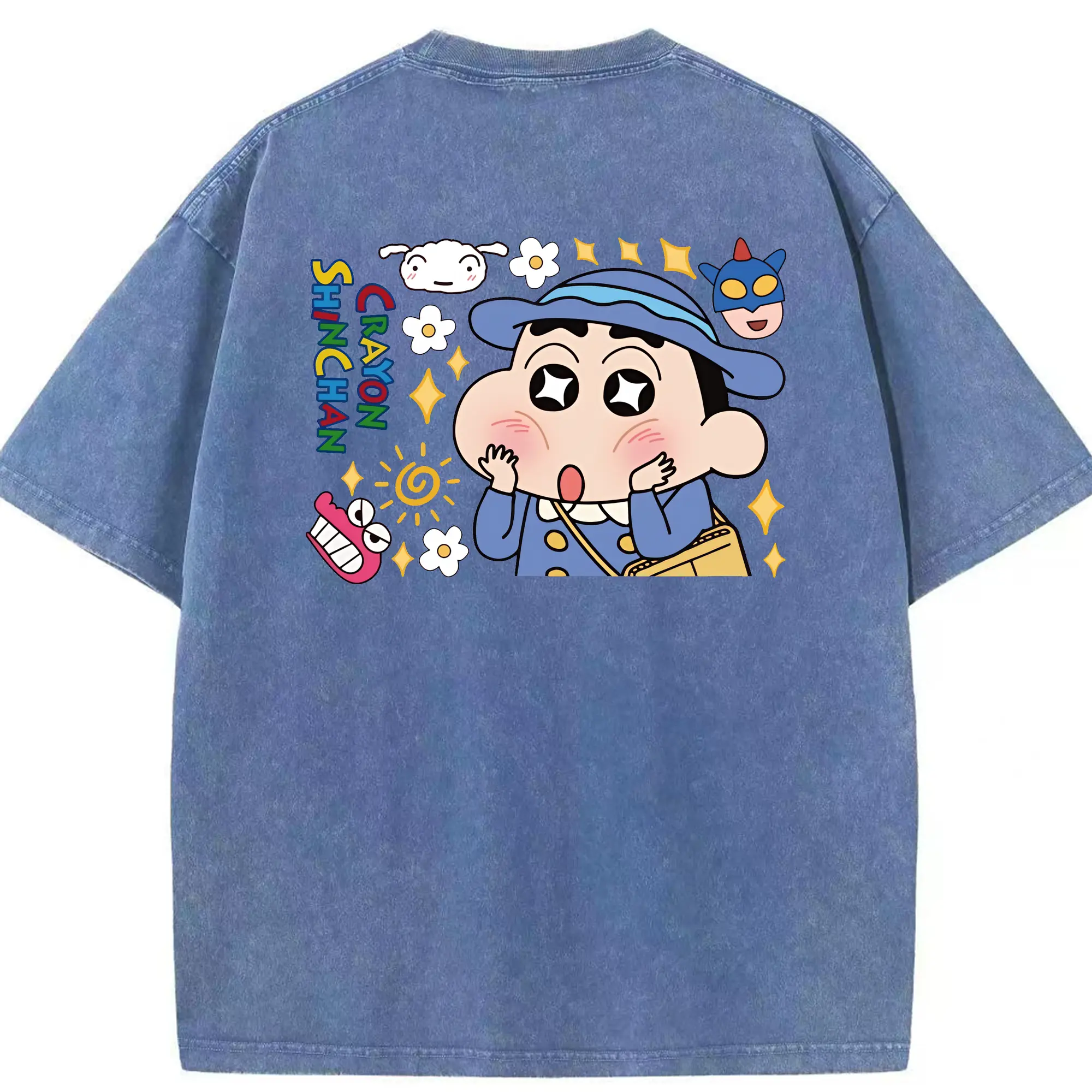 クレヨンしんちゃん グッズ 野原 しんのすけ - 綿100% ヴィンテージ風 半袖Tシャツ ・ フロントプリント ・ 柔らか肌触り ・ 通気性 快適 ・ スポーツ カジュアル 外出用