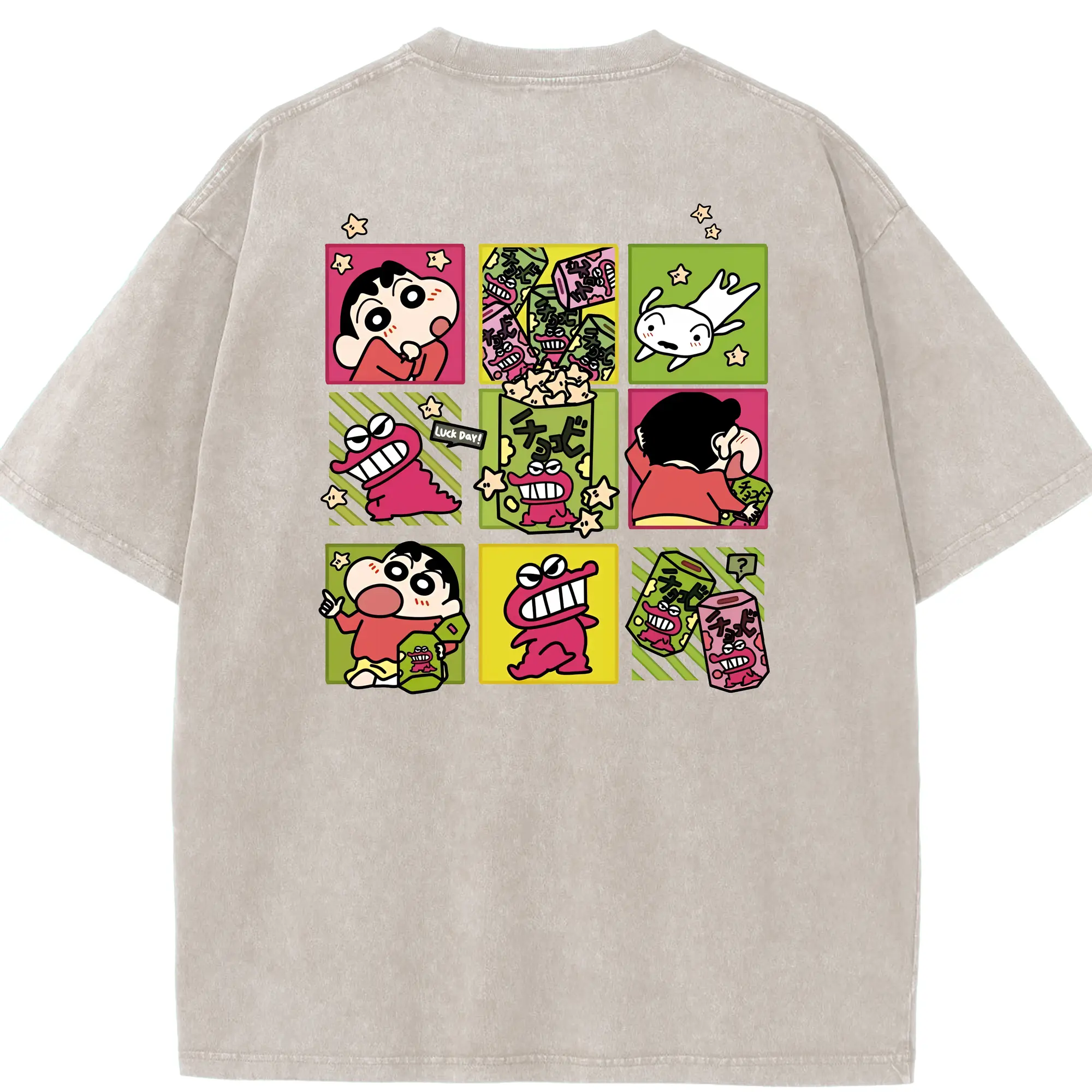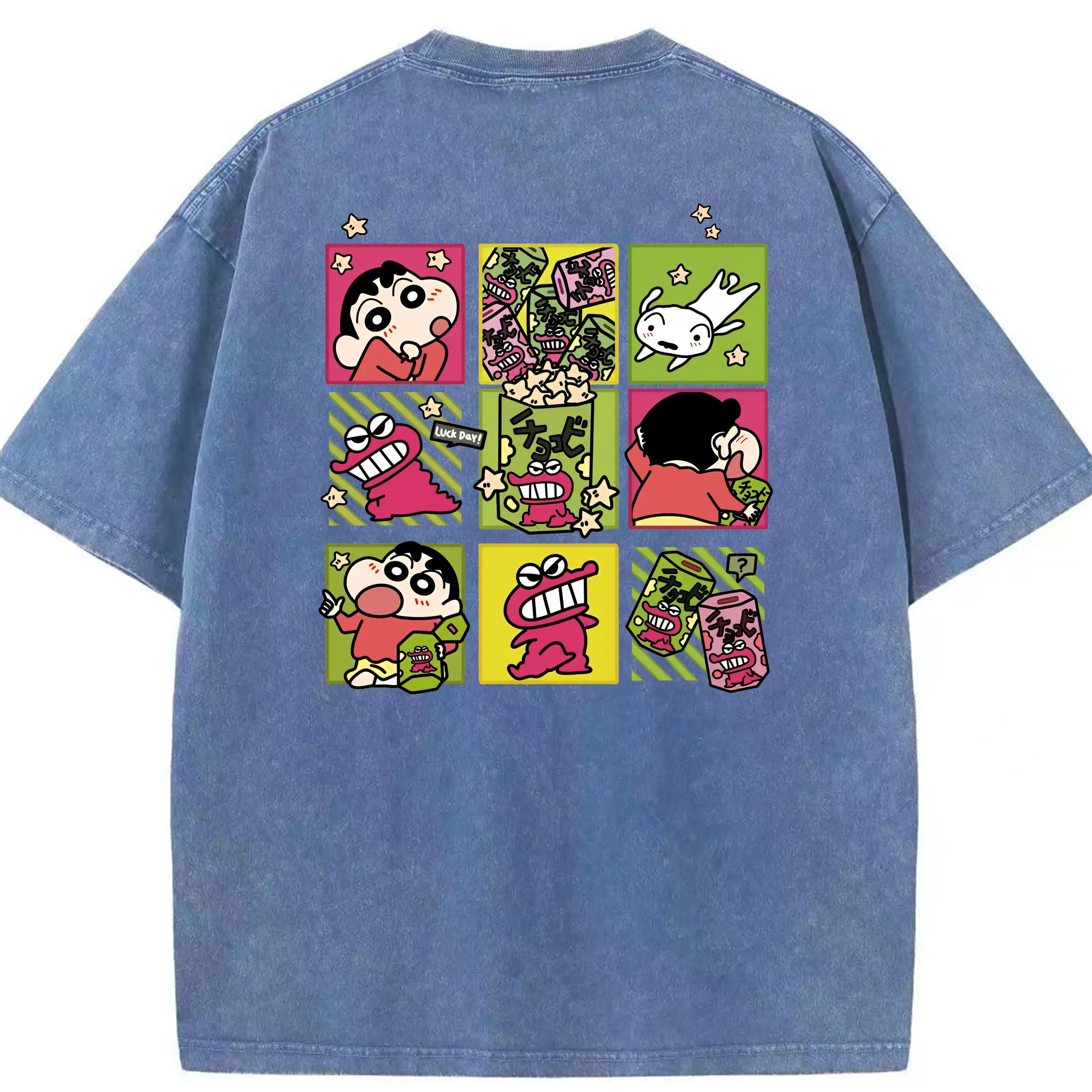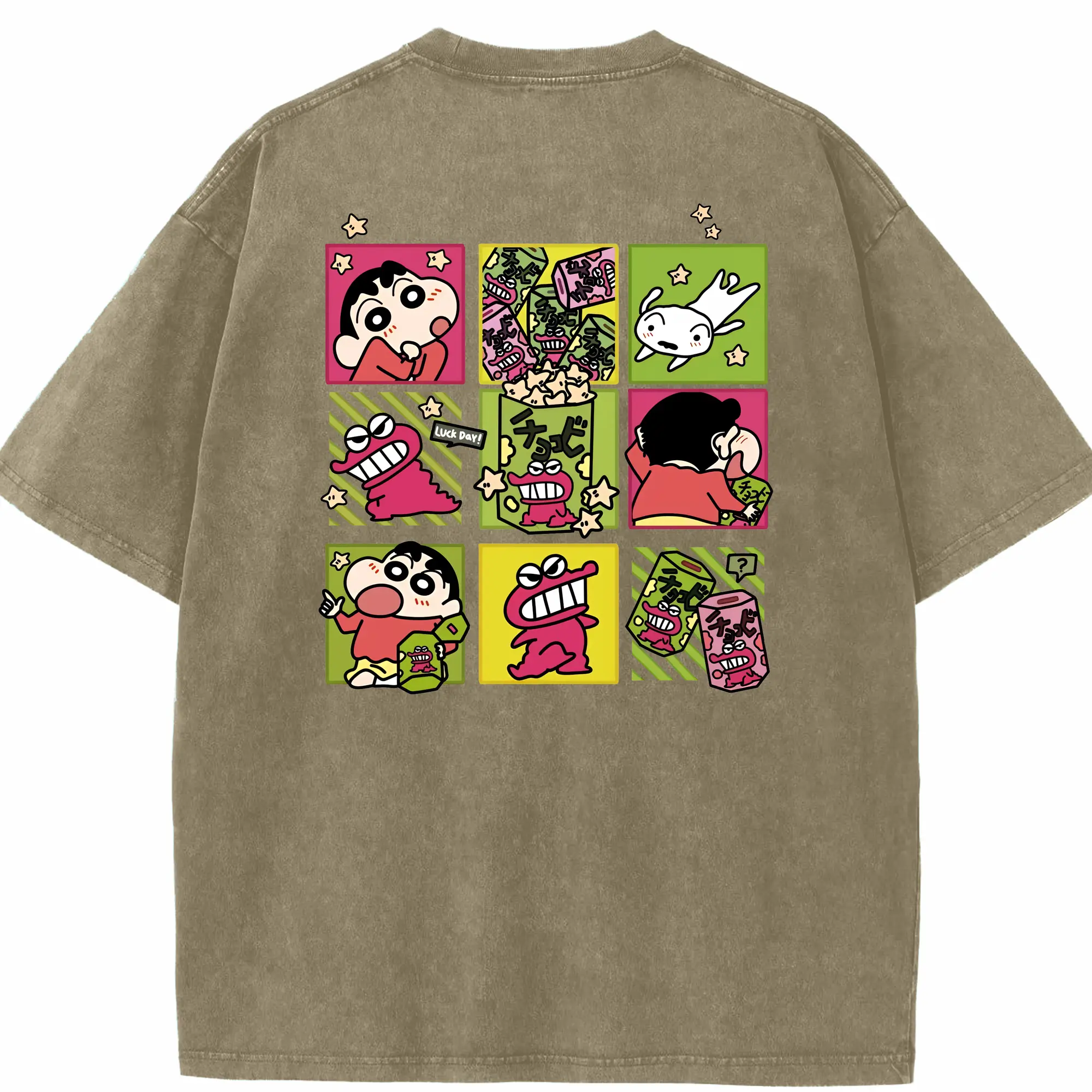 クレヨンしんちゃん グッズ 野原 しんのすけ - 綿100% ヴィンテージ風 半袖Tシャツ ・ フロントプリント ・ 柔らか肌触り ・ 通気性 快適 ・ スポーツ カジュアル 外出用