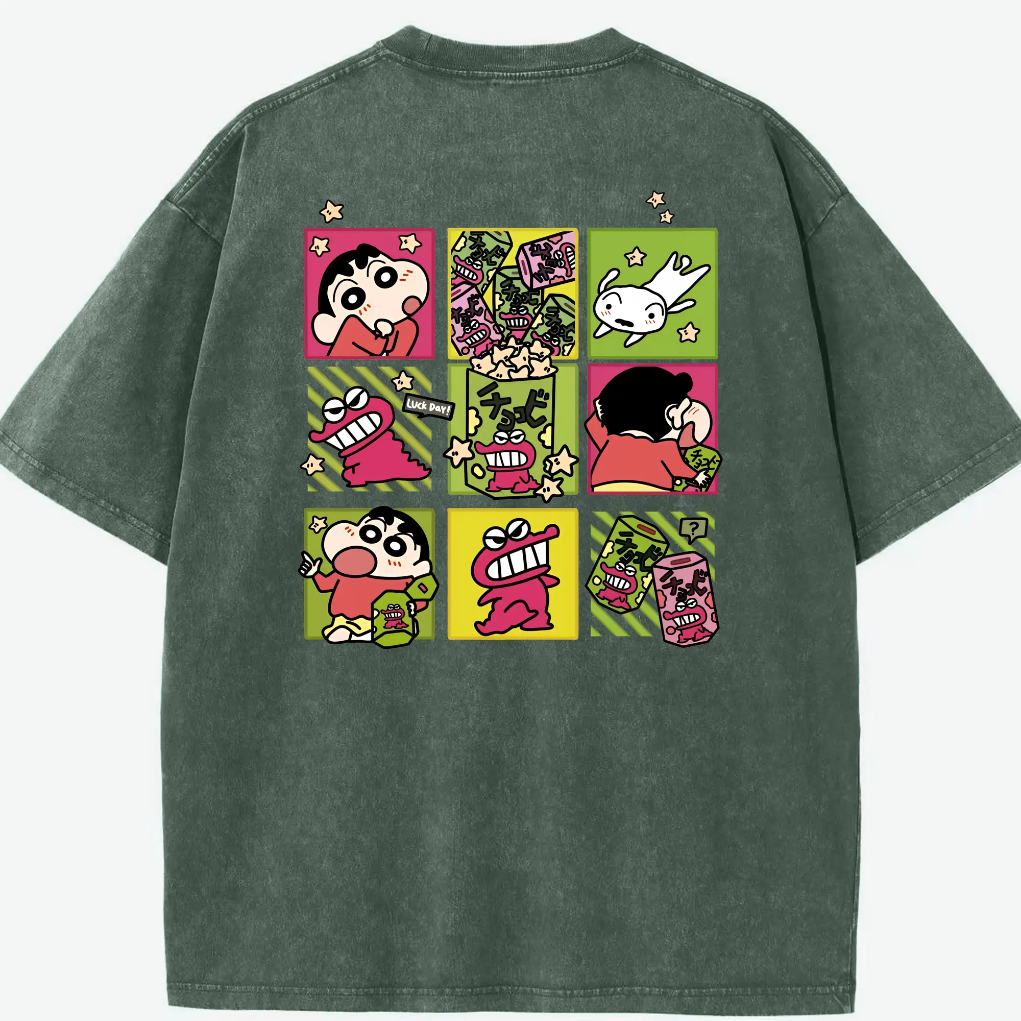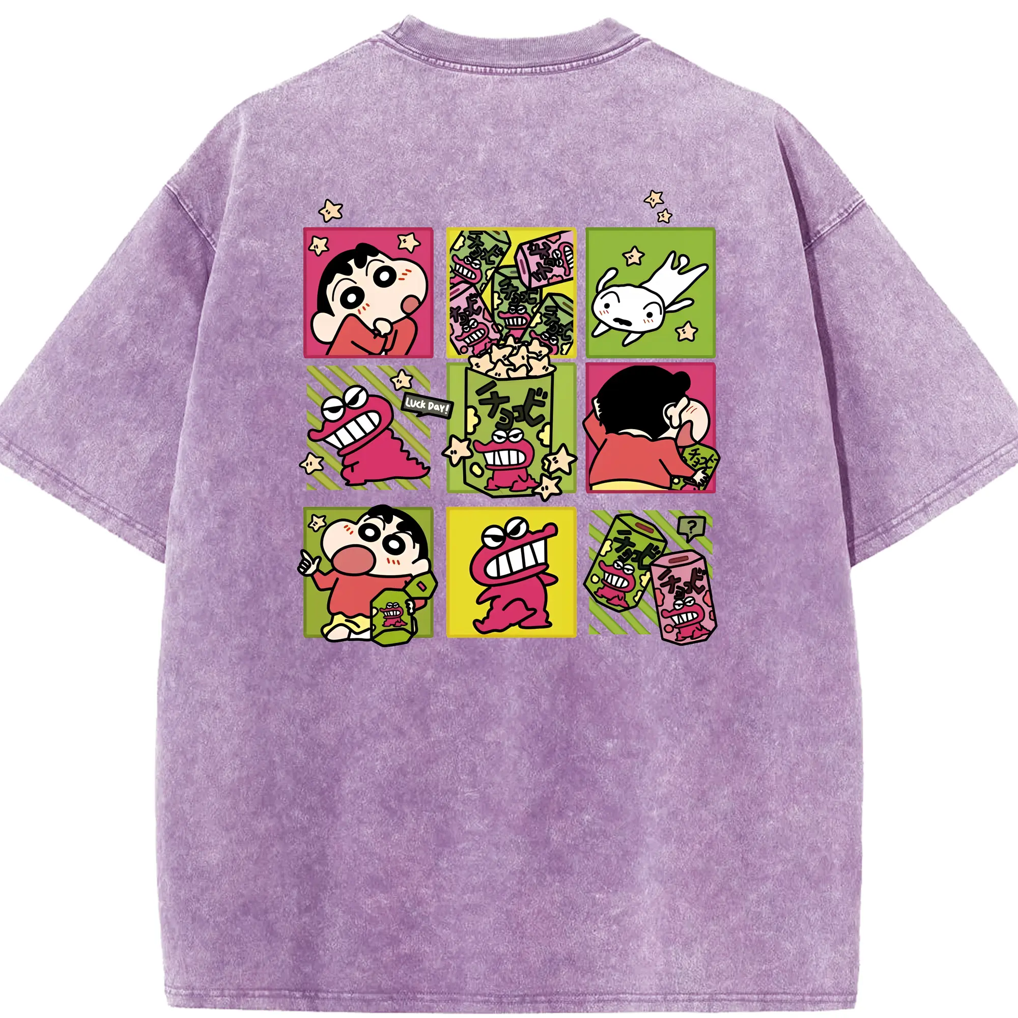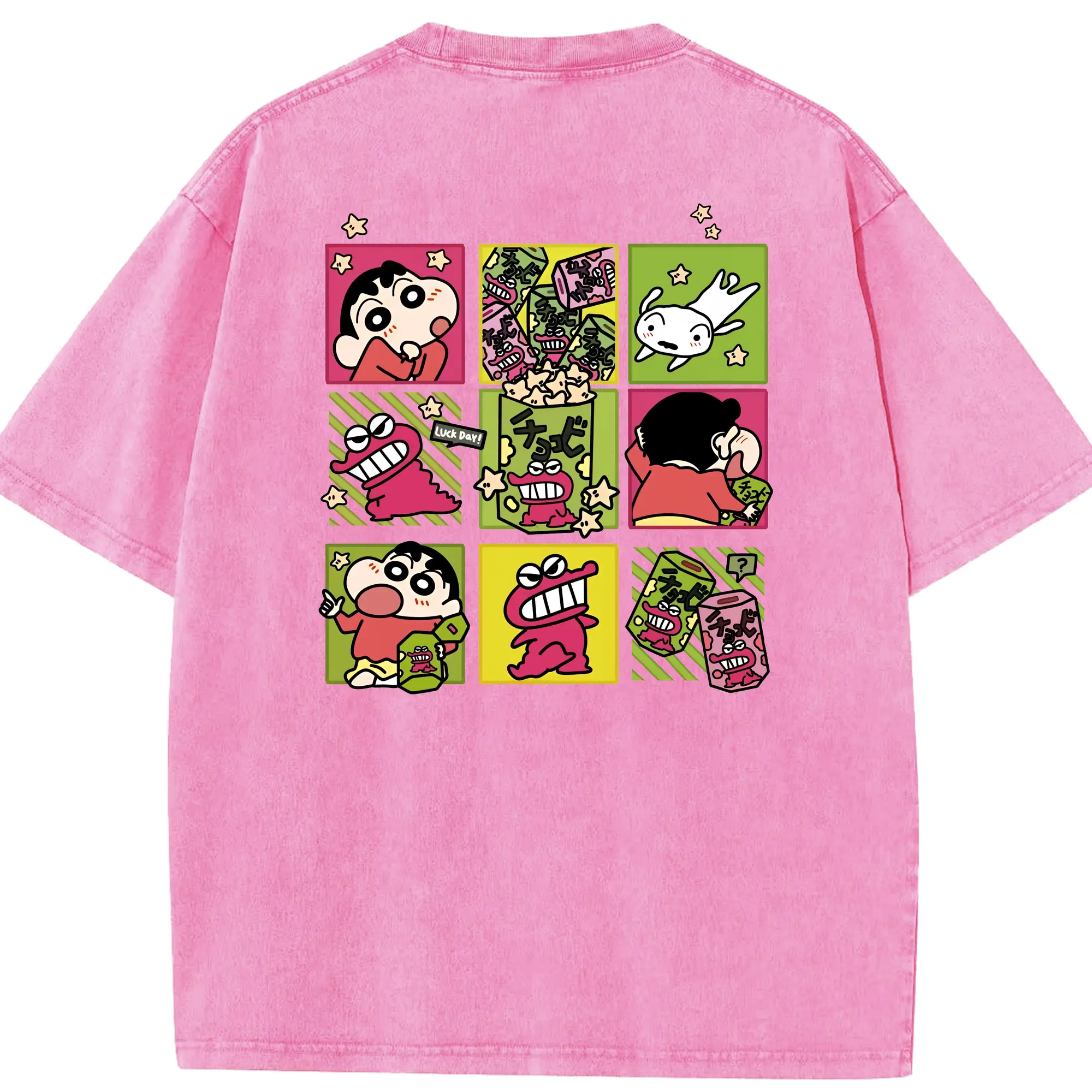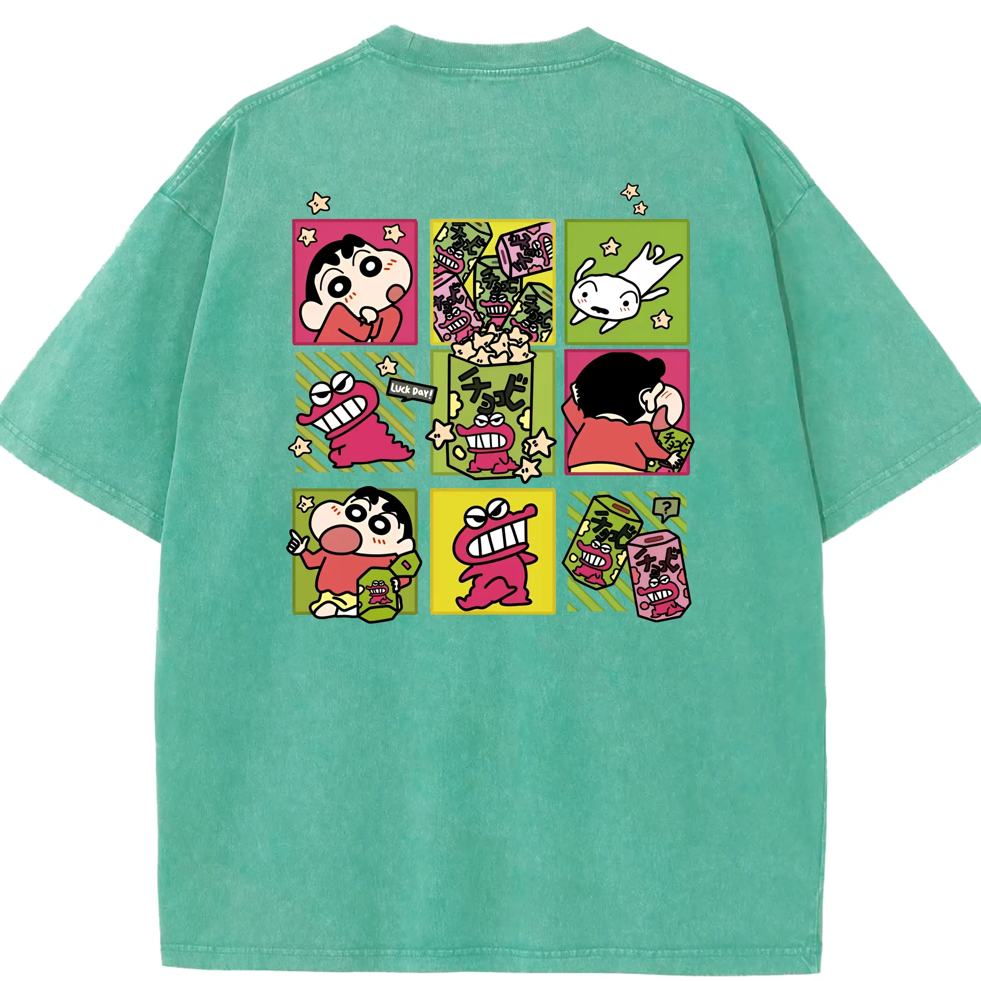 クレヨンしんちゃん グッズ 野原 しんのすけ - 綿100% ヴィンテージ風 半袖Tシャツ ・ フロントプリント ・ 柔らか肌触り ・ 通気性 快適 ・ スポーツ カジュアル 外出用