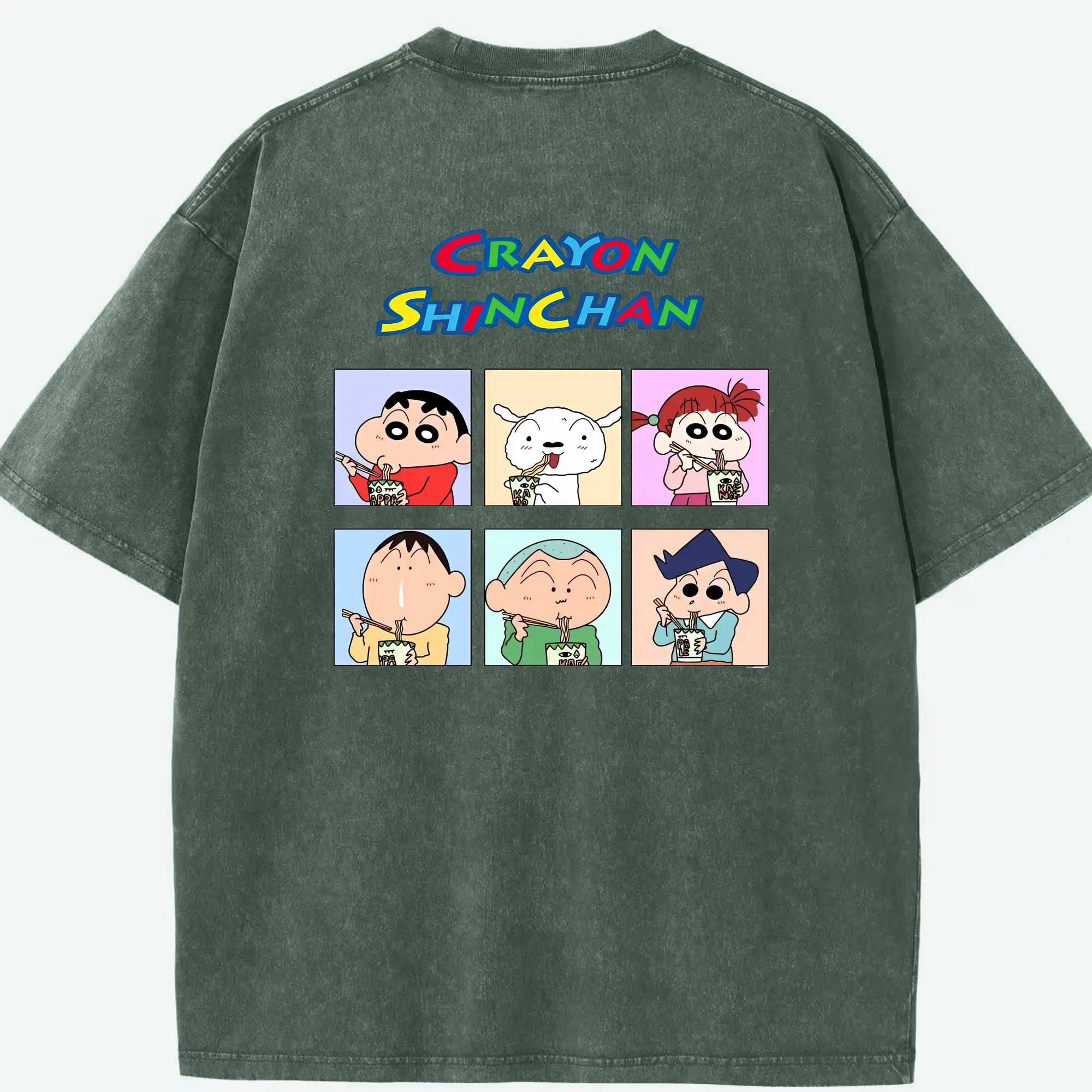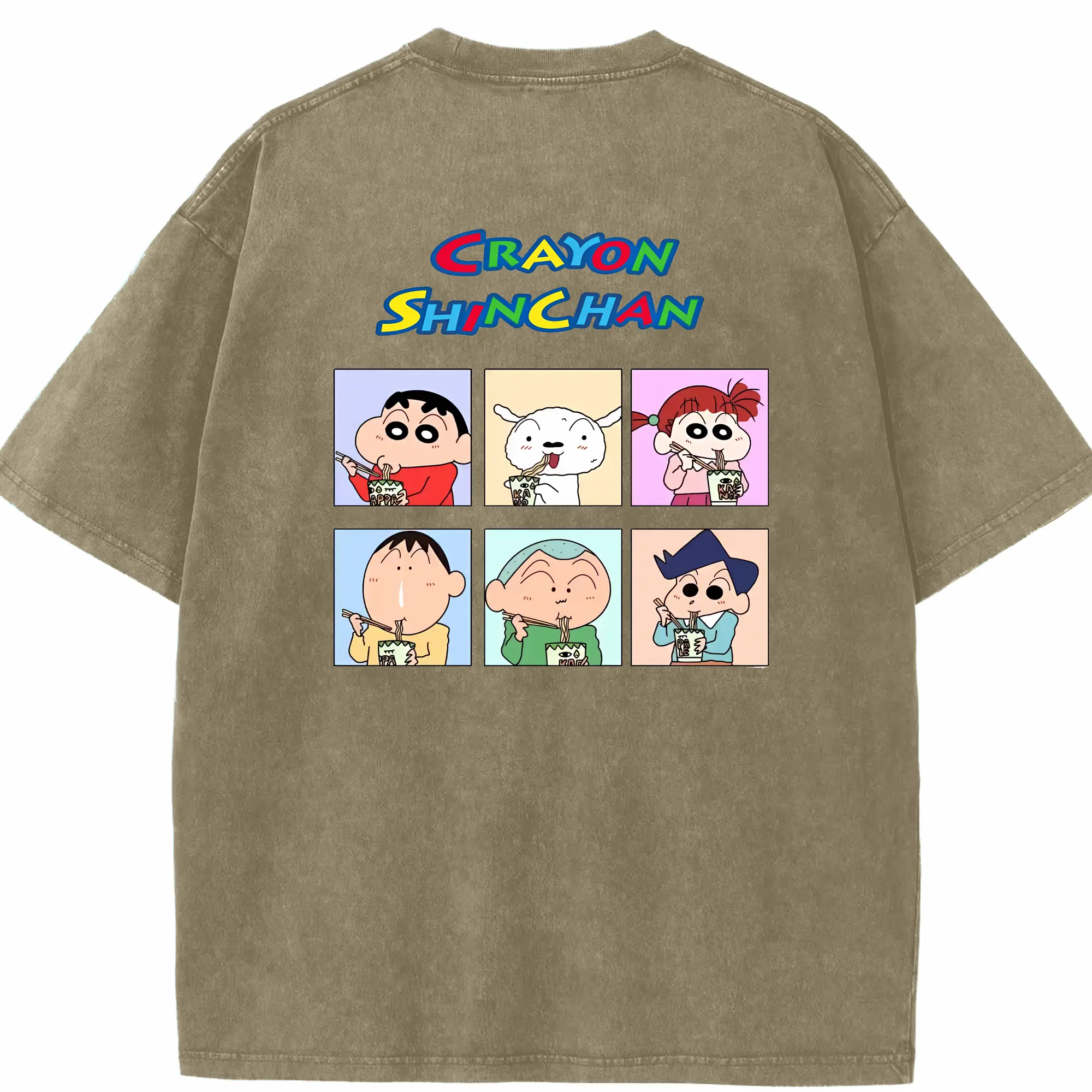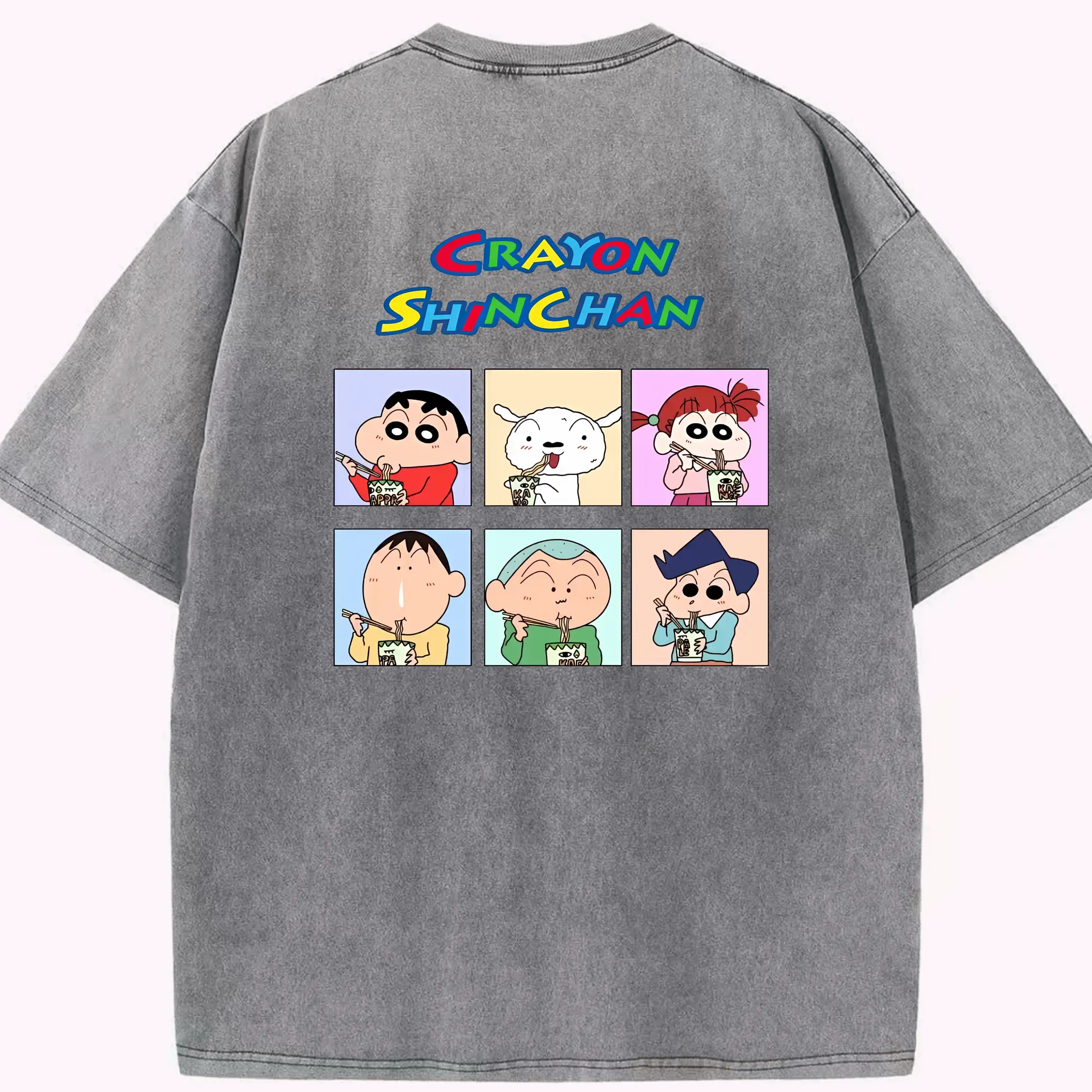 クレヨンしんちゃん グッズ 野原 しんのすけ - 綿100% ヴィンテージ風 半袖Tシャツ ・ フロントプリント ・ 柔らか肌触り ・ 通気性 快適 ・ スポーツ カジュアル 外出用