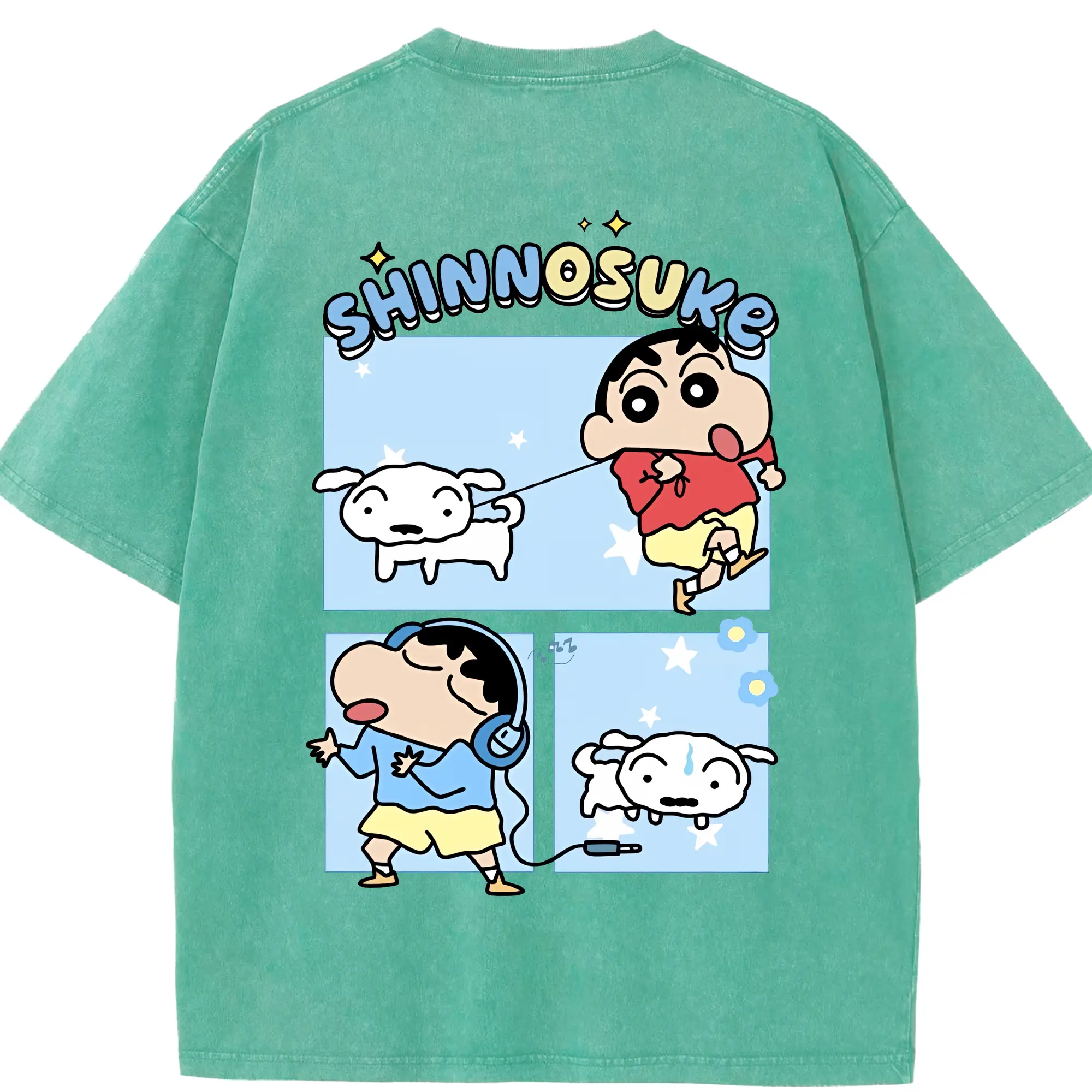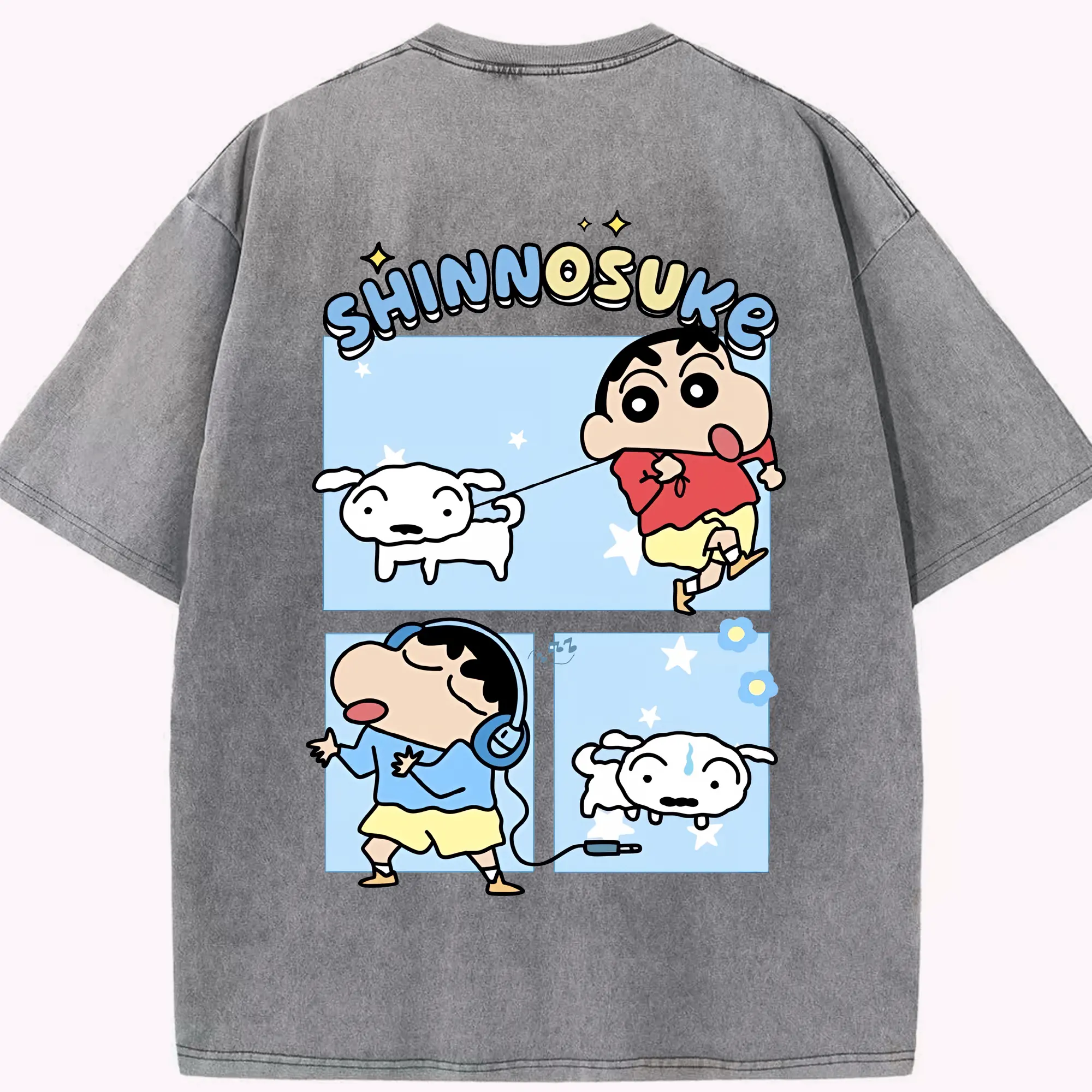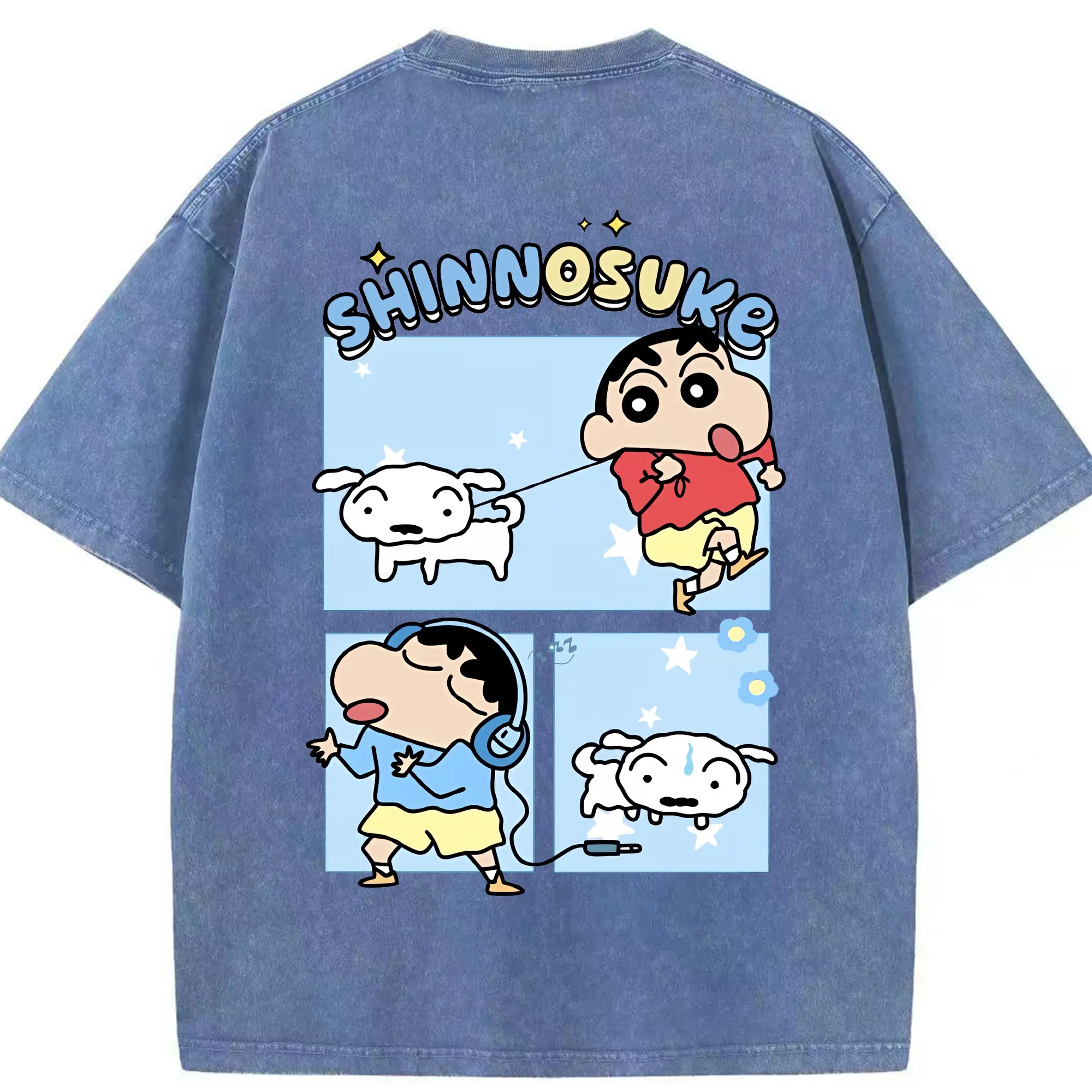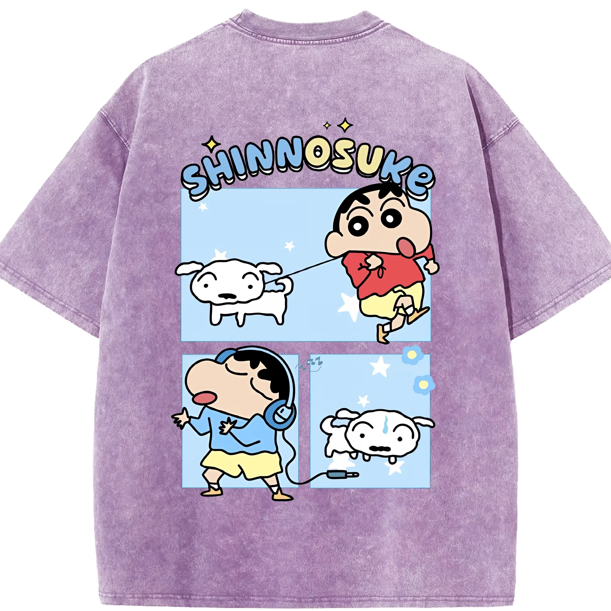 クレヨンしんちゃん グッズ 野原 しんのすけ - 綿100% ヴィンテージ風 半袖Tシャツ ・ フロントプリント ・ 柔らか肌触り ・ 通気性 快適 ・ スポーツ カジュアル 外出用