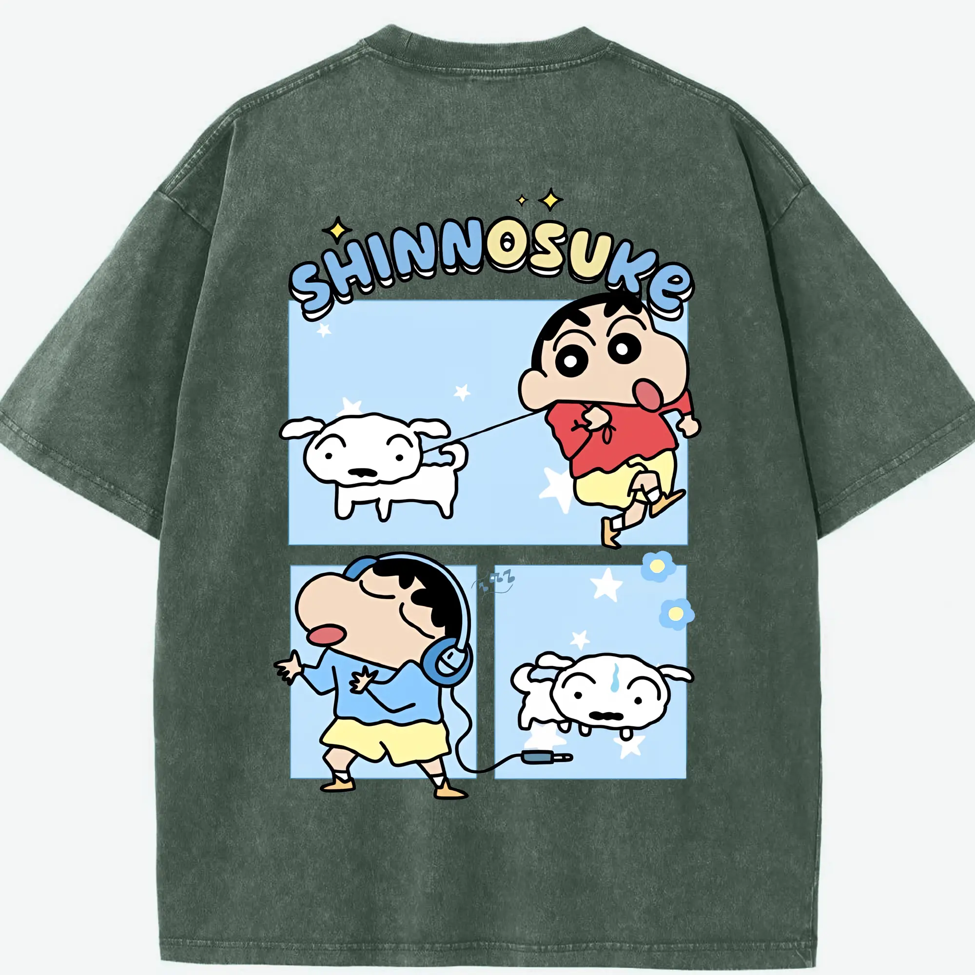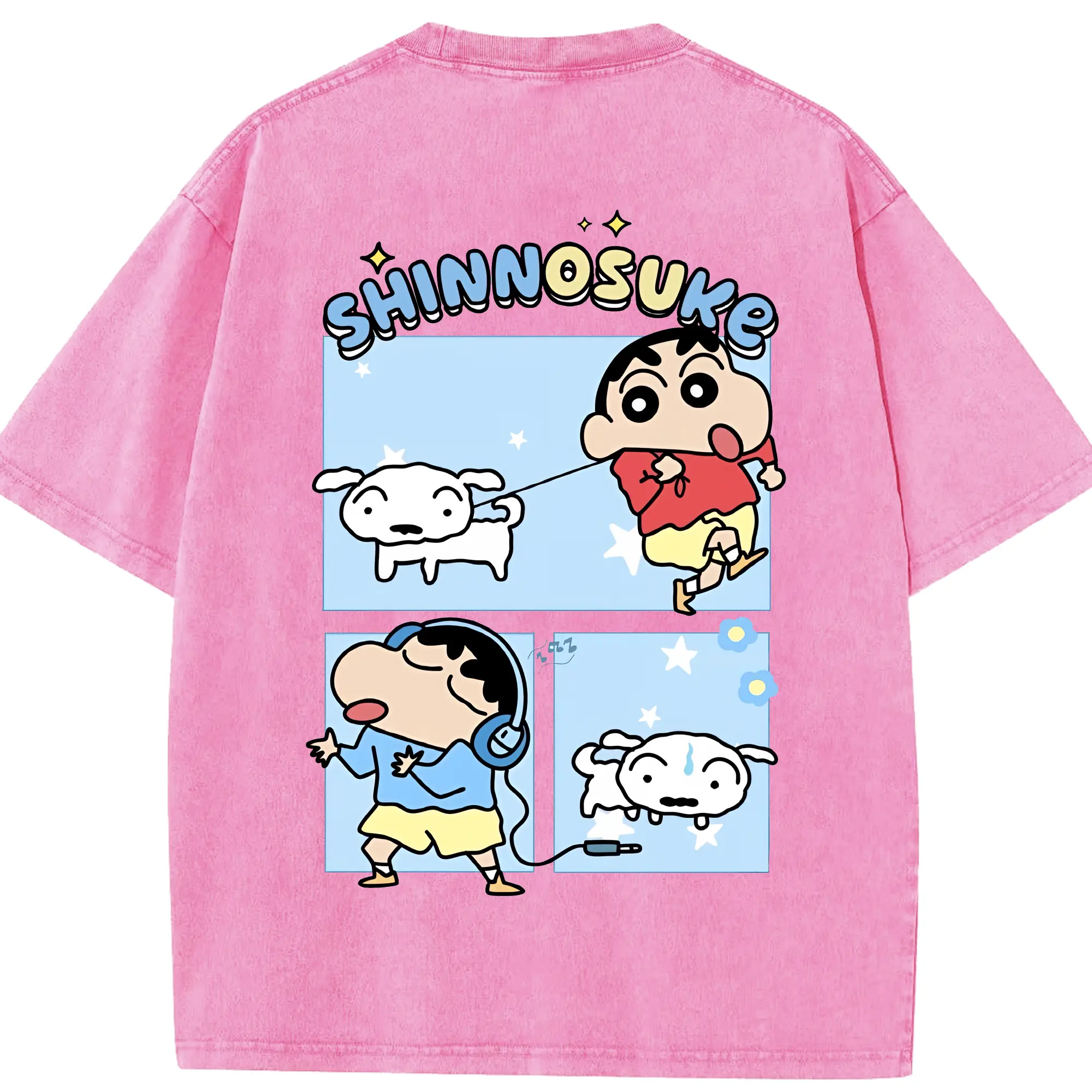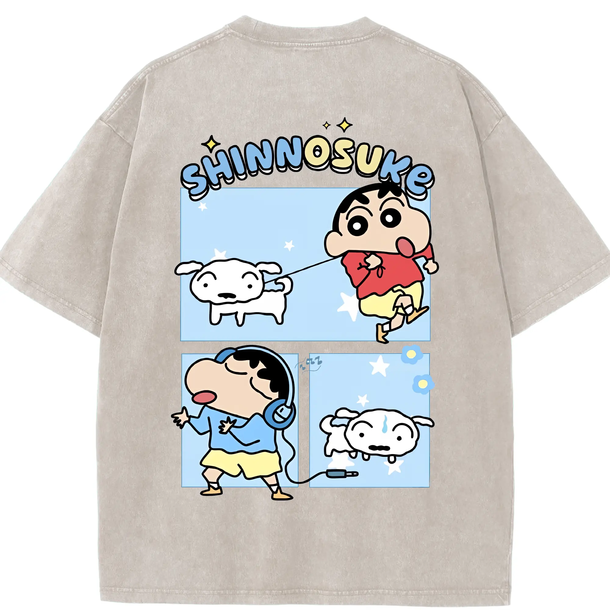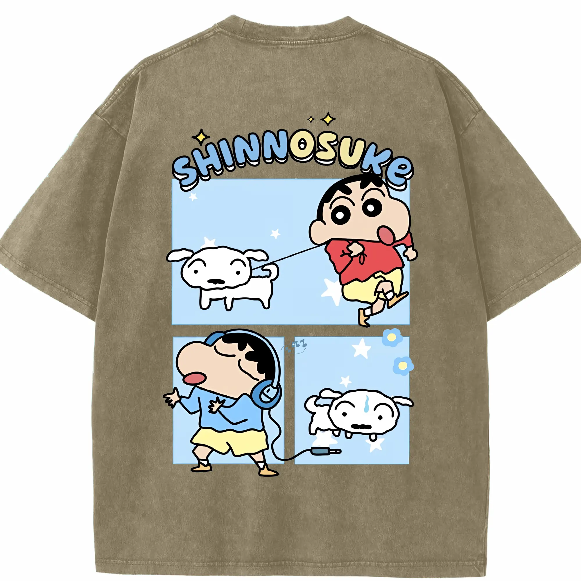 クレヨンしんちゃん グッズ 野原 しんのすけ - 綿100% ヴィンテージ風 半袖Tシャツ ・ フロントプリント ・ 柔らか肌触り ・ 通気性 快適 ・ スポーツ カジュアル 外出用