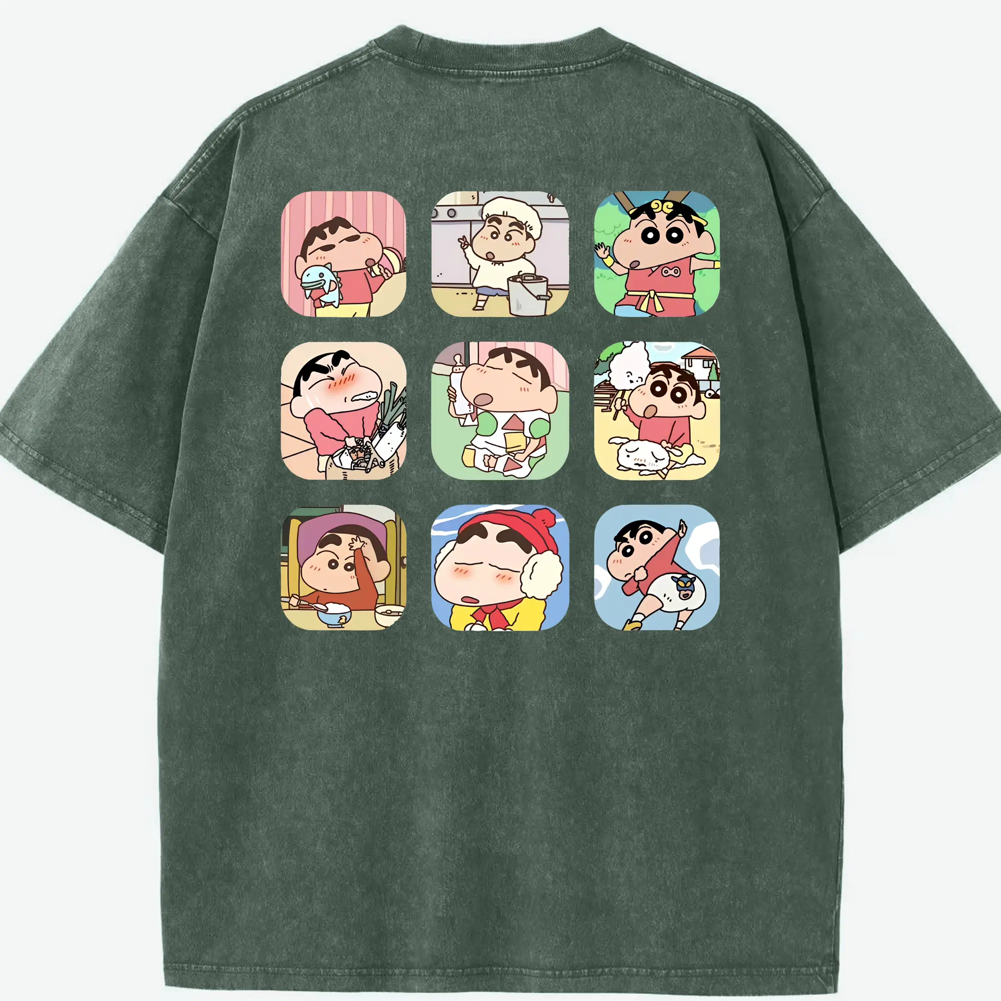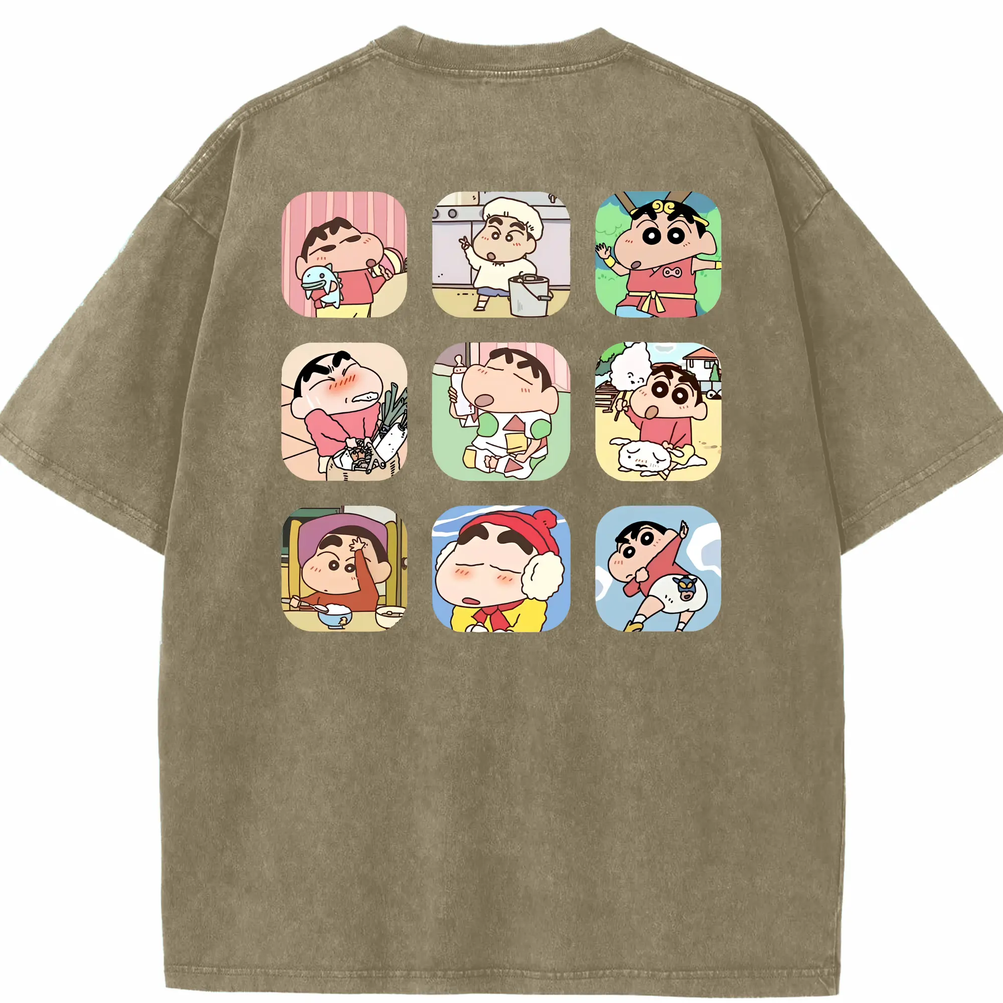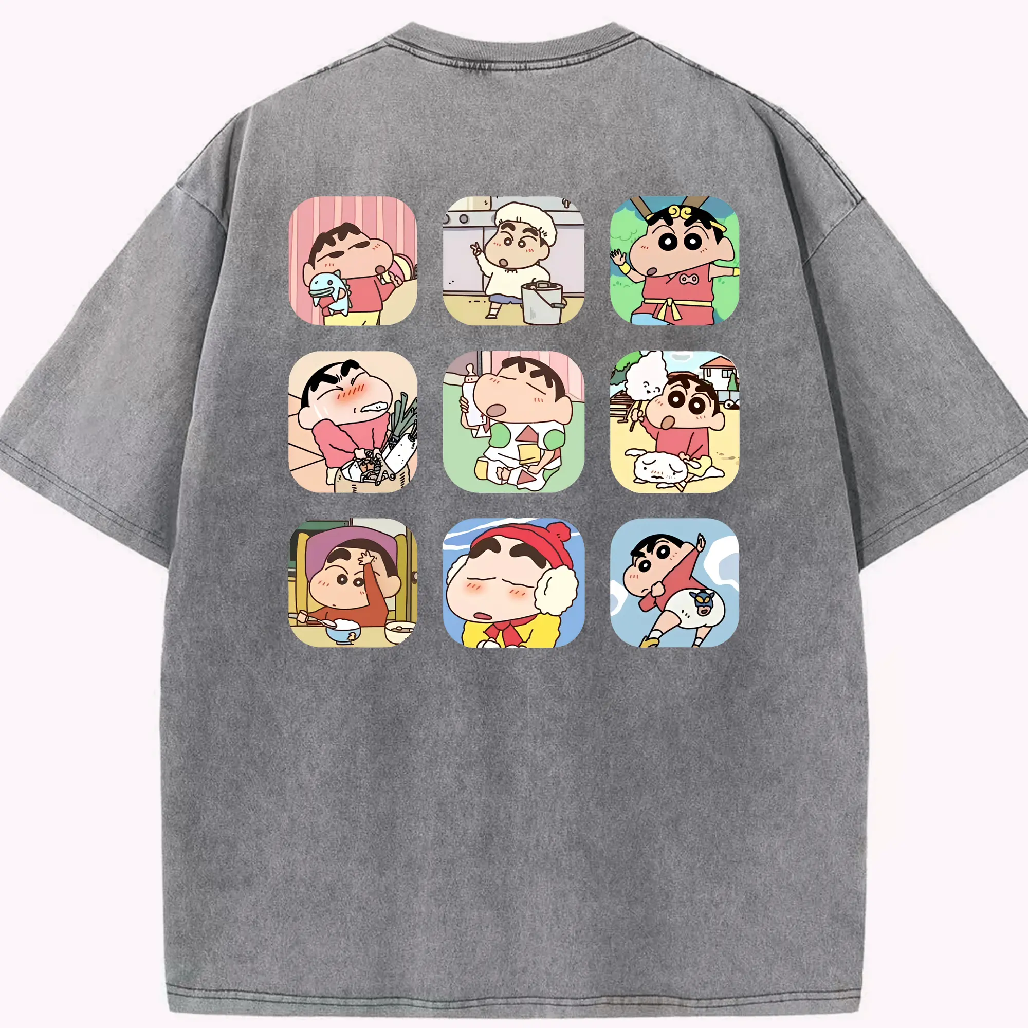 クレヨンしんちゃん グッズ 野原 しんのすけ - 綿100% ヴィンテージ風 半袖Tシャツ ・ フロントプリント ・ 柔らか肌触り ・ 通気性 快適 ・ スポーツ カジュアル 外出用