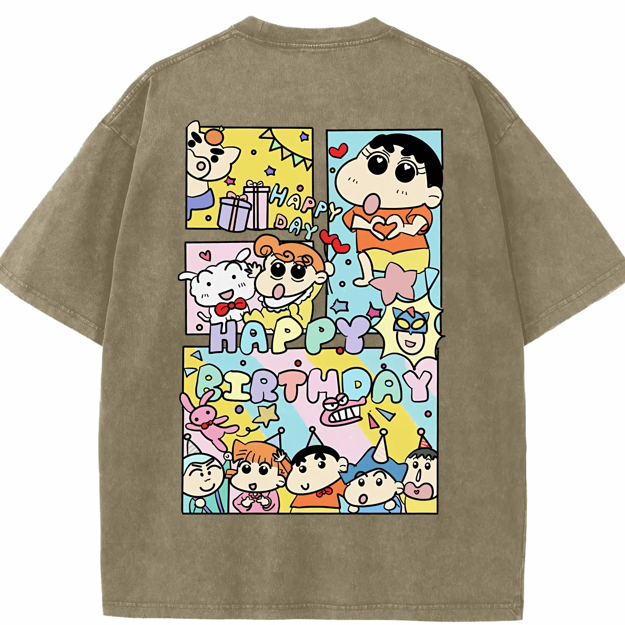 クレヨンしんちゃん グッズ 野原 しんのすけ - 綿100% ヴィンテージ風 半袖Tシャツ ・ フロントプリント ・ 柔らか肌触り ・ 通気性 快適 ・ スポーツ カジュアル 外出用