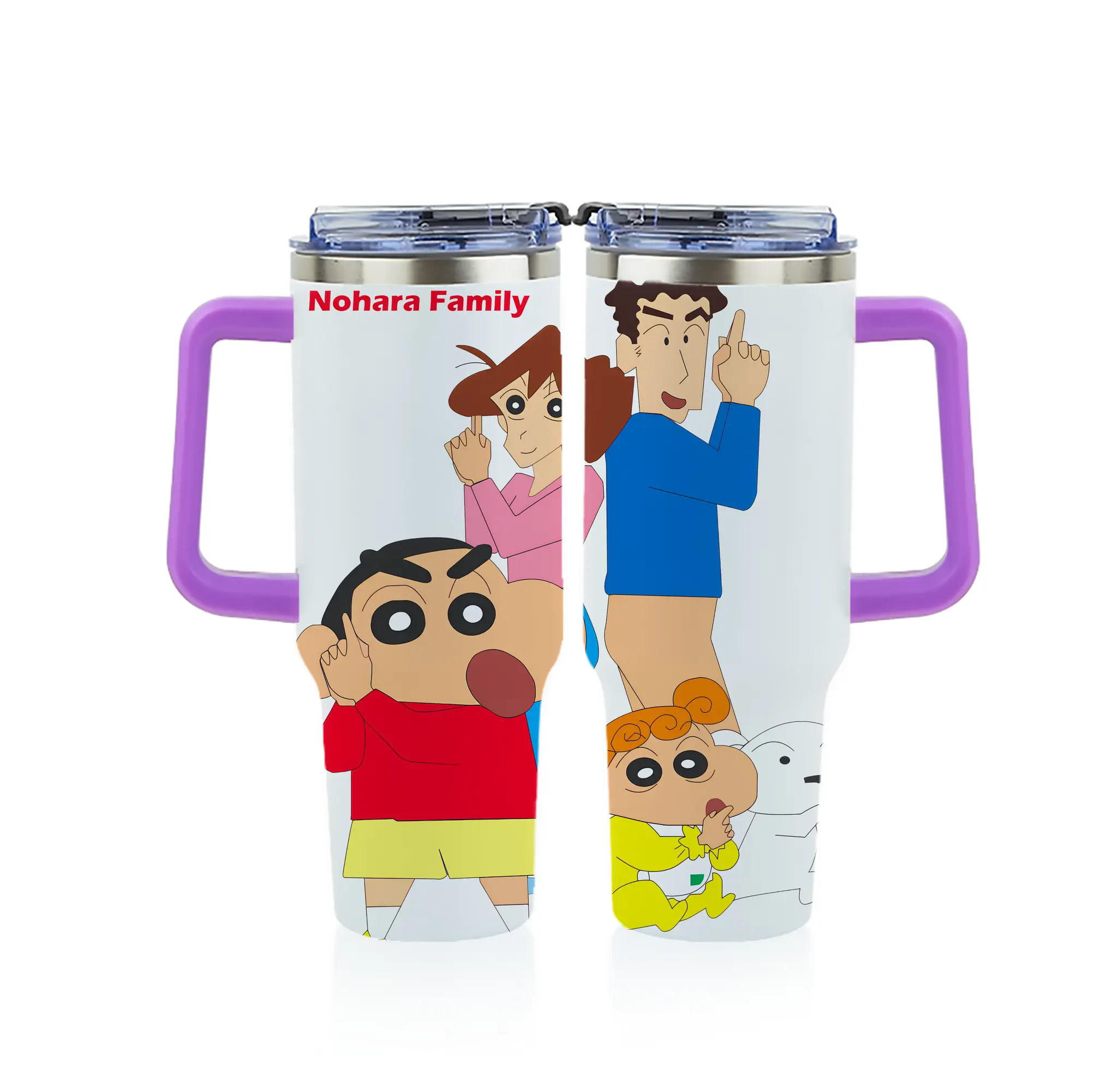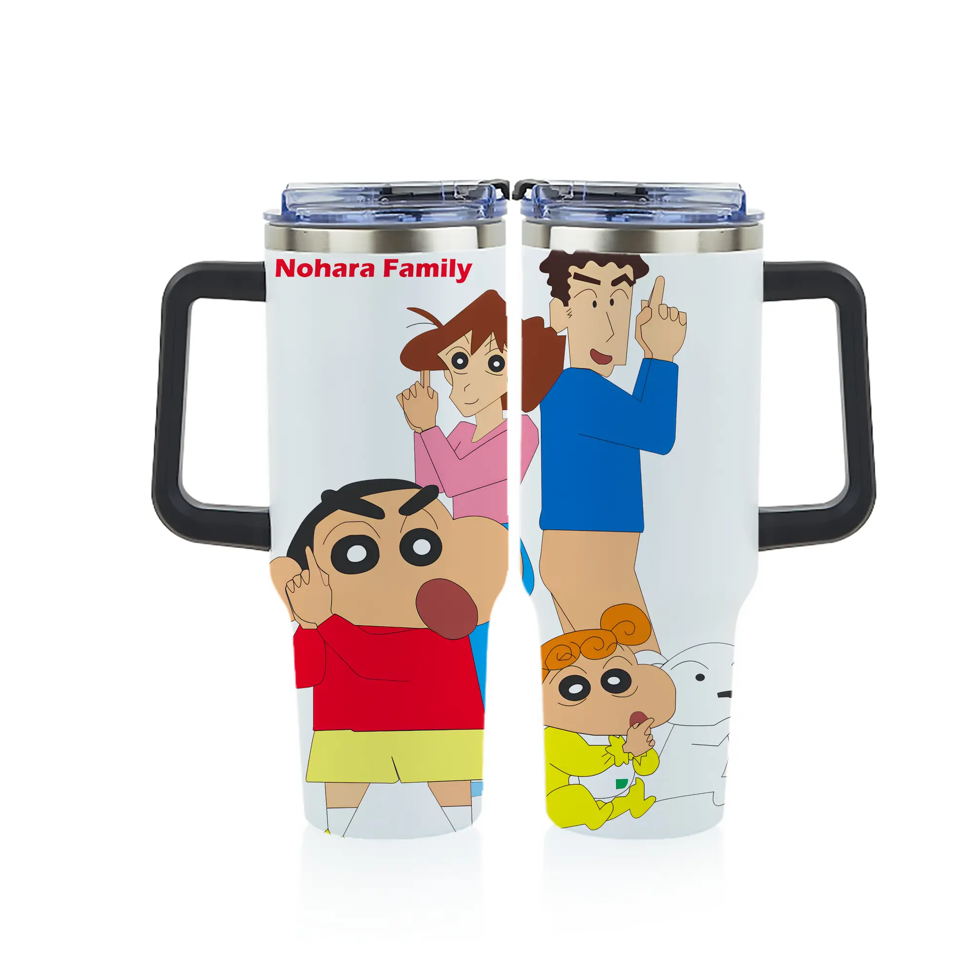 クレヨンしんちゃん グッズ 野原 ひろし - 1200mL フルプリント車用タンブラー ・ 304ステンレス 内側 ・ 201ステンレス 外側 ・ 保温 保冷 ・ 通勤 ドライブ アウトドア用