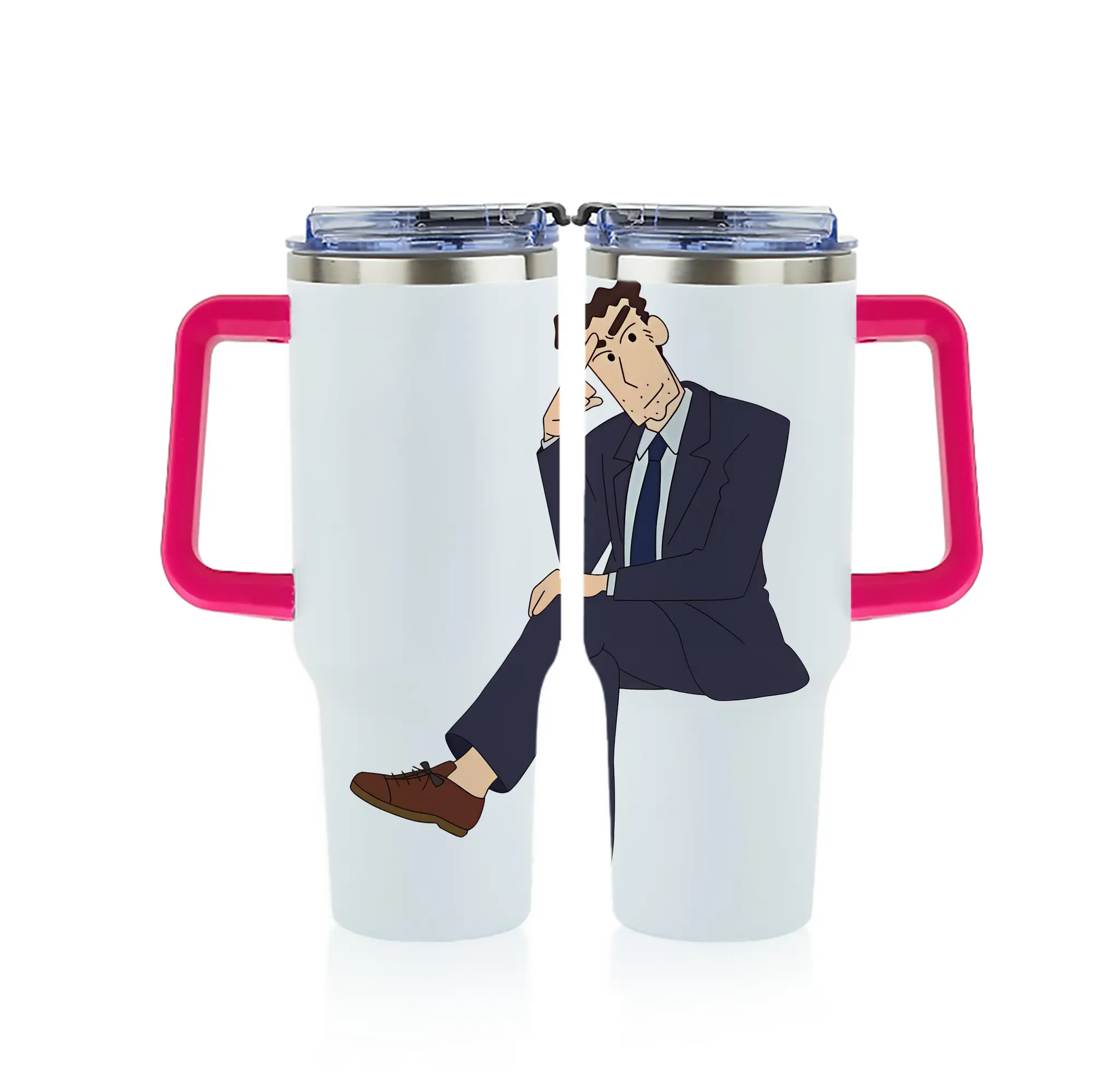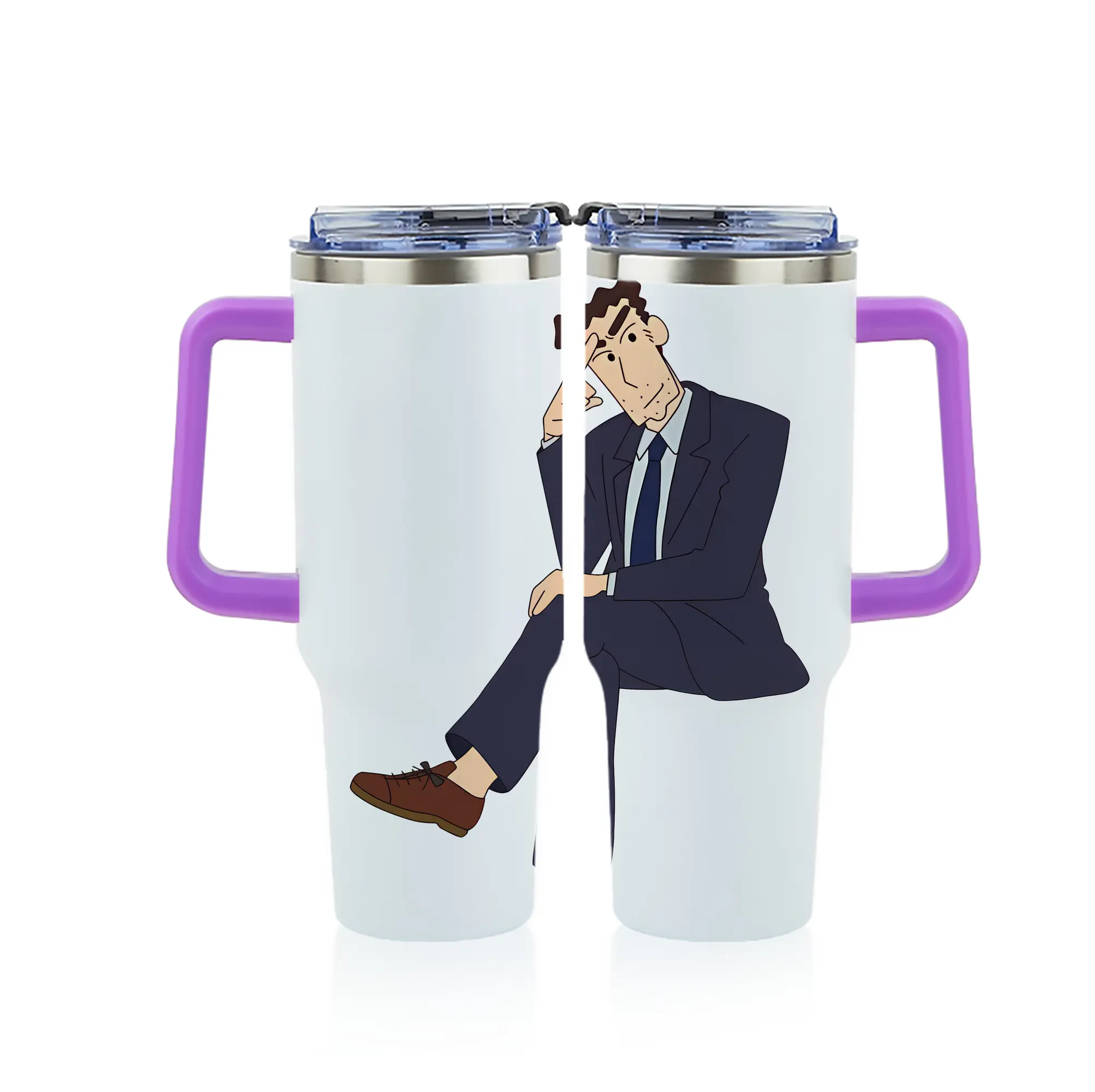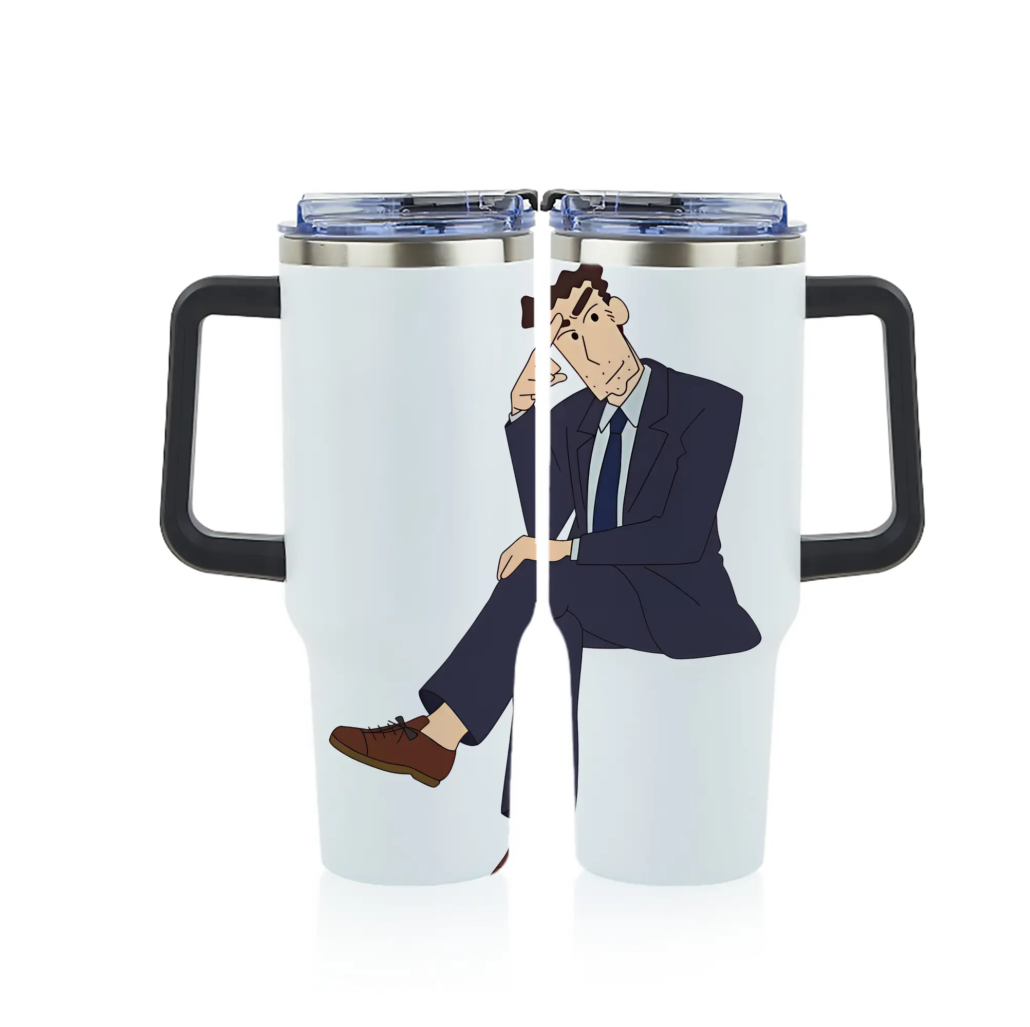 クレヨンしんちゃん グッズ 野原 ひろし - 1200mL フルプリント車用タンブラー ・ 304ステンレス 内側 ・ 201ステンレス 外側 ・ 保温 保冷 ・ 通勤 ドライブ アウトドア用