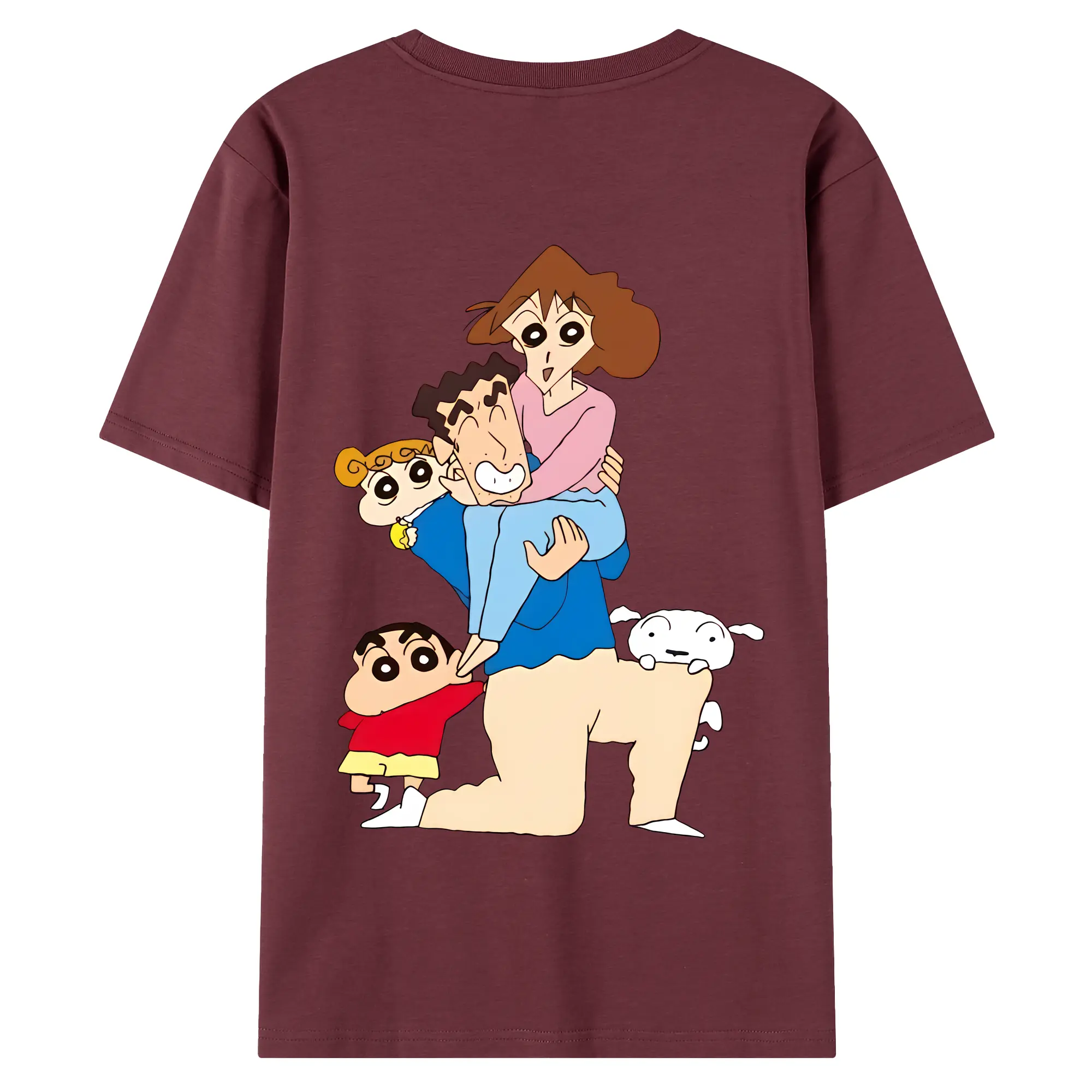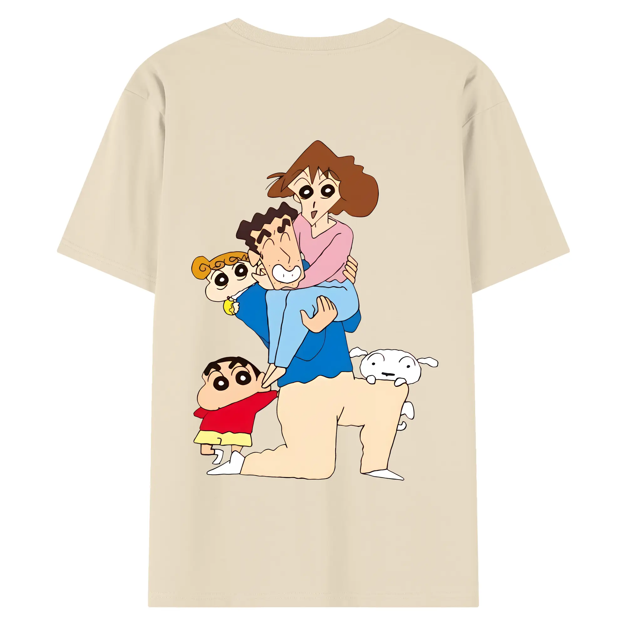 クレヨンしんちゃん グッズ 野原 ひろし - 綿100% ヴィンテージ風 半袖Tシャツ ・ 背面プリント ・ 柔らか肌触り ・ 通気性 快適 ・ スポーツ カジュアル 外出用