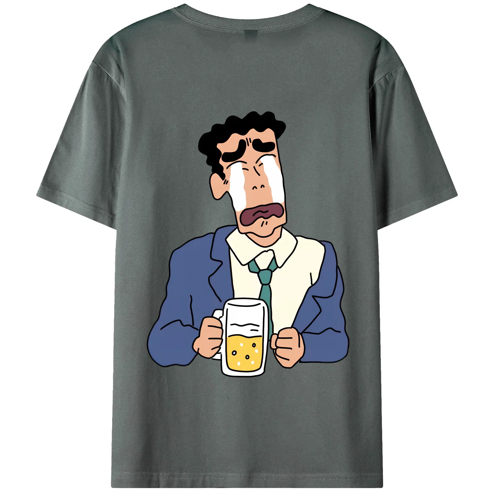 クレヨンしんちゃん グッズ 野原 ひろし - 綿100% ヴィンテージ風 半袖Tシャツ ・ 背面プリント ・ 柔らか肌触り ・ 通気性 快適 ・ スポーツ カジュアル 外出用