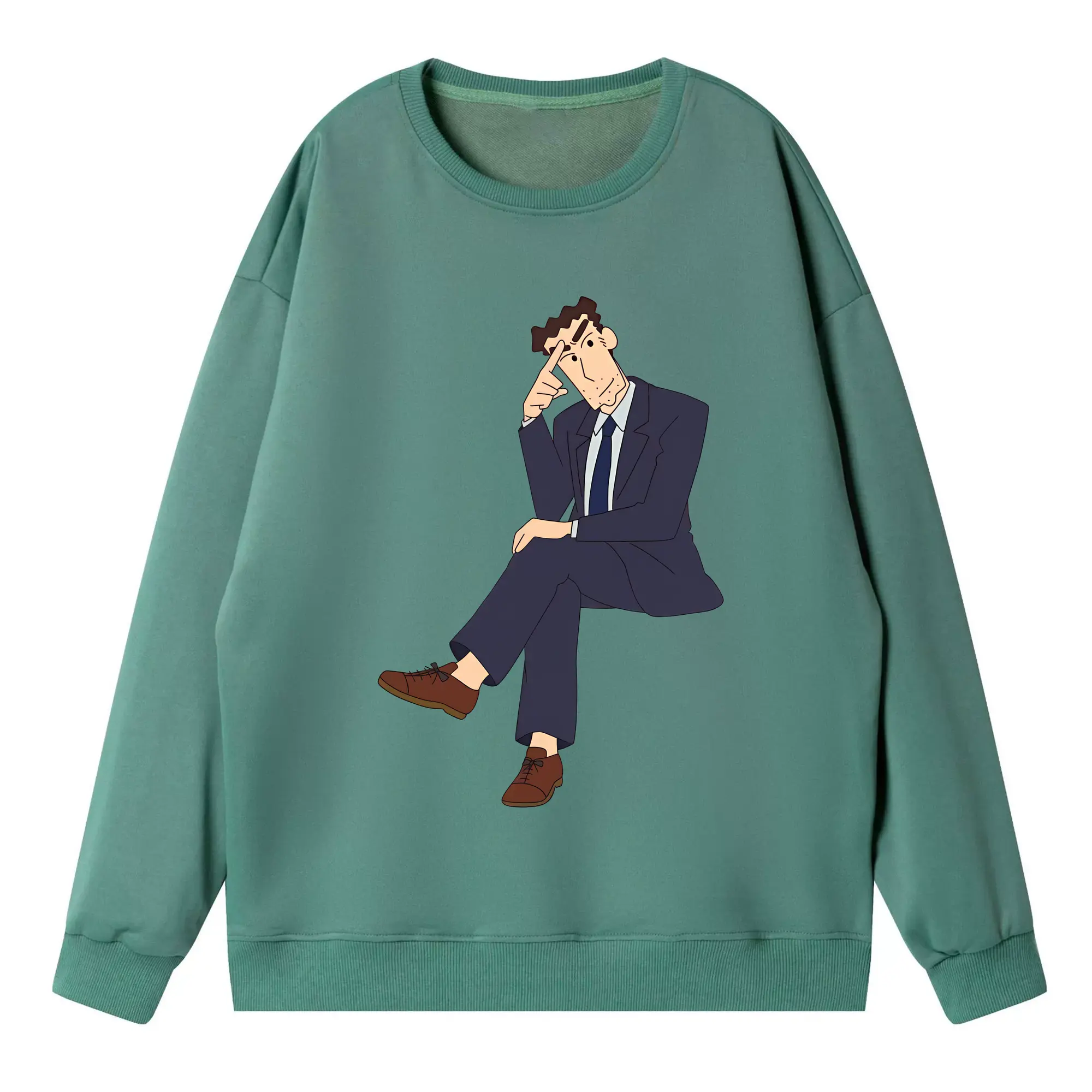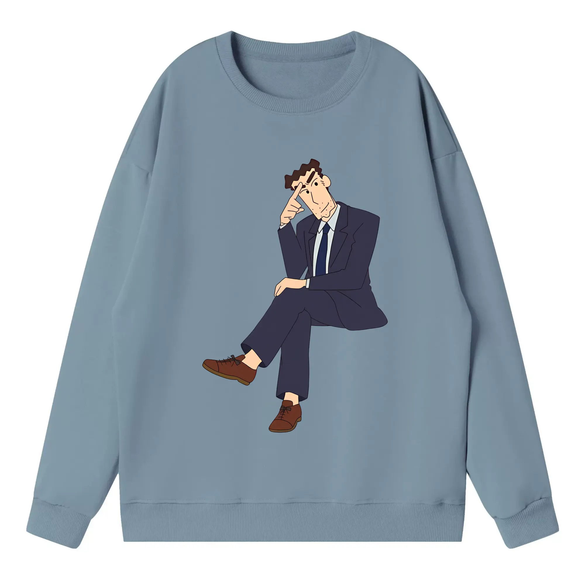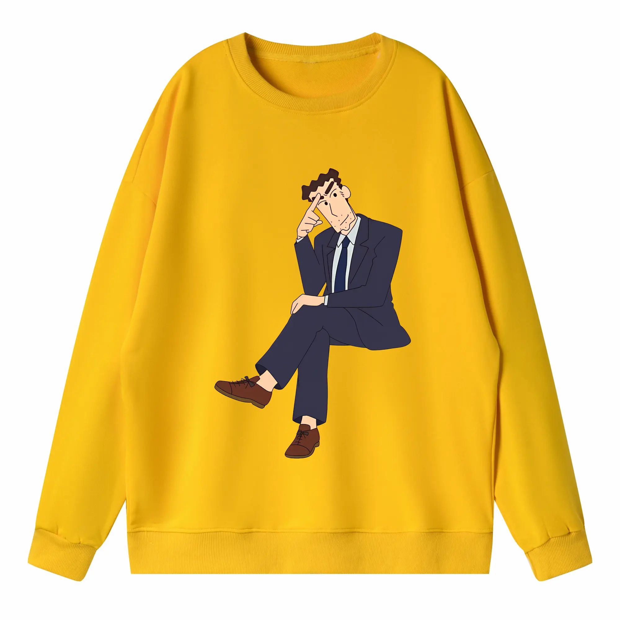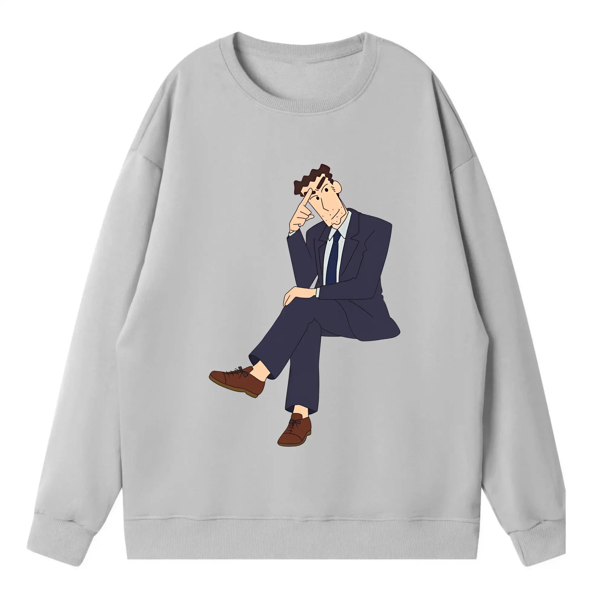 クレヨンしんちゃん グッズ 野原 ひろし - 高品質 クルーネック スウェット ・ コットン59% ポリエステル41% ・ ユニセックス 長袖 トレーナー ・ カジュアル デイリー スポーツ 散歩用