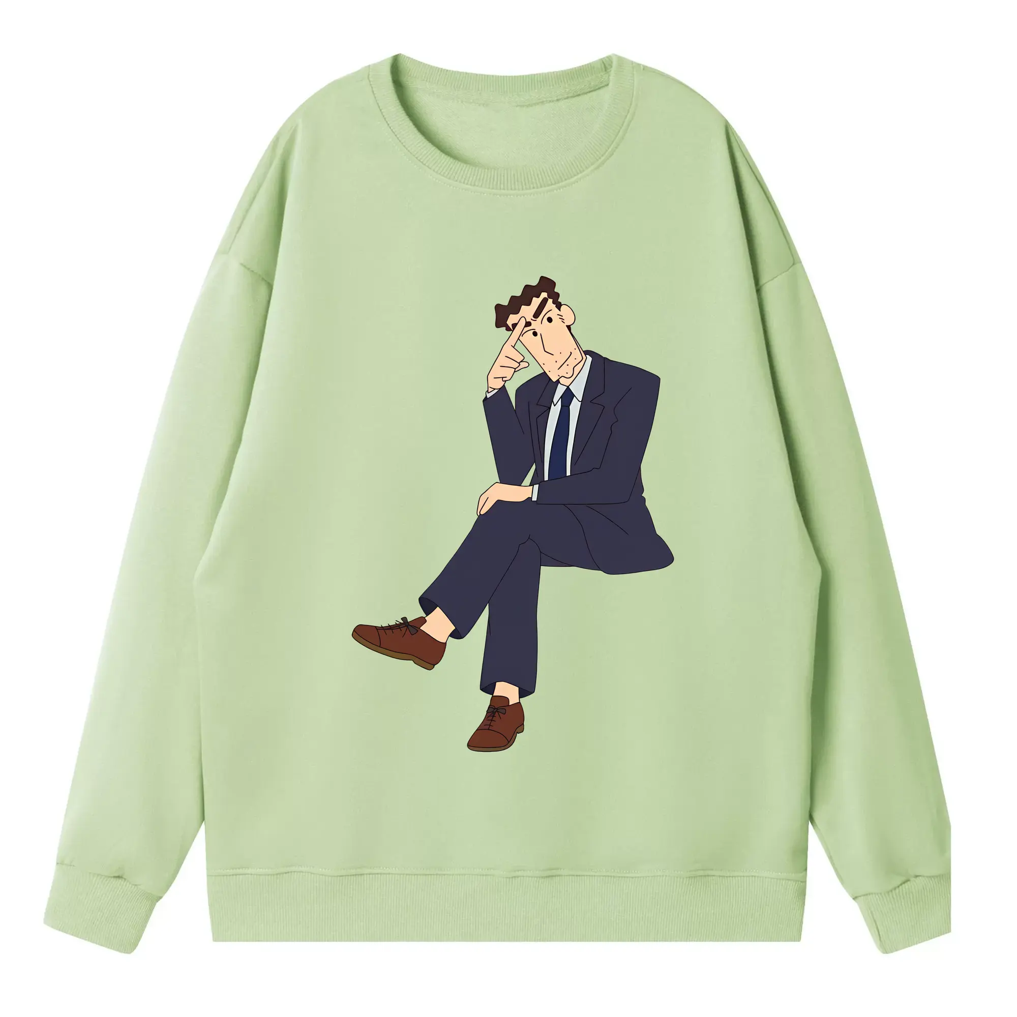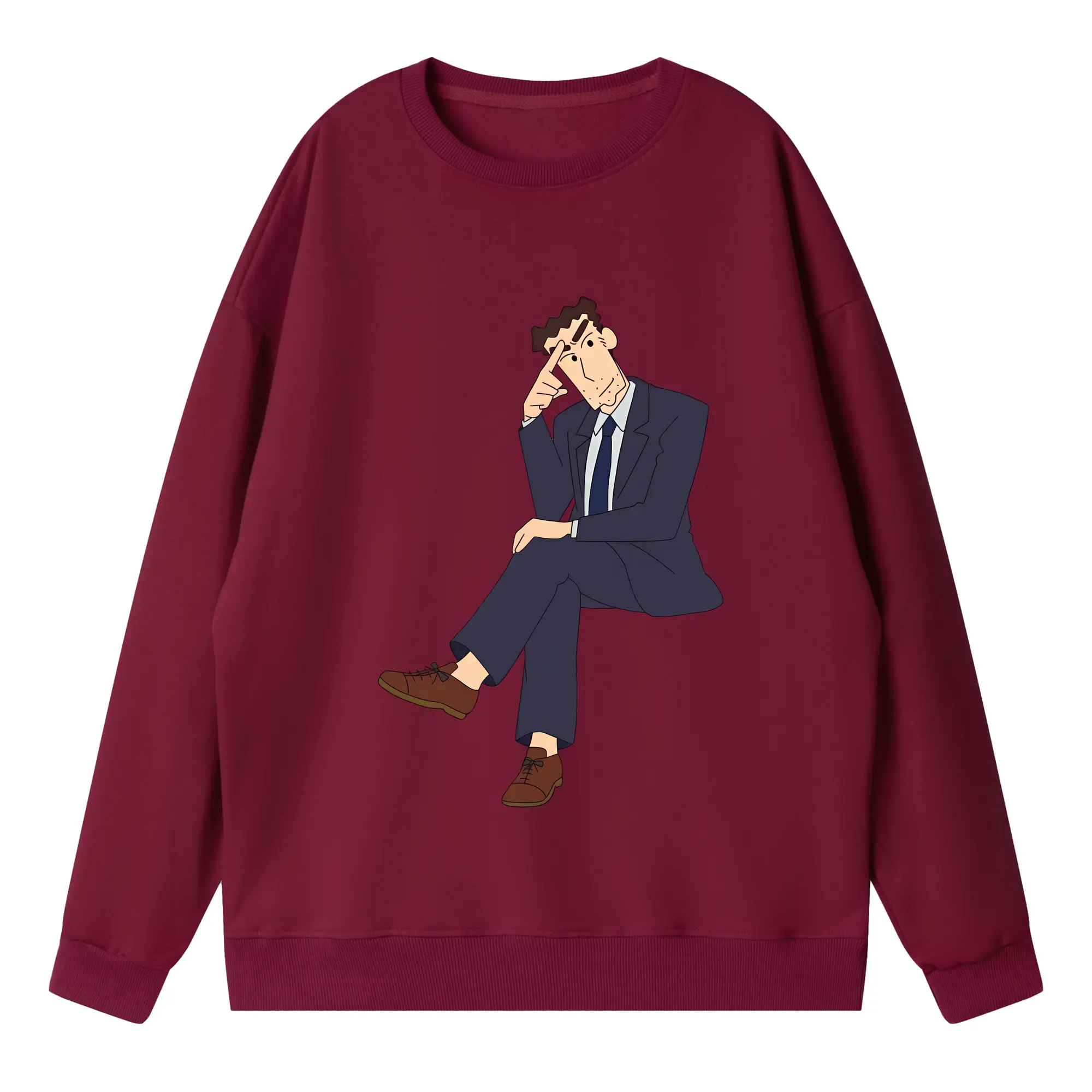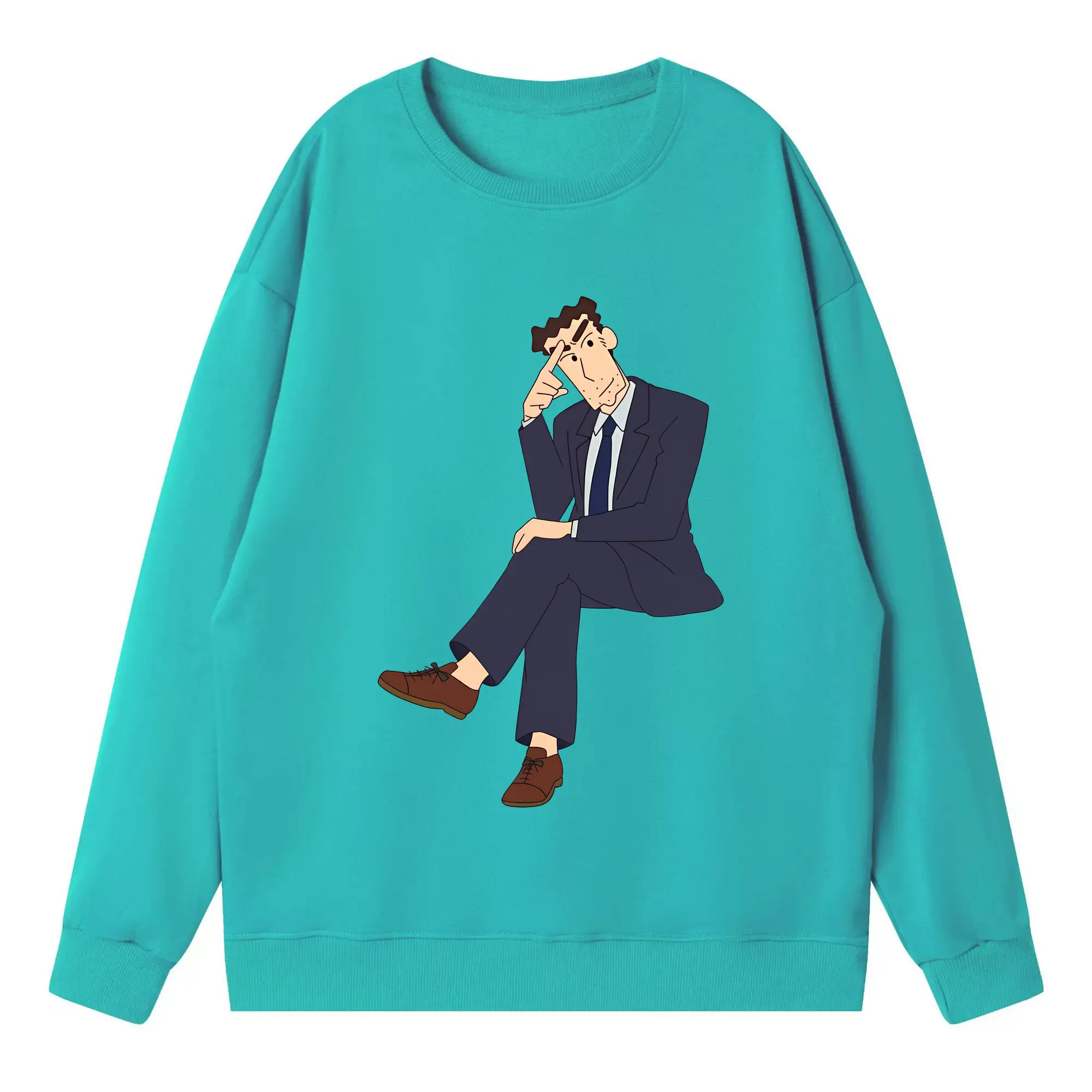 クレヨンしんちゃん グッズ 野原 ひろし - 高品質 クルーネック スウェット ・ コットン59% ポリエステル41% ・ ユニセックス 長袖 トレーナー ・ カジュアル デイリー スポーツ 散歩用