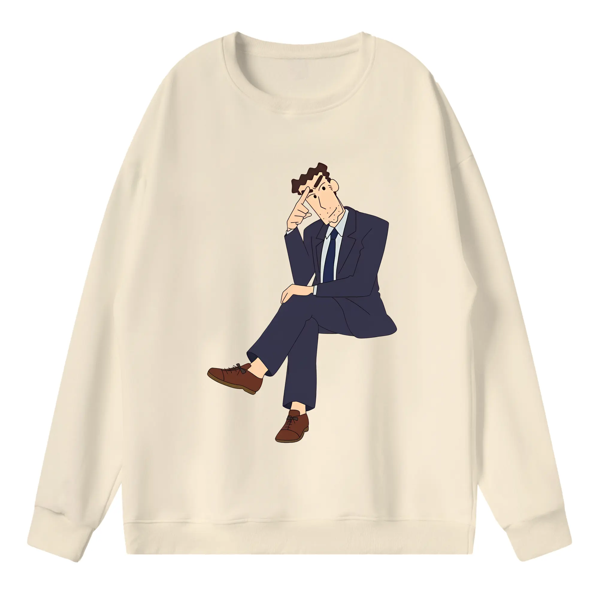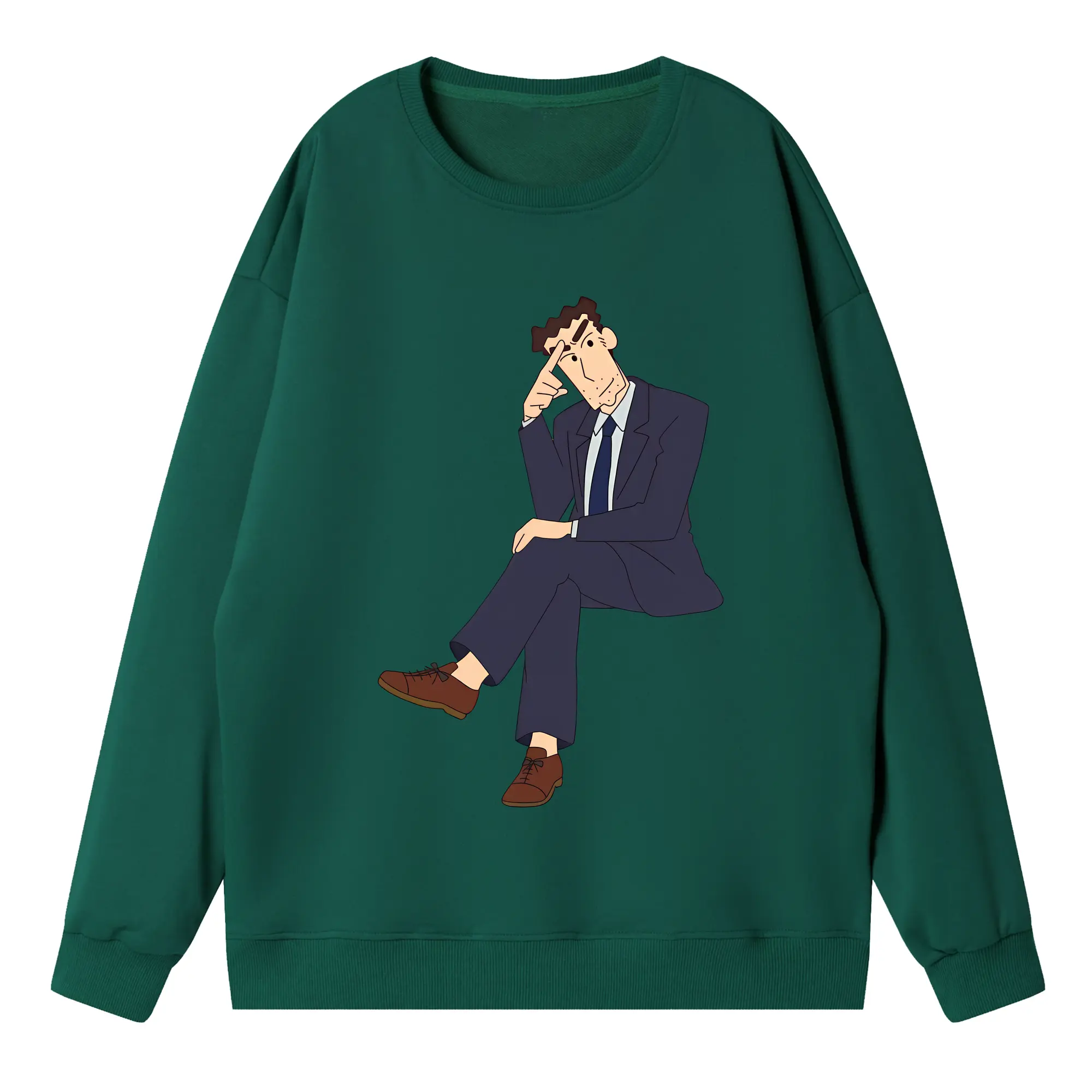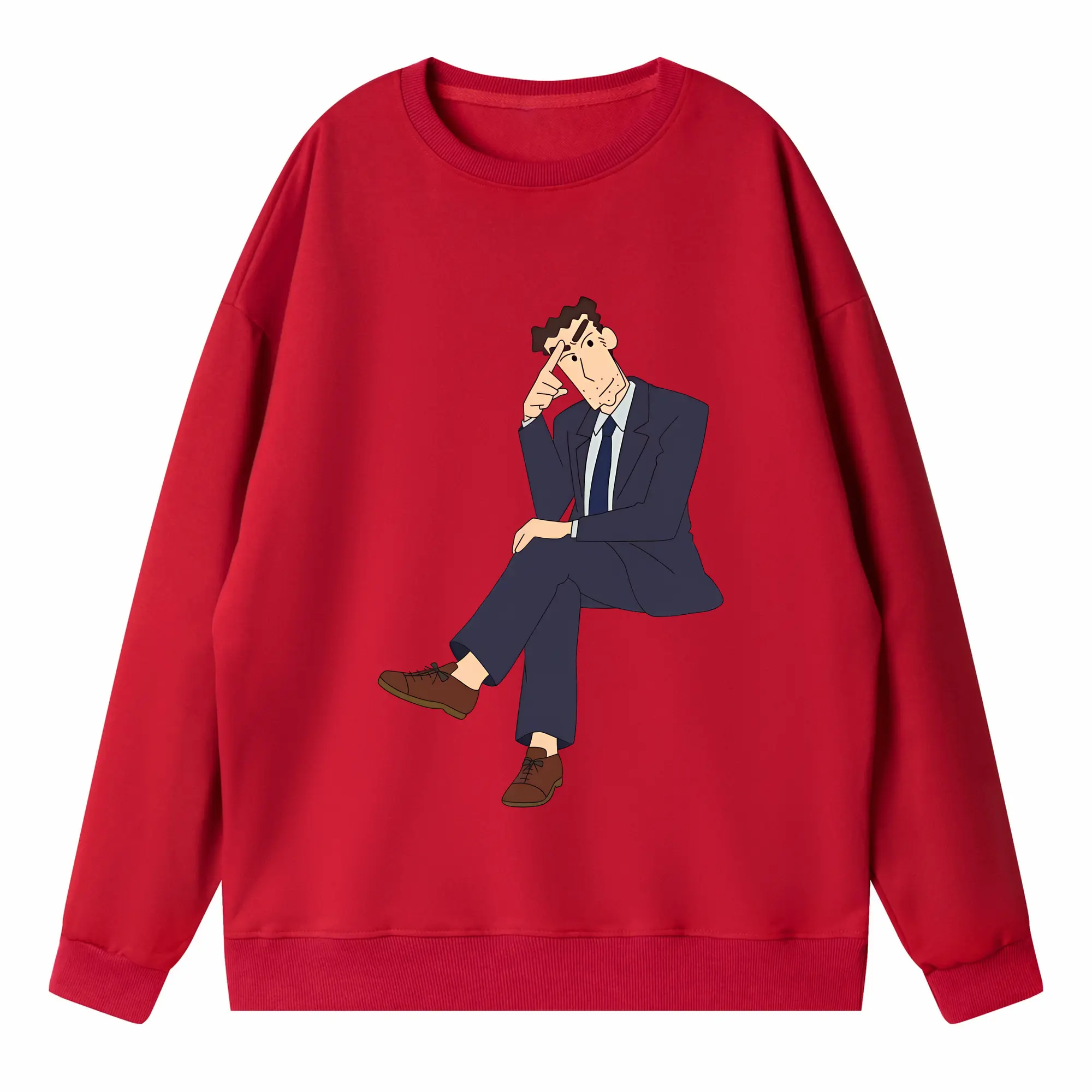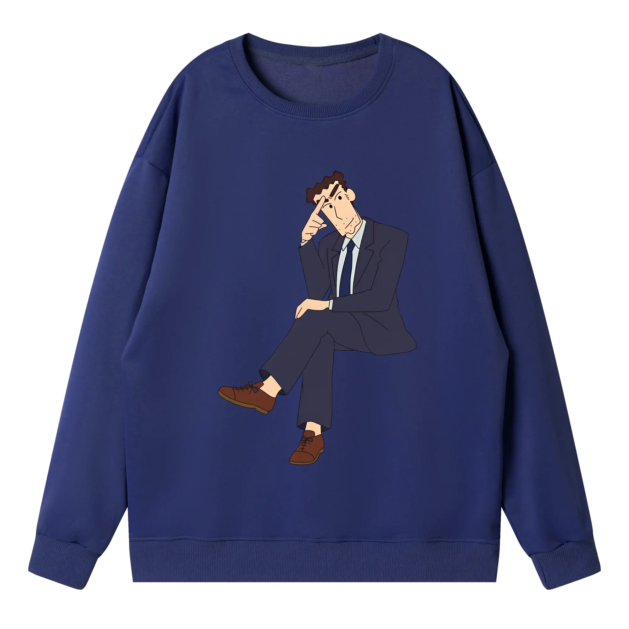 クレヨンしんちゃん グッズ 野原 ひろし - 高品質 クルーネック スウェット ・ コットン59% ポリエステル41% ・ ユニセックス 長袖 トレーナー ・ カジュアル デイリー スポーツ 散歩用