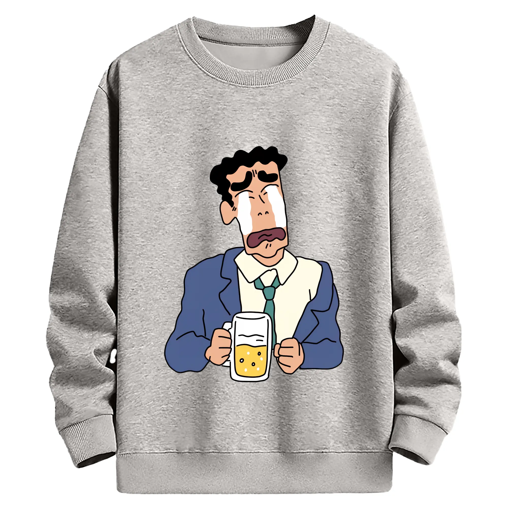 クレヨンしんちゃん グッズ 野原 ひろし - 高品質 クルーネック スウェット ・ コットン59% ポリエステル41% ・ ユニセックス 長袖 トレーナー ・ カジュアル デイリー スポーツ 散歩用