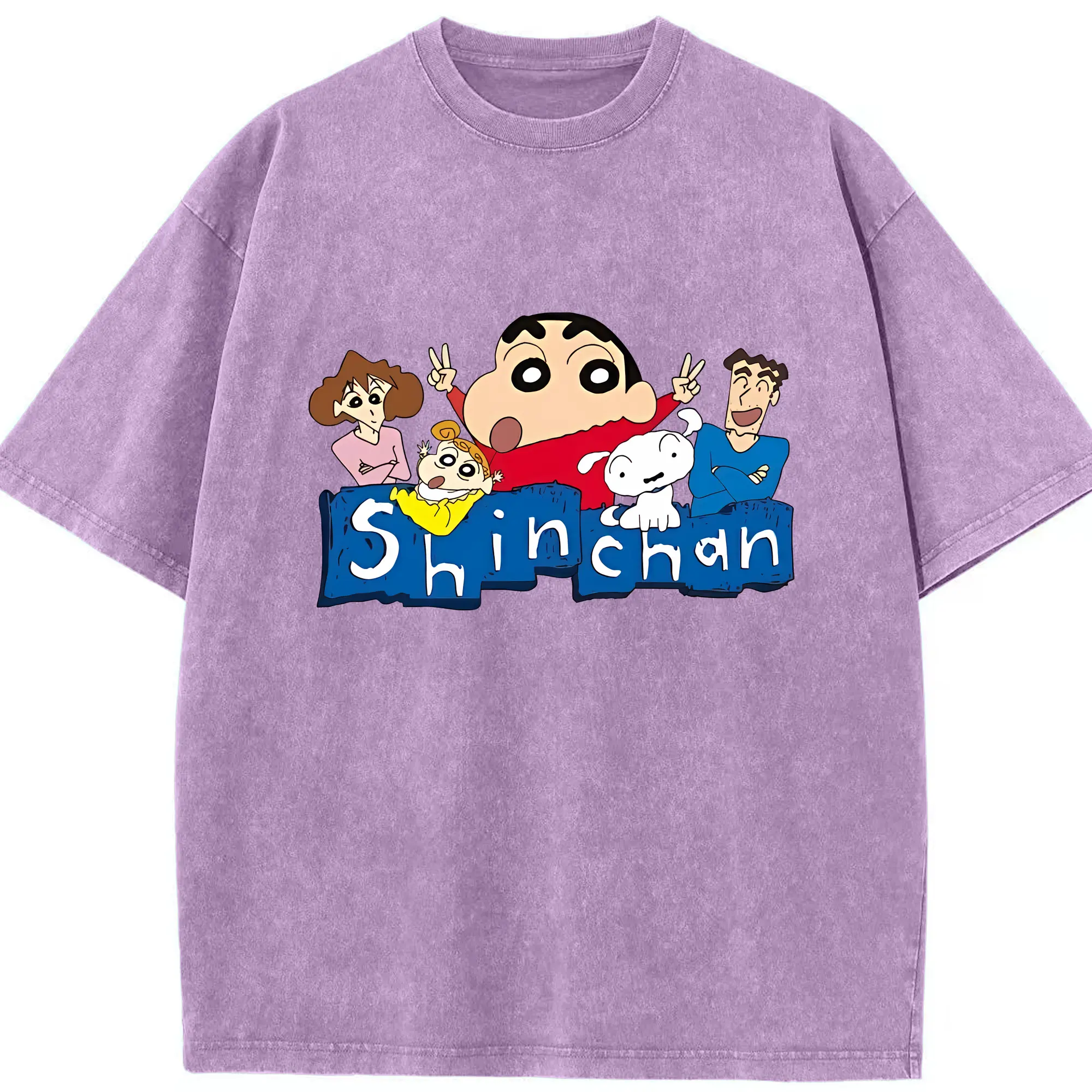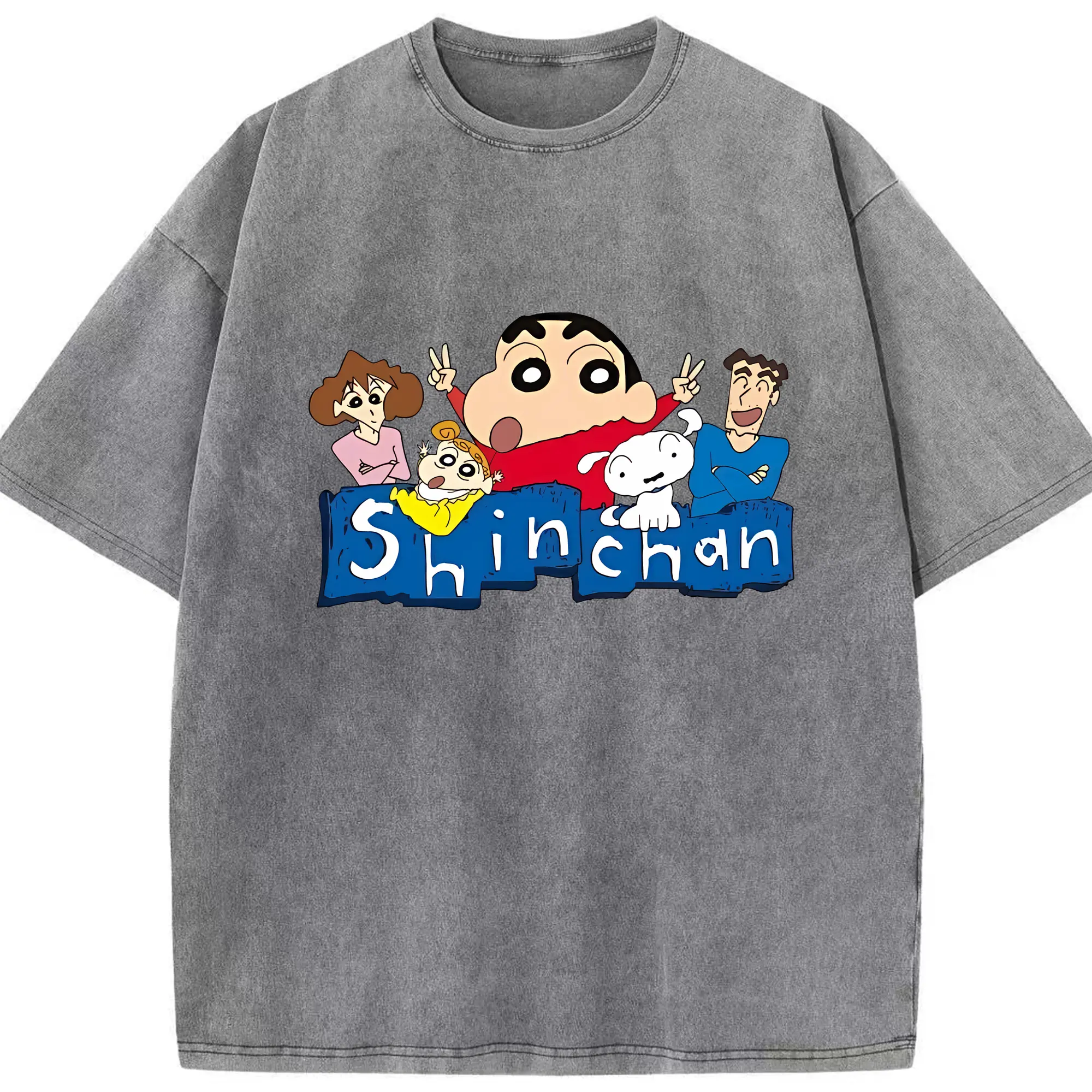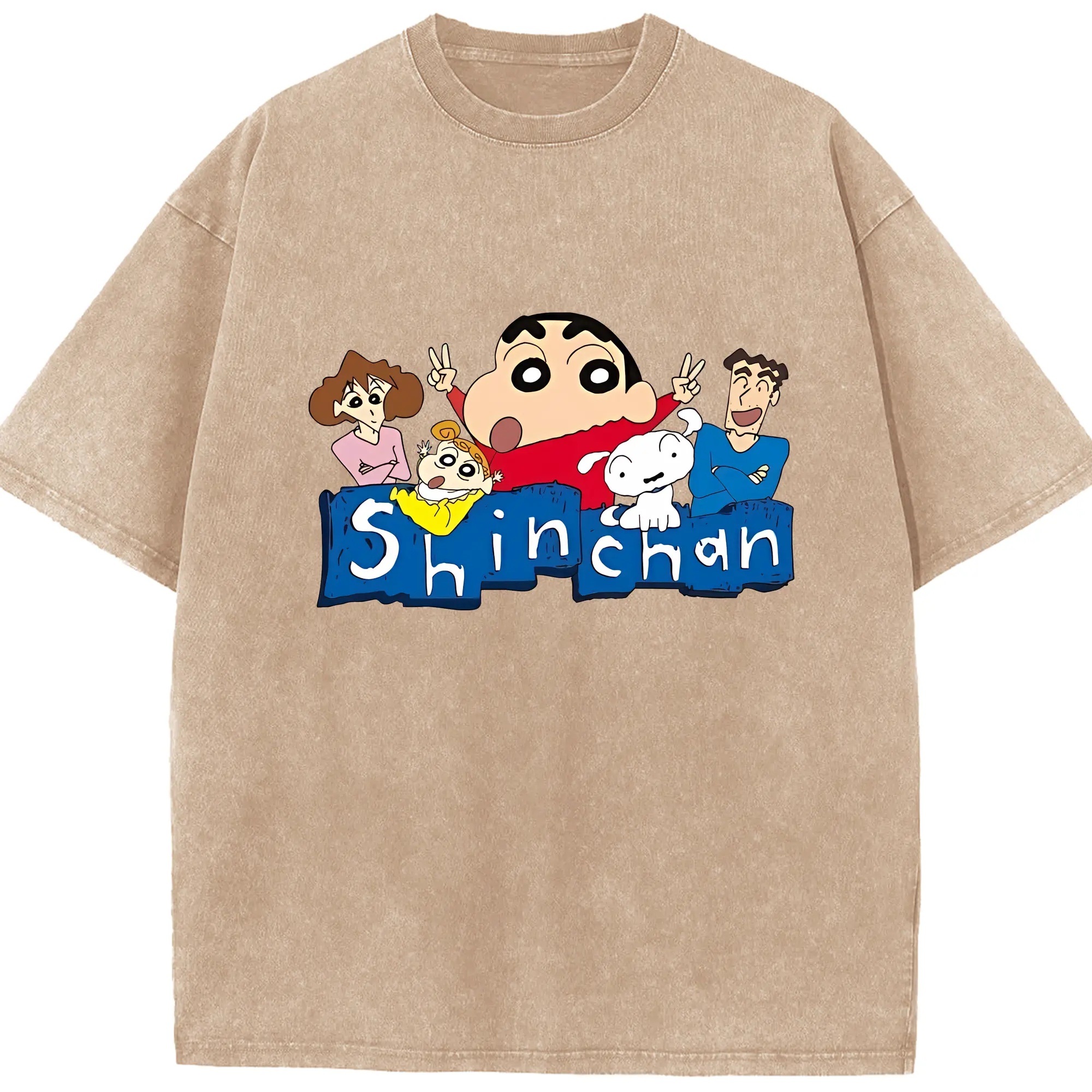 クレヨンしんちゃん グッズ 野原 ひろし - 綿100% ヴィンテージ風 半袖Tシャツ ・ 背面プリント ・ 柔らか肌触り ・ 通気性 快適 ・ スポーツ カジュアル 外出用