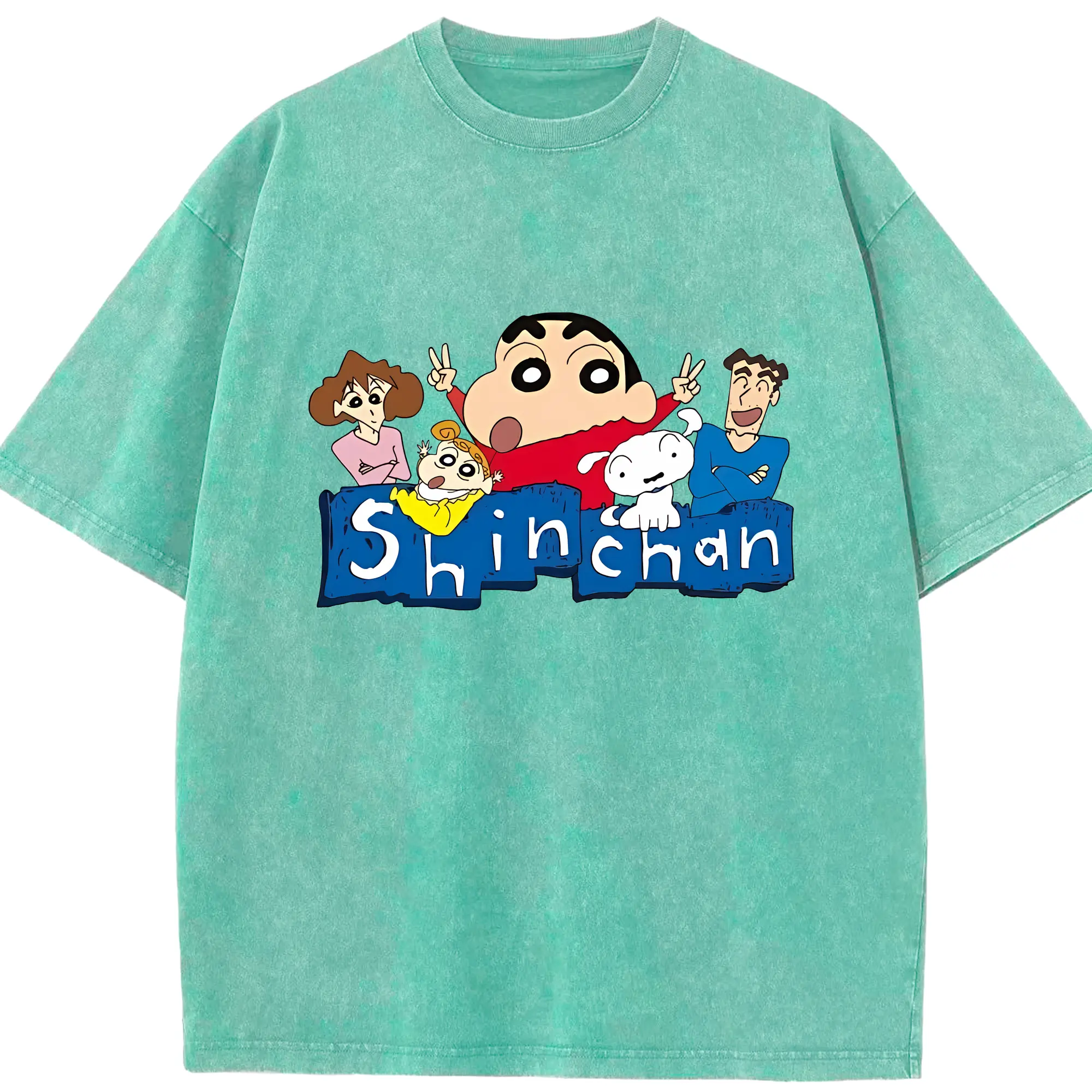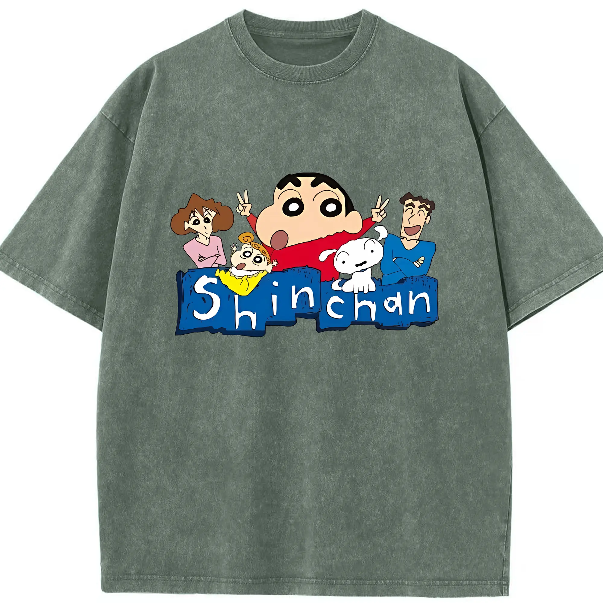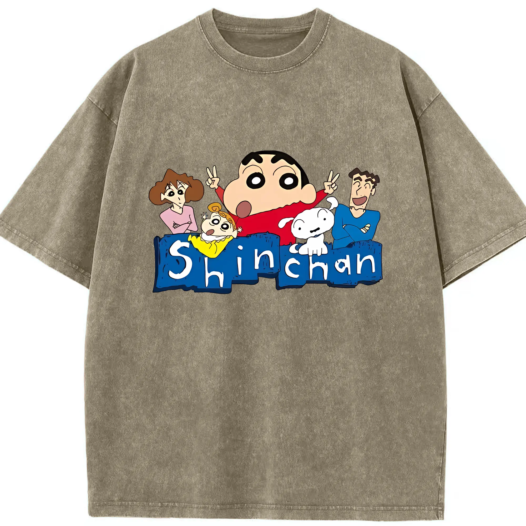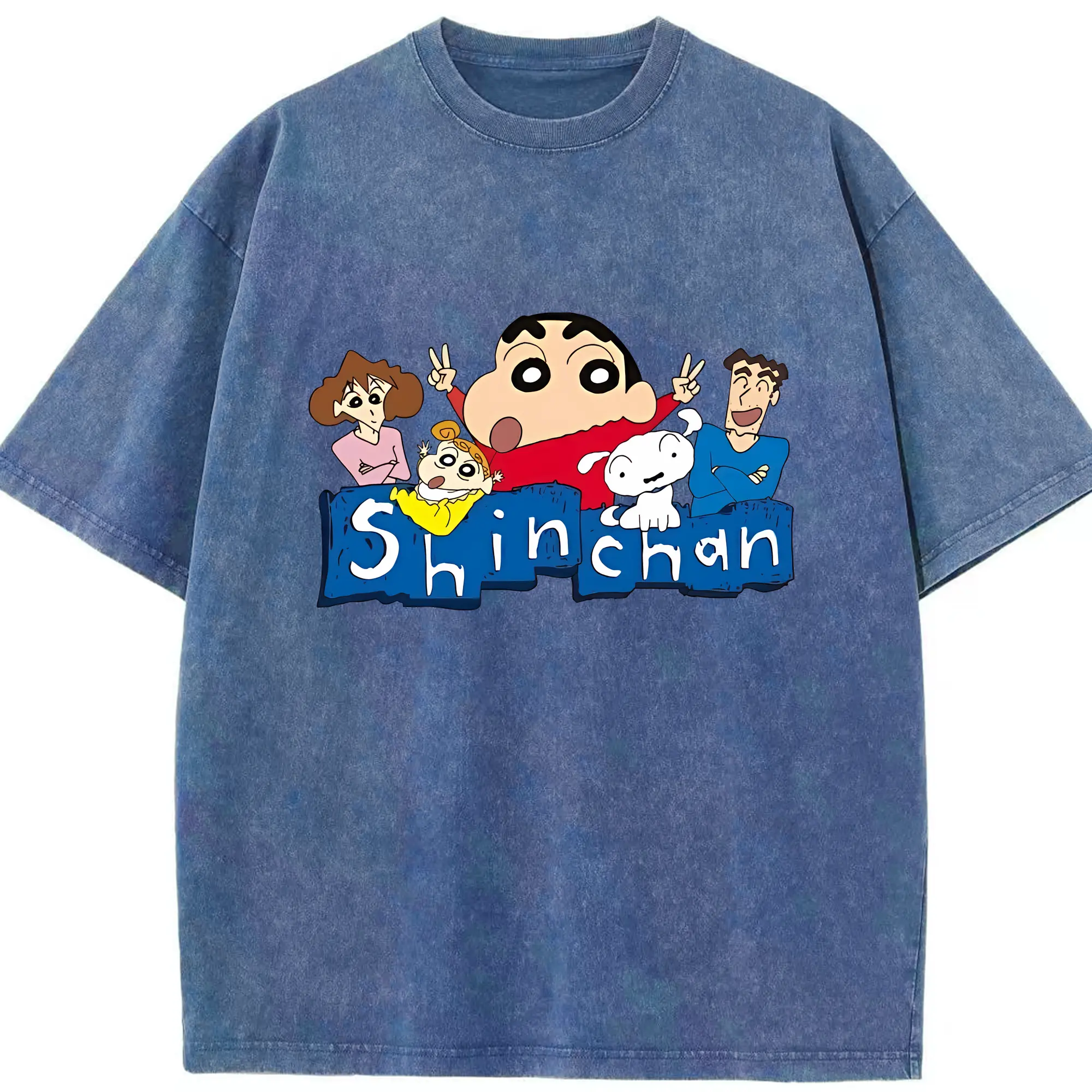 クレヨンしんちゃん グッズ 野原 ひろし - 綿100% ヴィンテージ風 半袖Tシャツ ・ 背面プリント ・ 柔らか肌触り ・ 通気性 快適 ・ スポーツ カジュアル 外出用