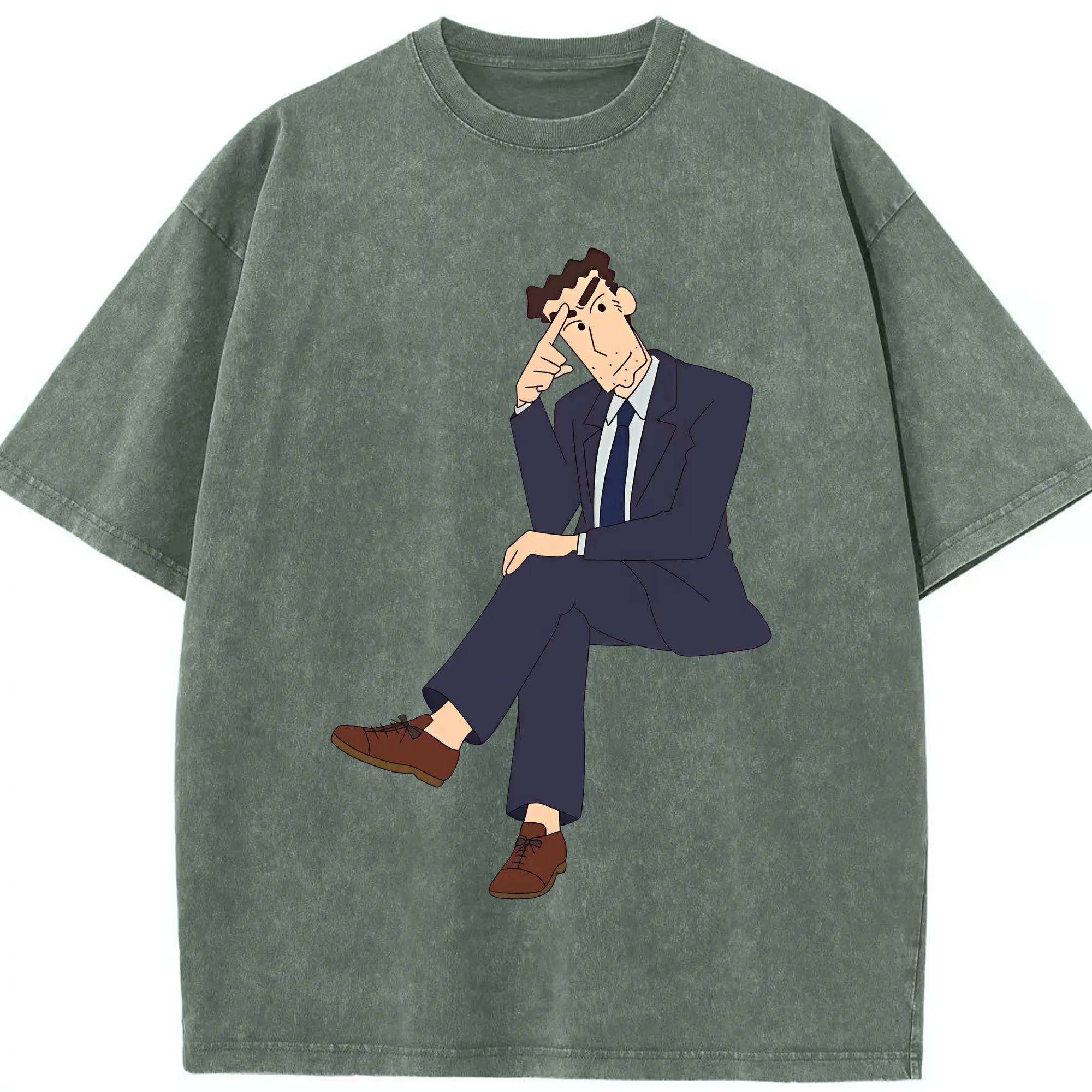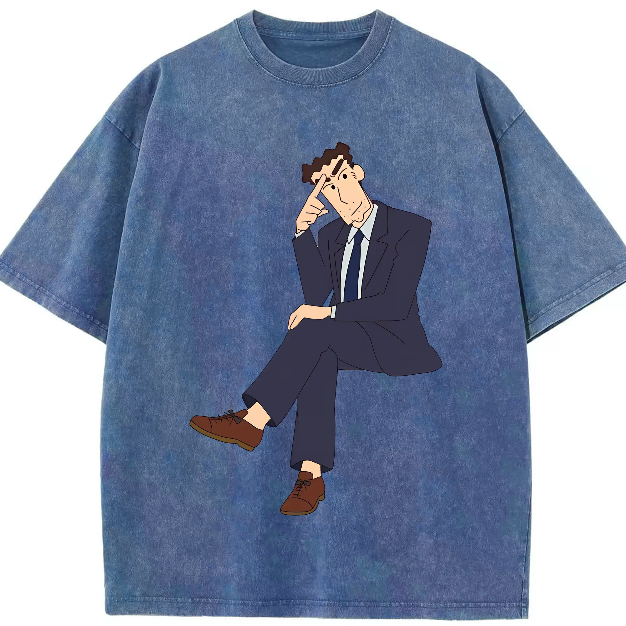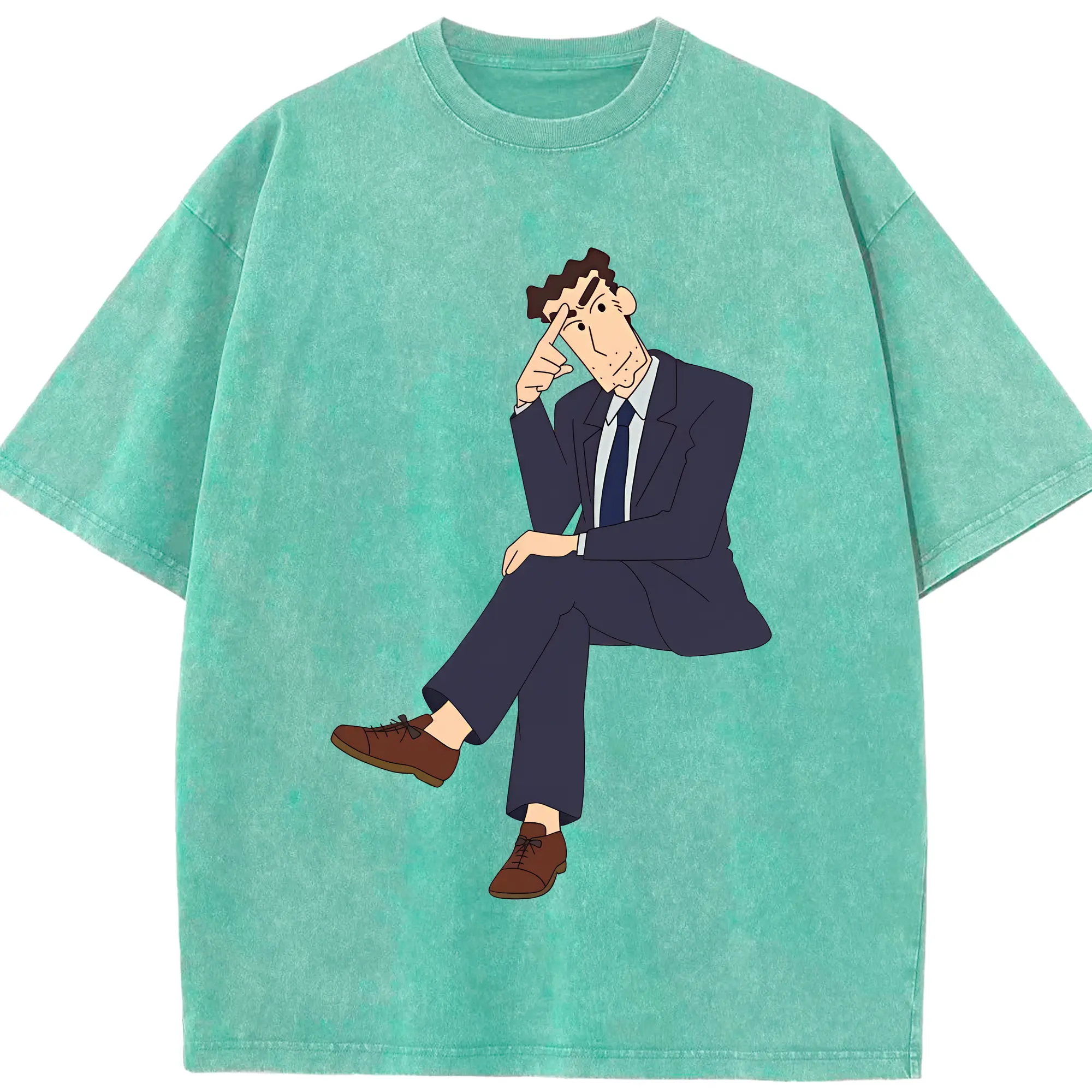 クレヨンしんちゃん グッズ 野原 ひろし - 綿100% 半袖Tシャツ ・ フロントプリント ・ 快適 通気性 ・ 日常使い 散歩 スポーツ用