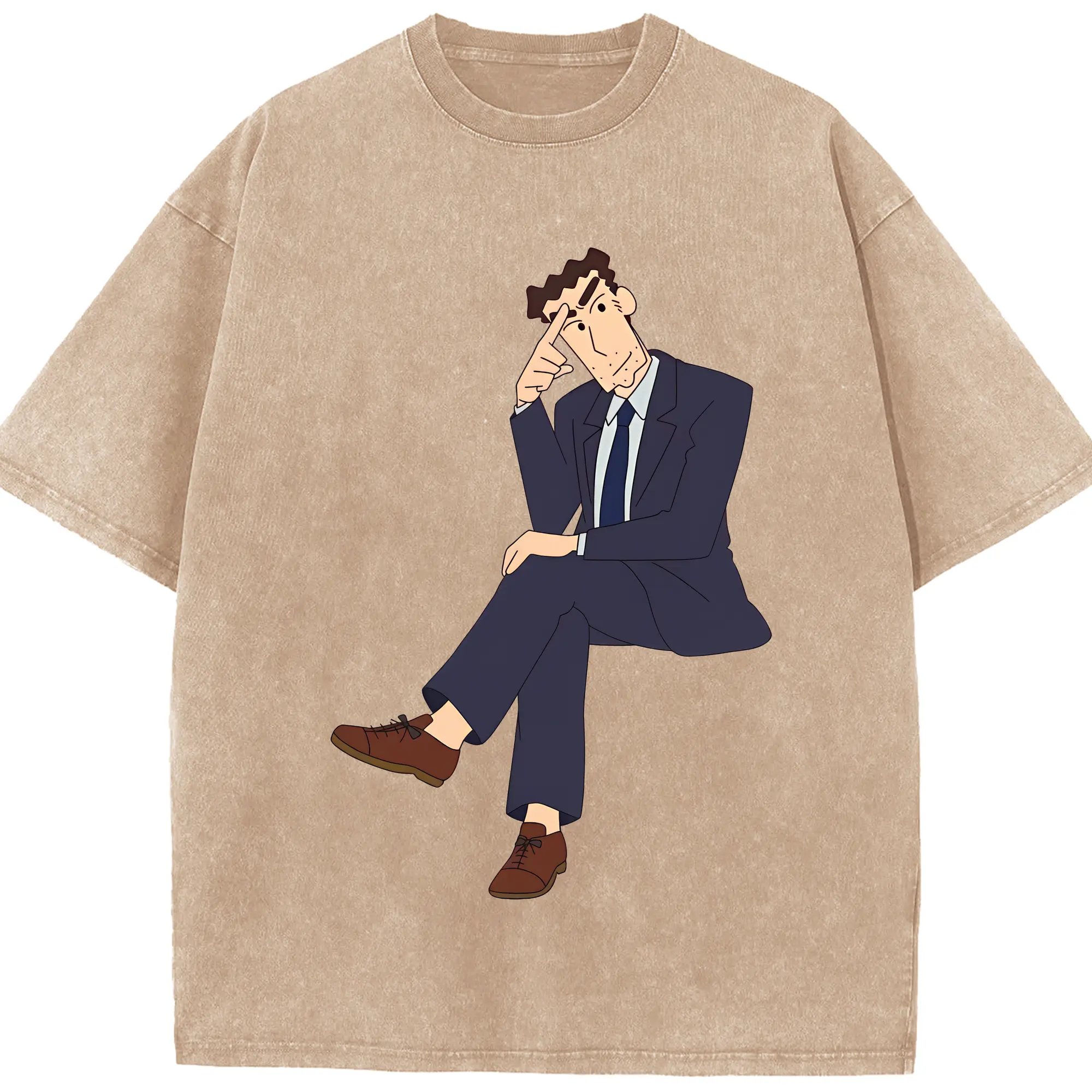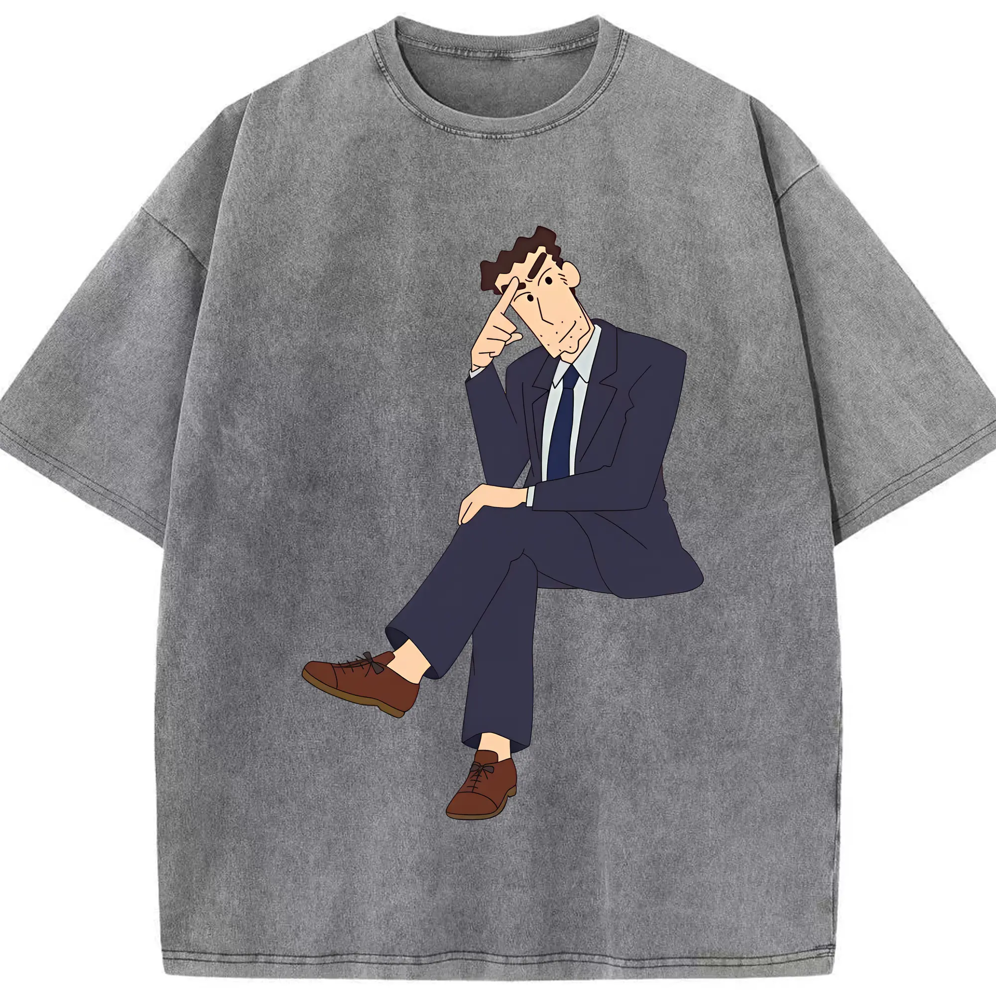 クレヨンしんちゃん グッズ 野原 ひろし - 綿100% ヴィンテージ風 半袖Tシャツ ・ 背面プリント ・ 柔らか肌触り ・ 通気性 快適 ・ スポーツ カジュアル 外出用