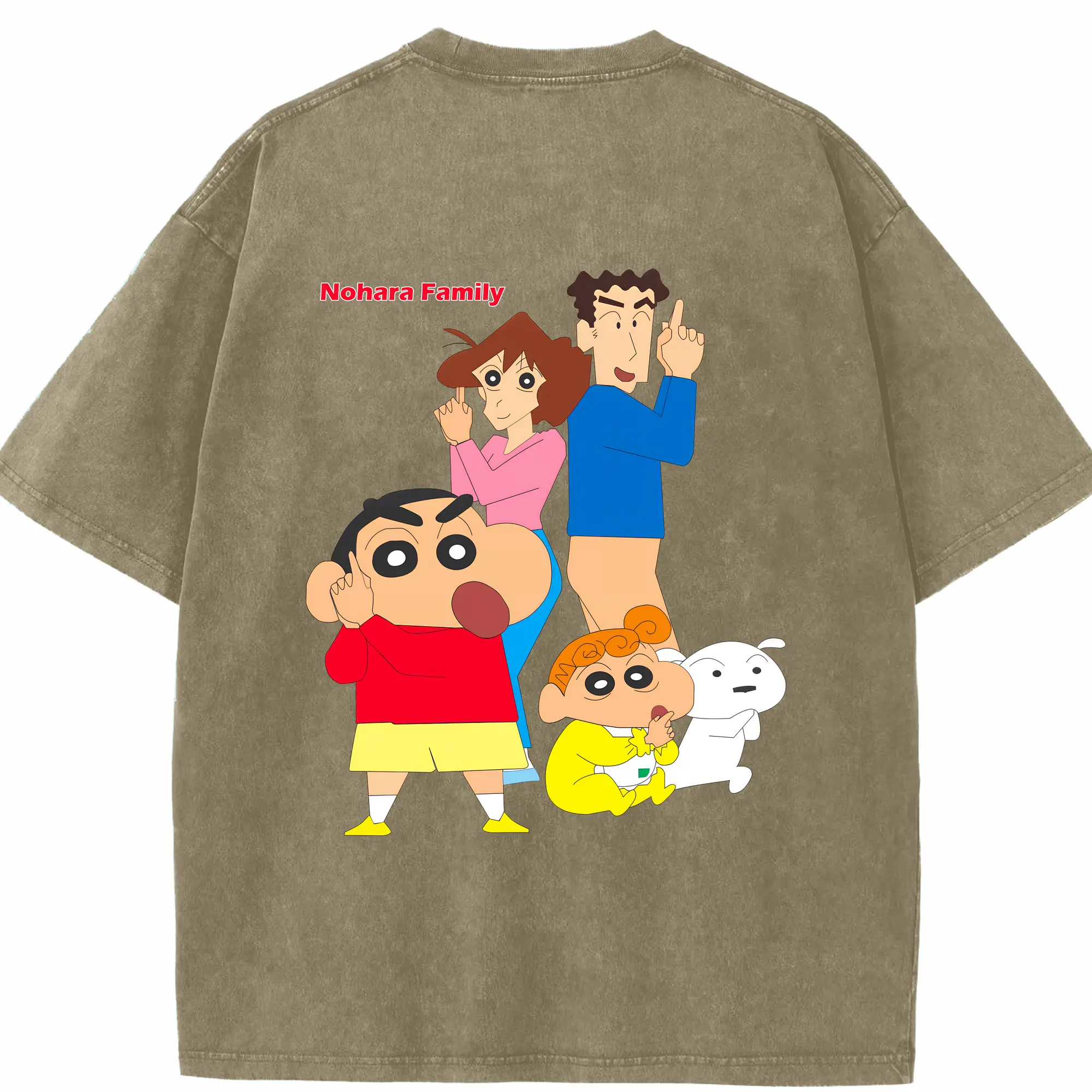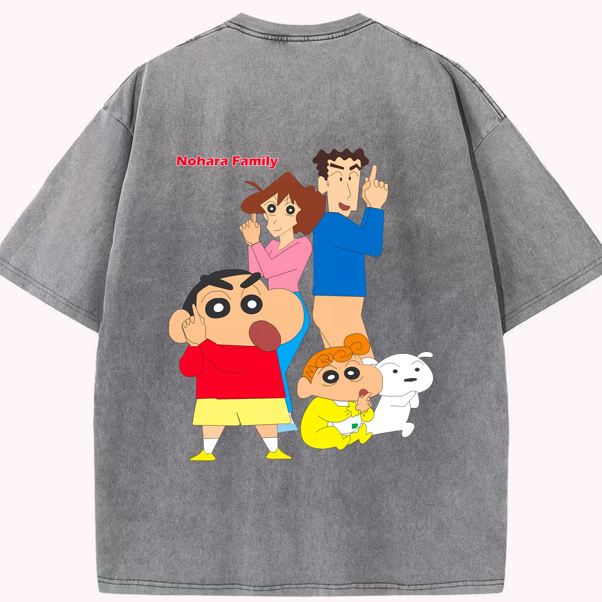 クレヨンしんちゃん グッズ 野原 ひろし - 綿100% ヴィンテージ風 半袖Tシャツ ・ フロントプリント ・ 柔らか肌触り ・ 通気性 快適 ・ スポーツ カジュアル 外出用