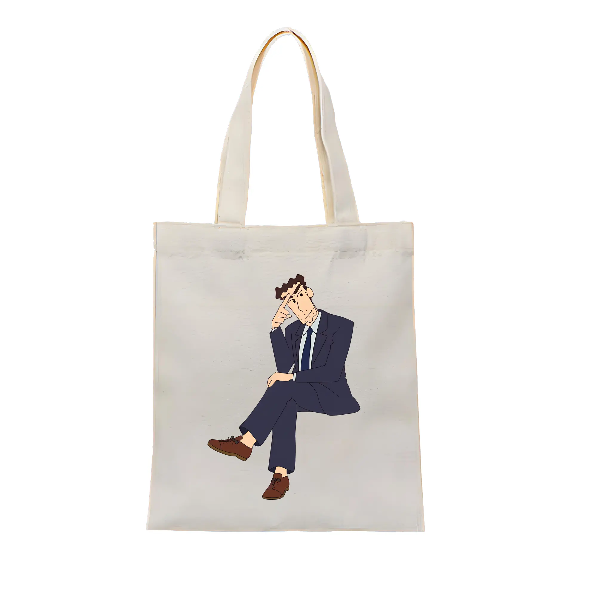 クレヨンしんちゃん グッズ 野原 ひろし - 縦型キャンバス手提げバッグ(トートバッグ) ・ キャンバス素材 ・ ショッピング用 ・ 軽量 丈夫 お手入れ簡単