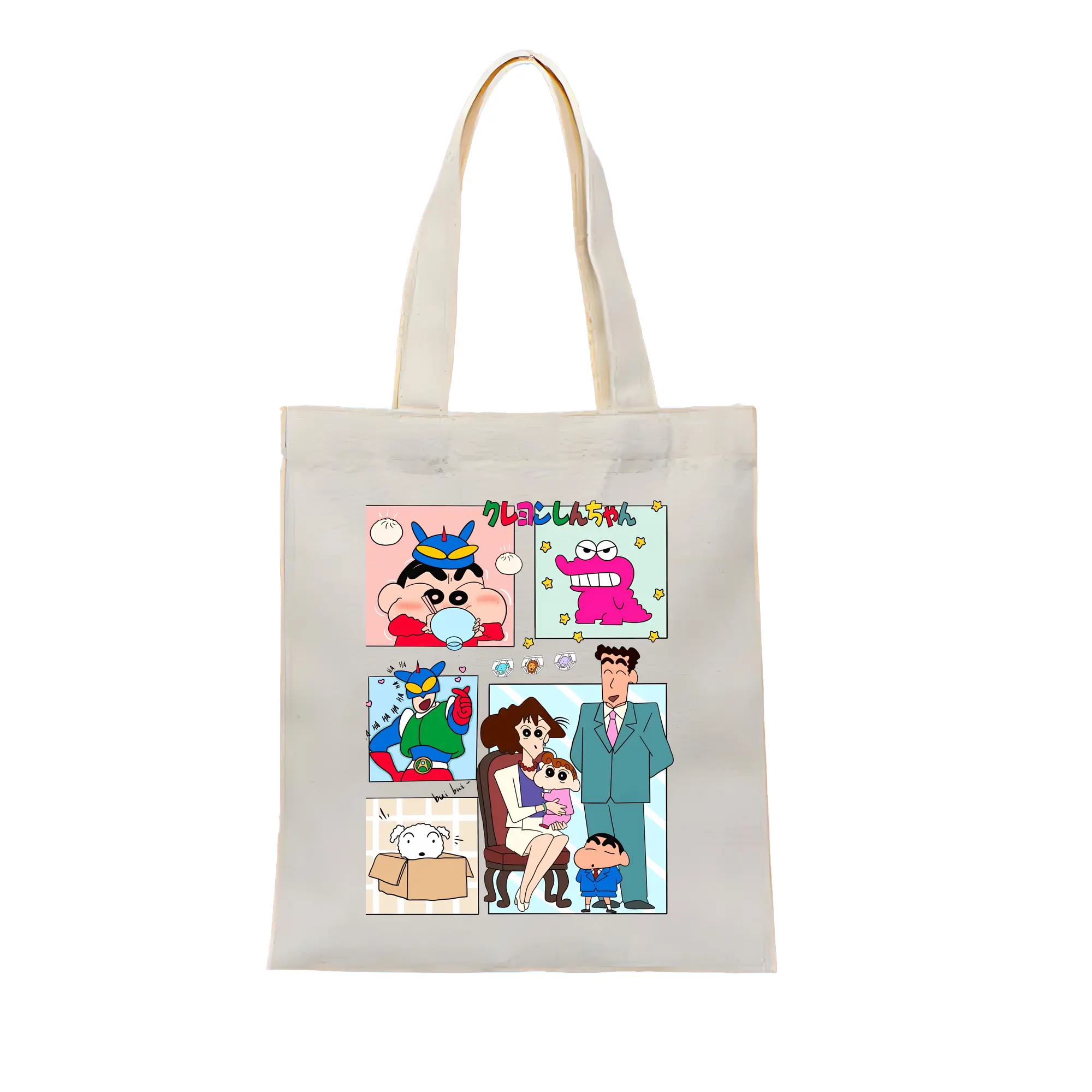 クレヨンしんちゃん グッズ 野原 ひろし - 縦型キャンバス手提げバッグ(トートバッグ) ・ キャンバス素材 ・ ショッピング用 ・ 軽量 丈夫 お手入れ簡単