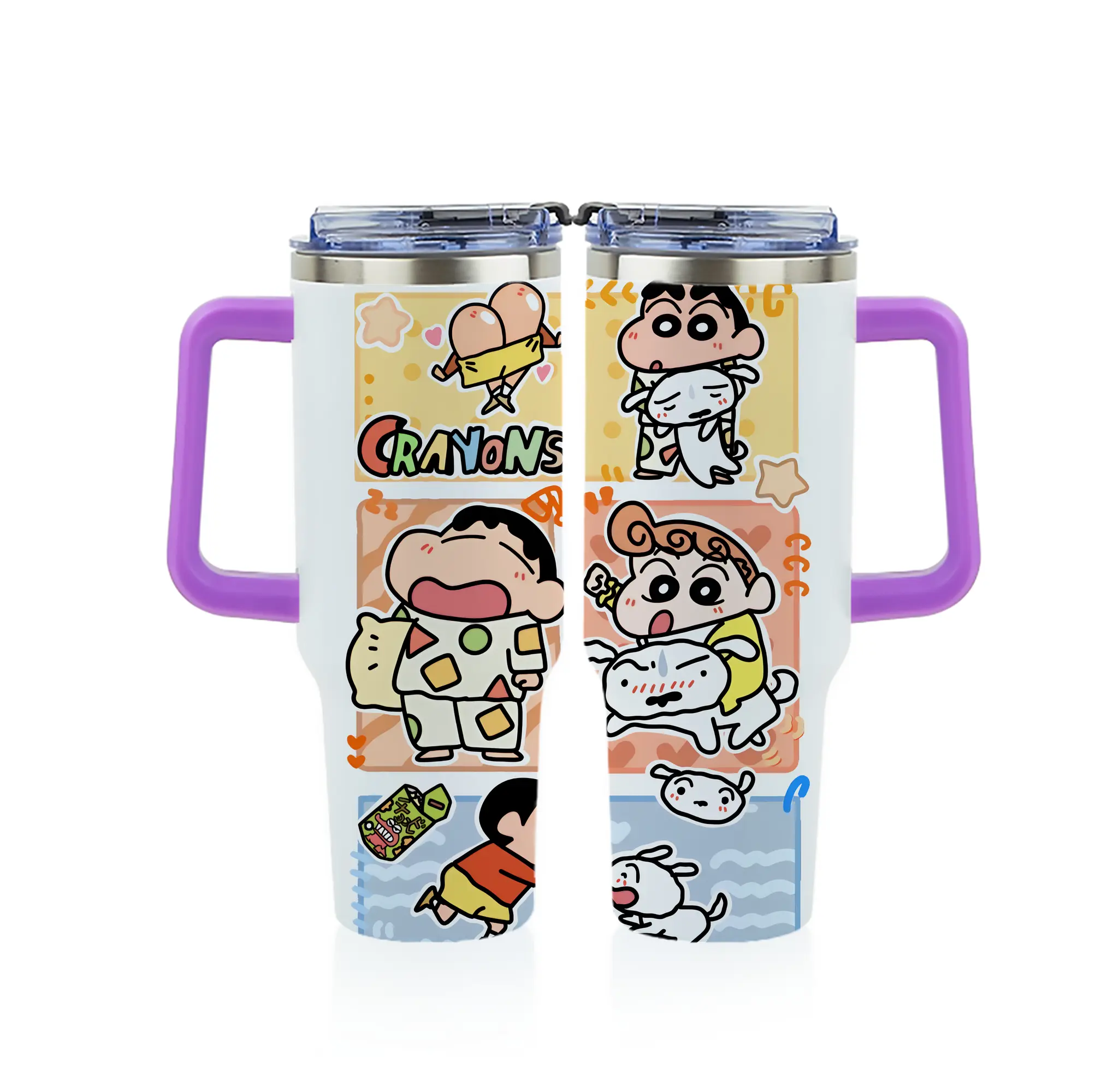 クレヨンしんちゃん グッズ 野原 ひまわり - 1200mL フルプリント車用タンブラー ・ 304ステンレス 内側 ・ 201ステンレス 外側 ・ 保温 保冷 ・ 通勤 ドライブ アウトドア用