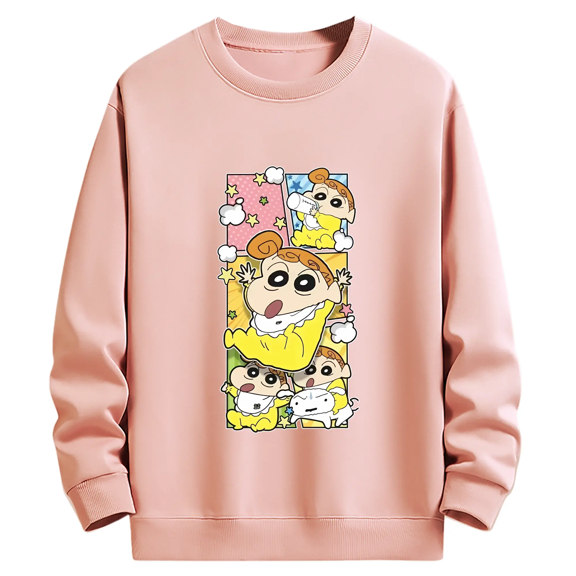 クレヨンしんちゃん グッズ 野原 ひまわり - 薄手 クルーネック スウェット 裏毛260g · ポリエステル 春秋向け カジュアル 男女兼用 · トレーナー デイリー スポーツ 散歩に最適