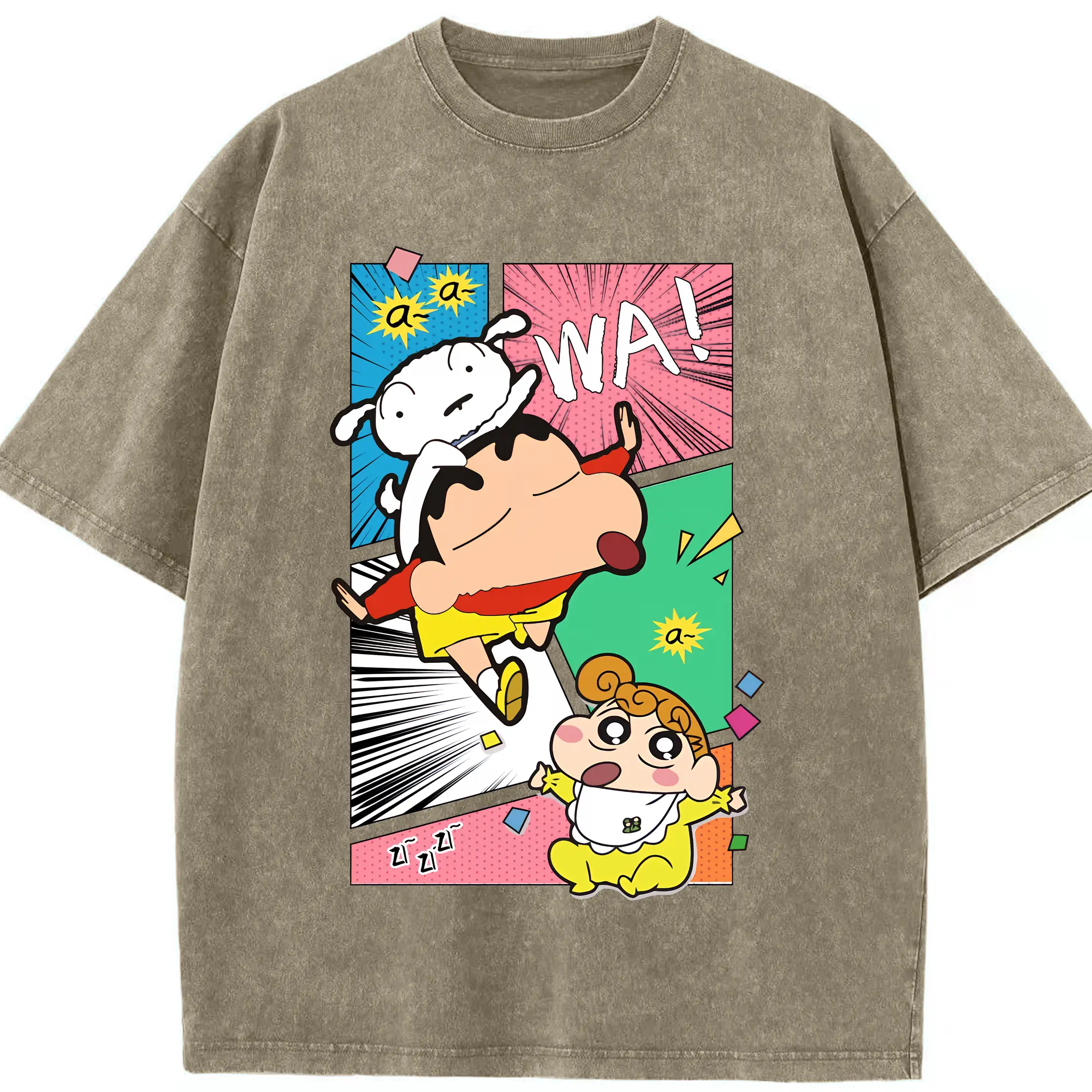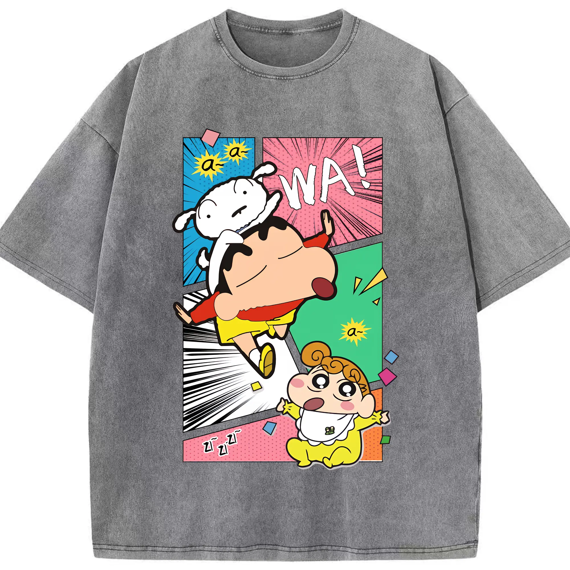 クレヨンしんちゃん グッズ 野原 ひまわり - 綿100% ヴィンテージ風 半袖Tシャツ ・ 背面プリント ・ 柔らか肌触り ・ 通気性 快適 ・ スポーツ カジュアル 外出用