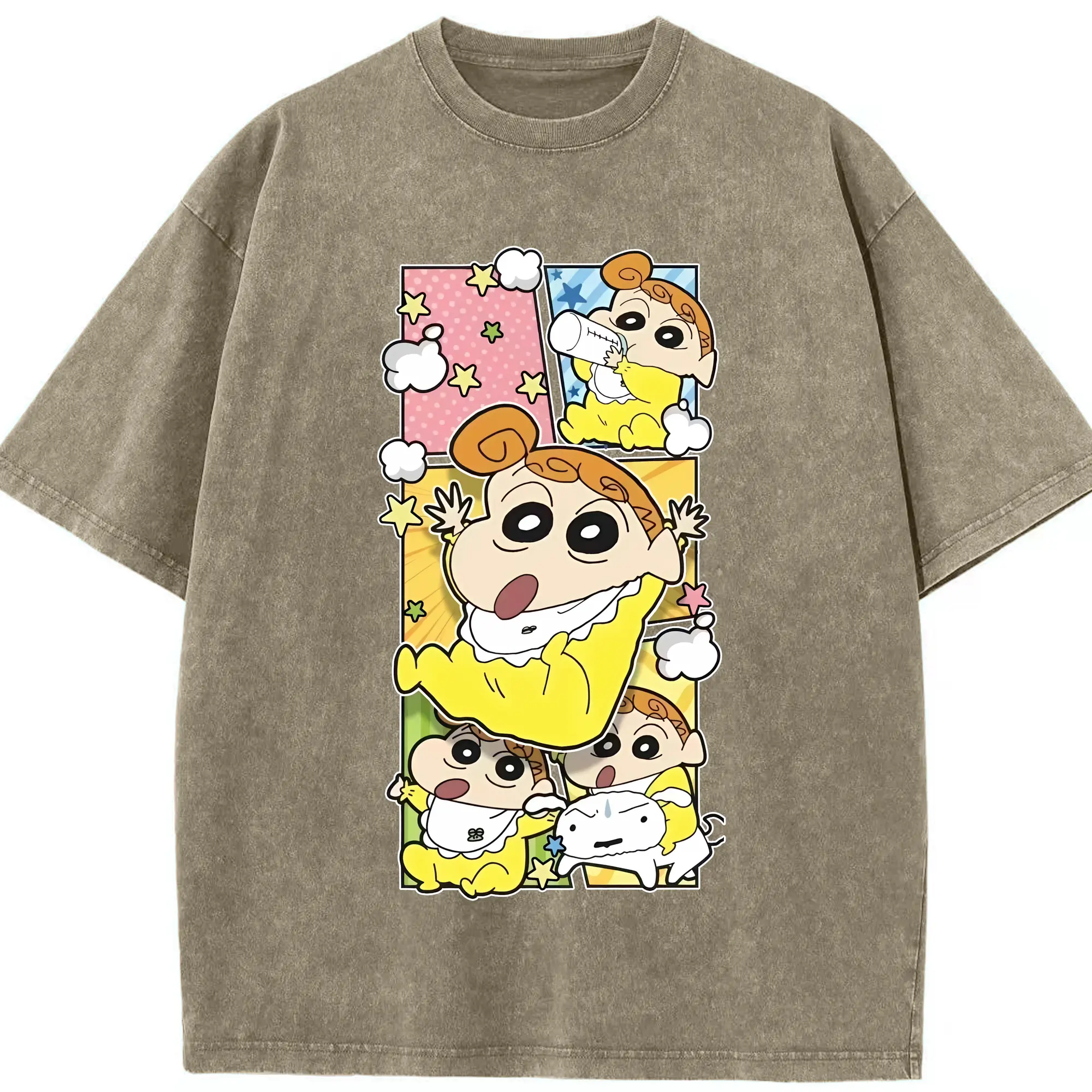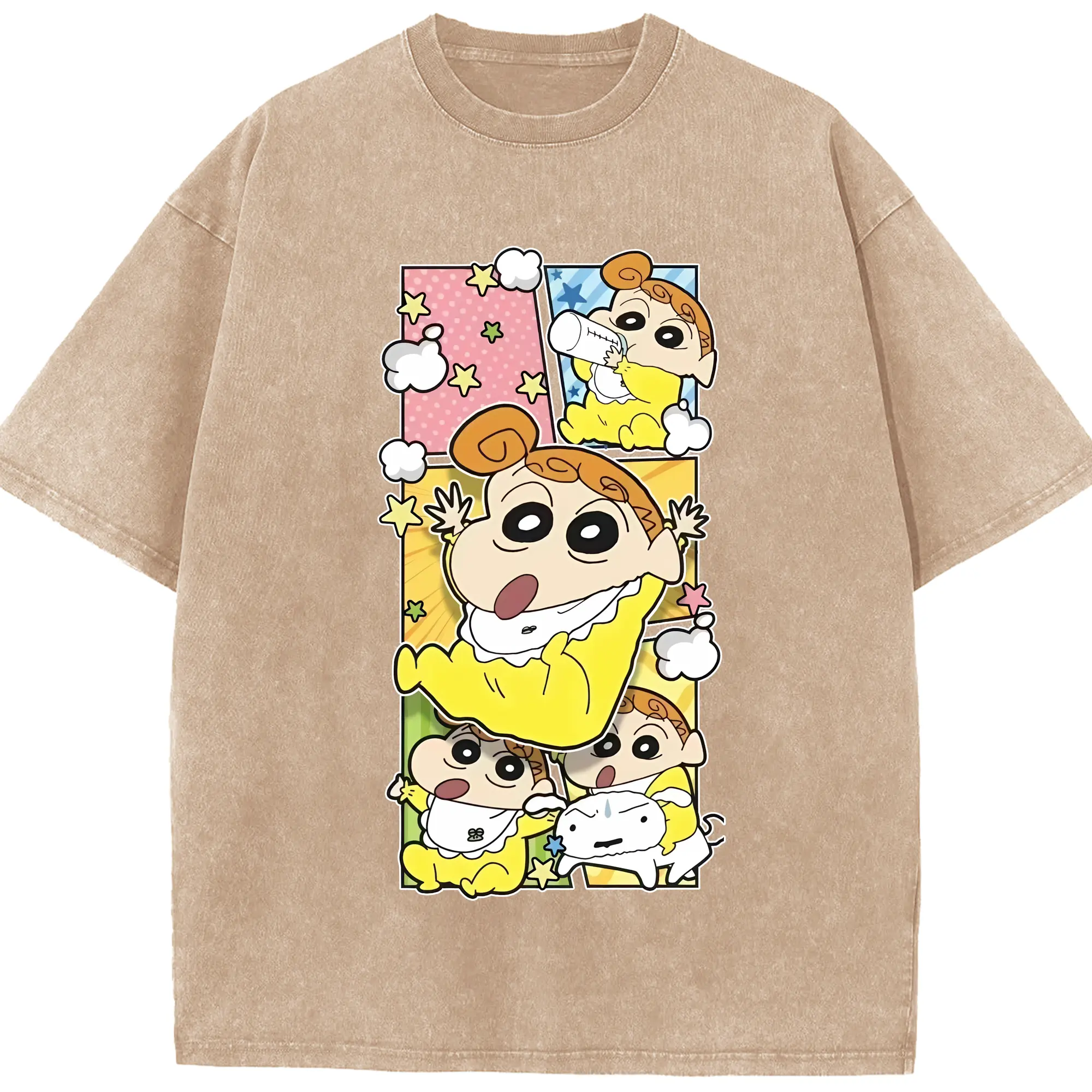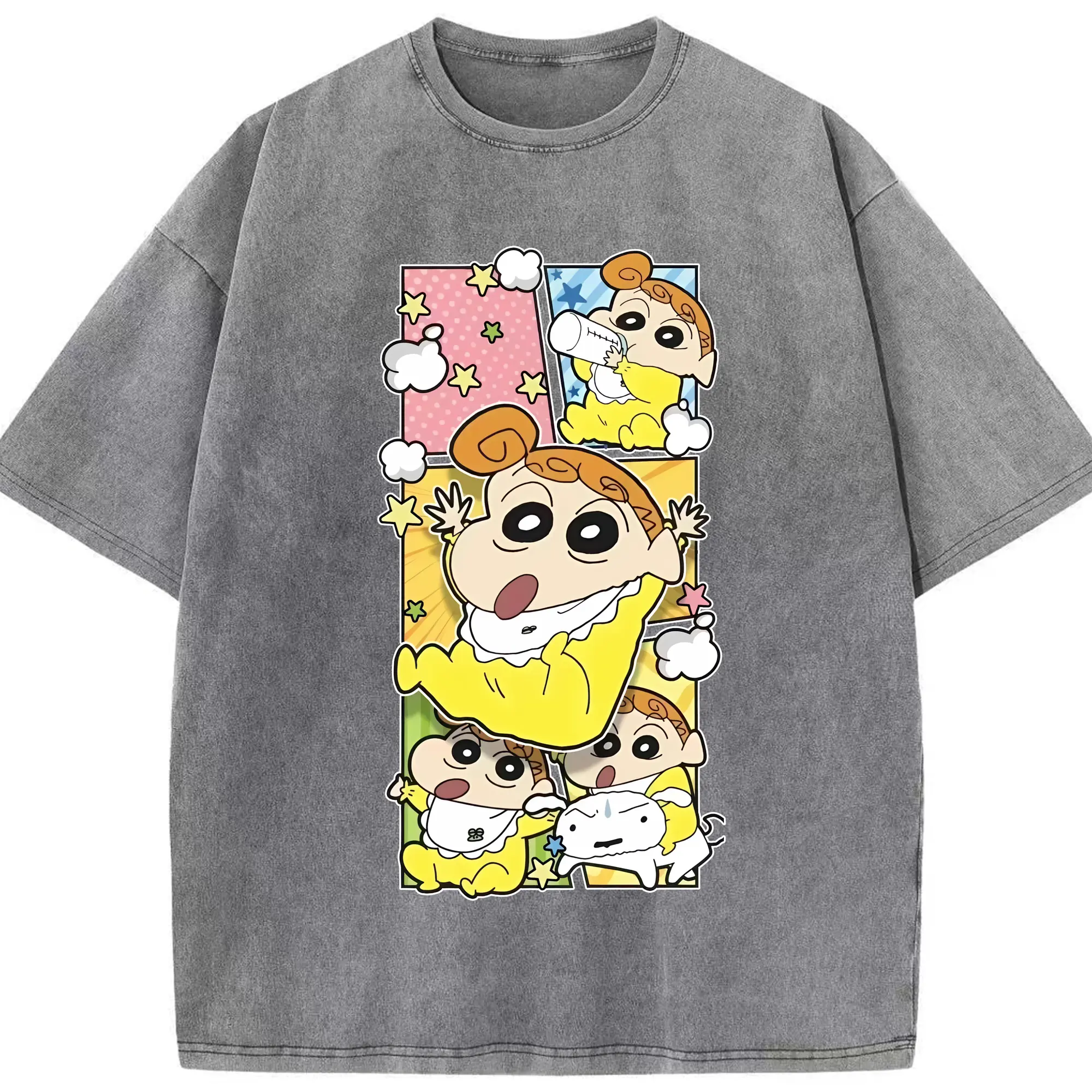 クレヨンしんちゃん グッズ 野原 ひまわり - 綿100% ヴィンテージ風 半袖Tシャツ ・ 背面プリント ・ 柔らか肌触り ・ 通気性 快適 ・ スポーツ カジュアル 外出用