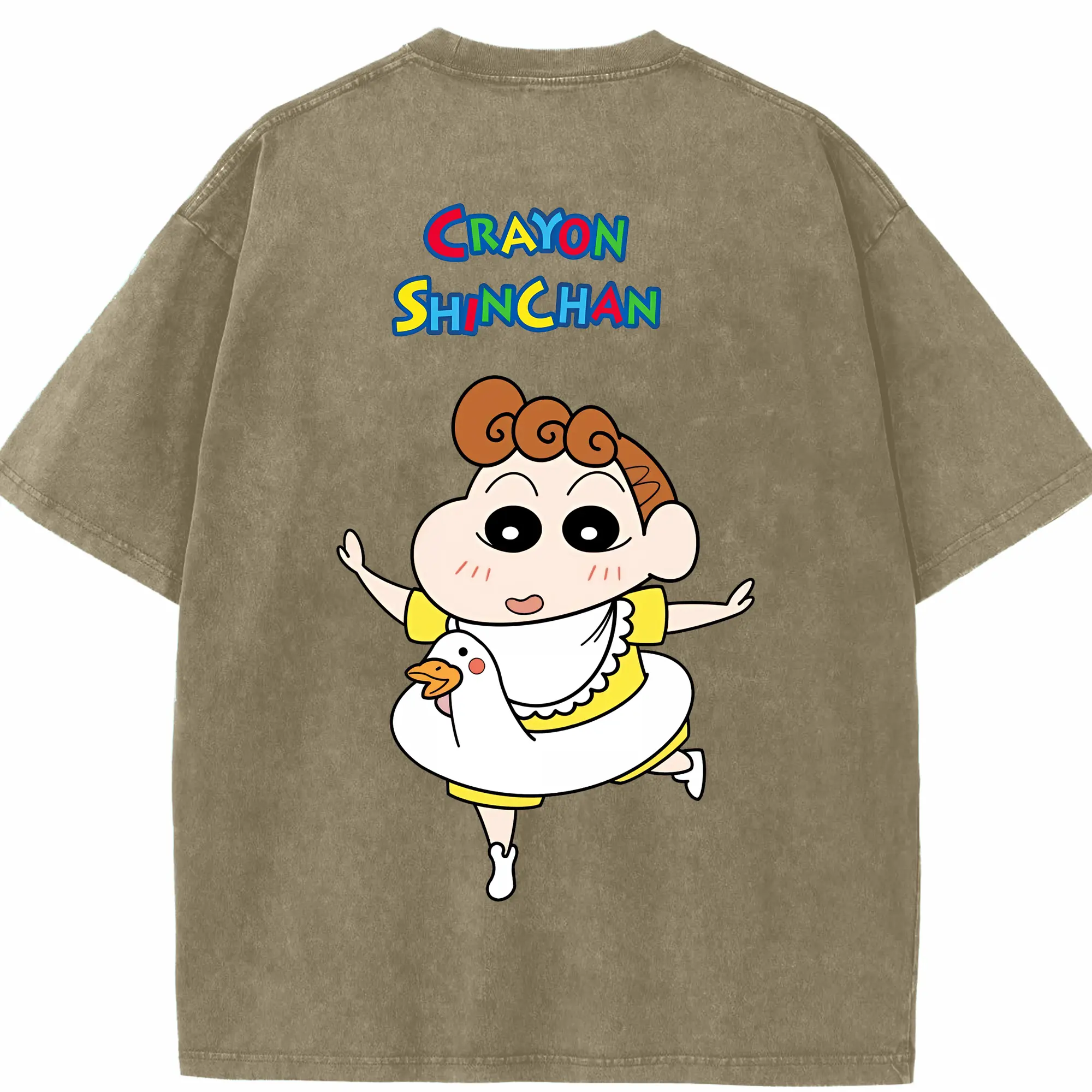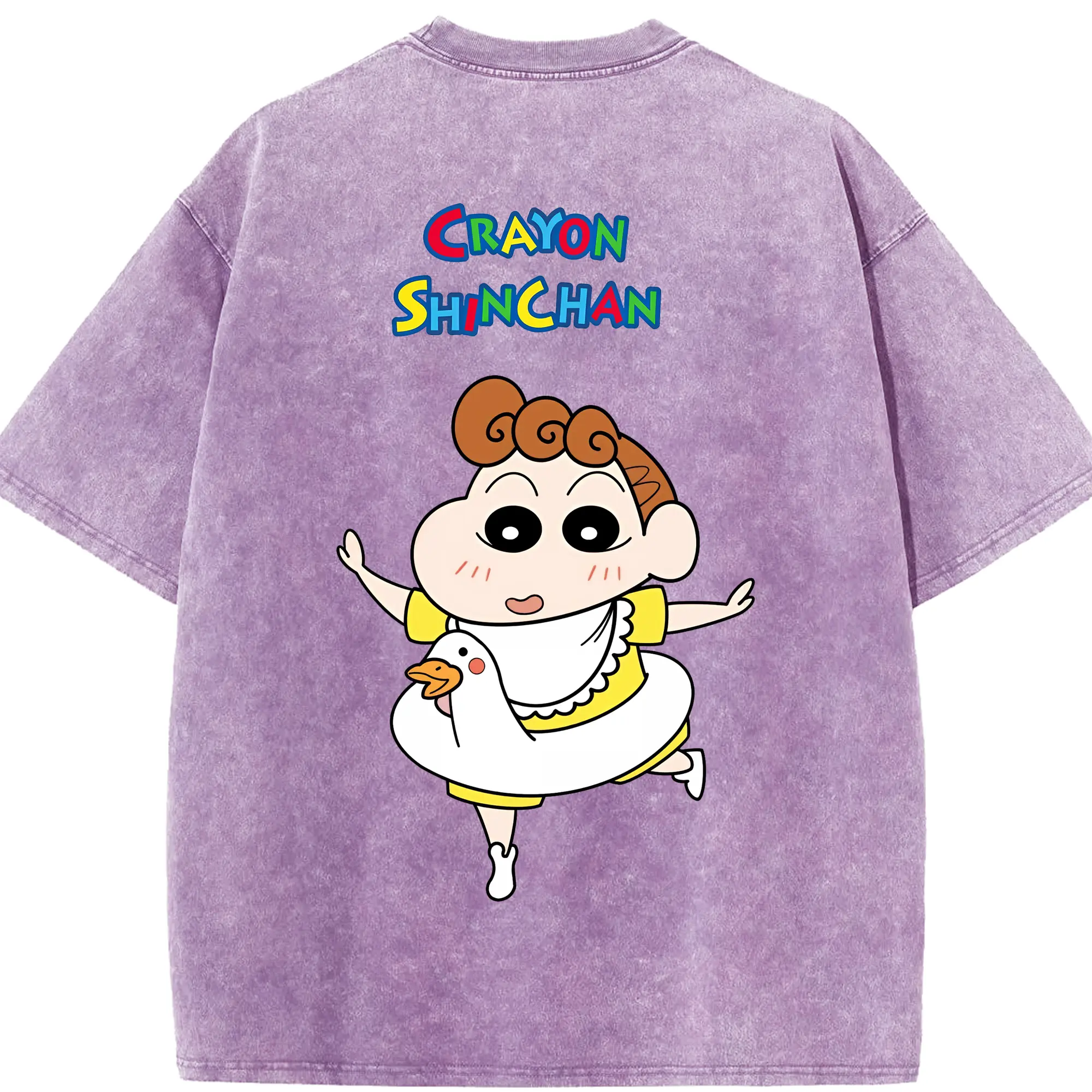 クレヨンしんちゃん グッズ 野原 ひまわり - 綿100% ヴィンテージ風 半袖Tシャツ ・ フロントプリント ・ 柔らか肌触り ・ 通気性 快適 ・ スポーツ カジュアル 外出用