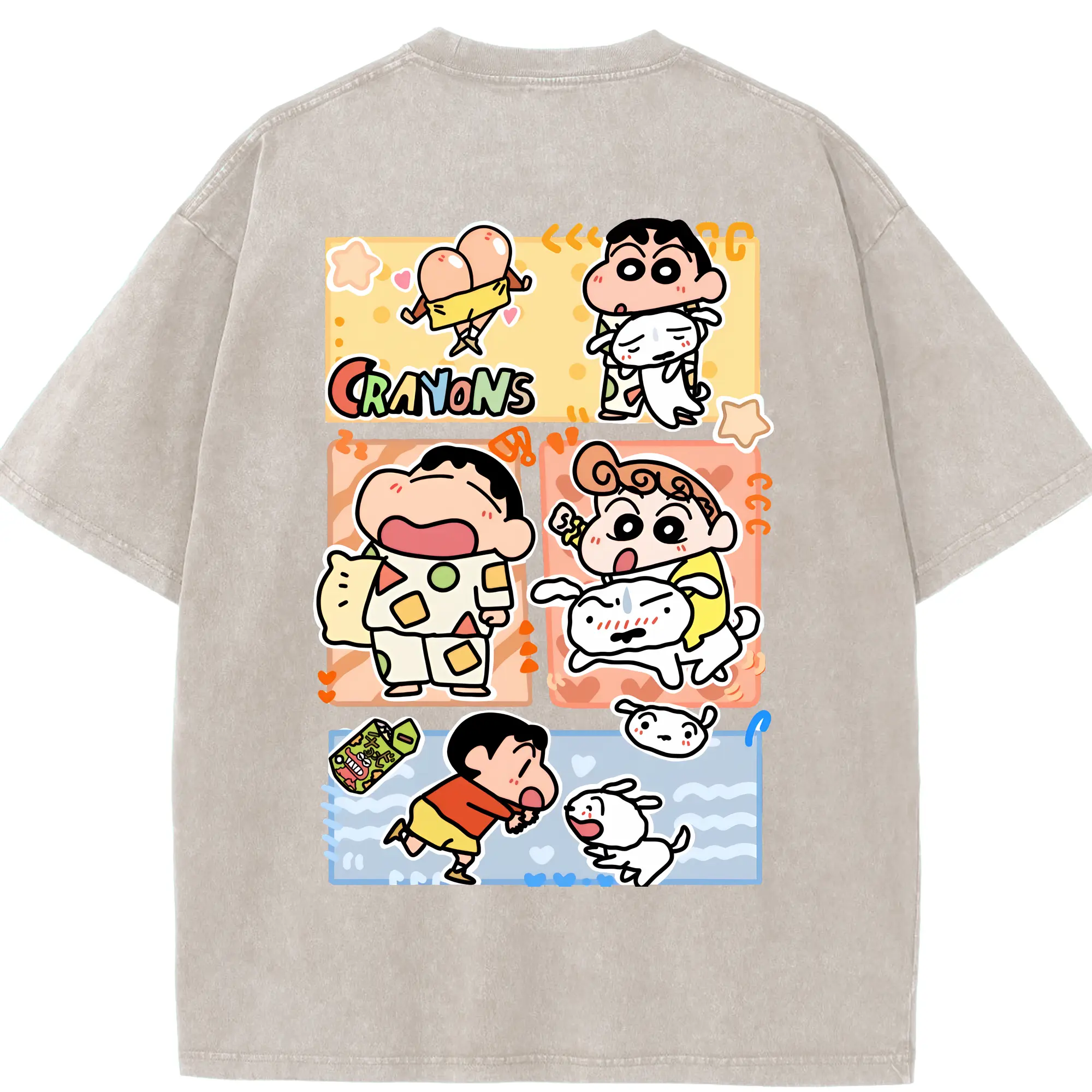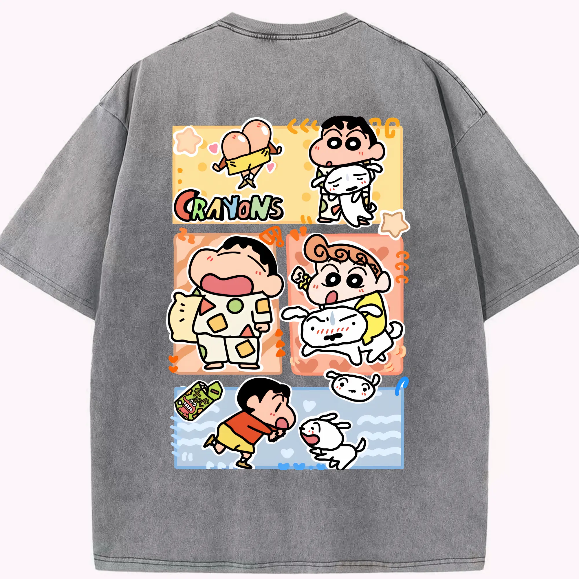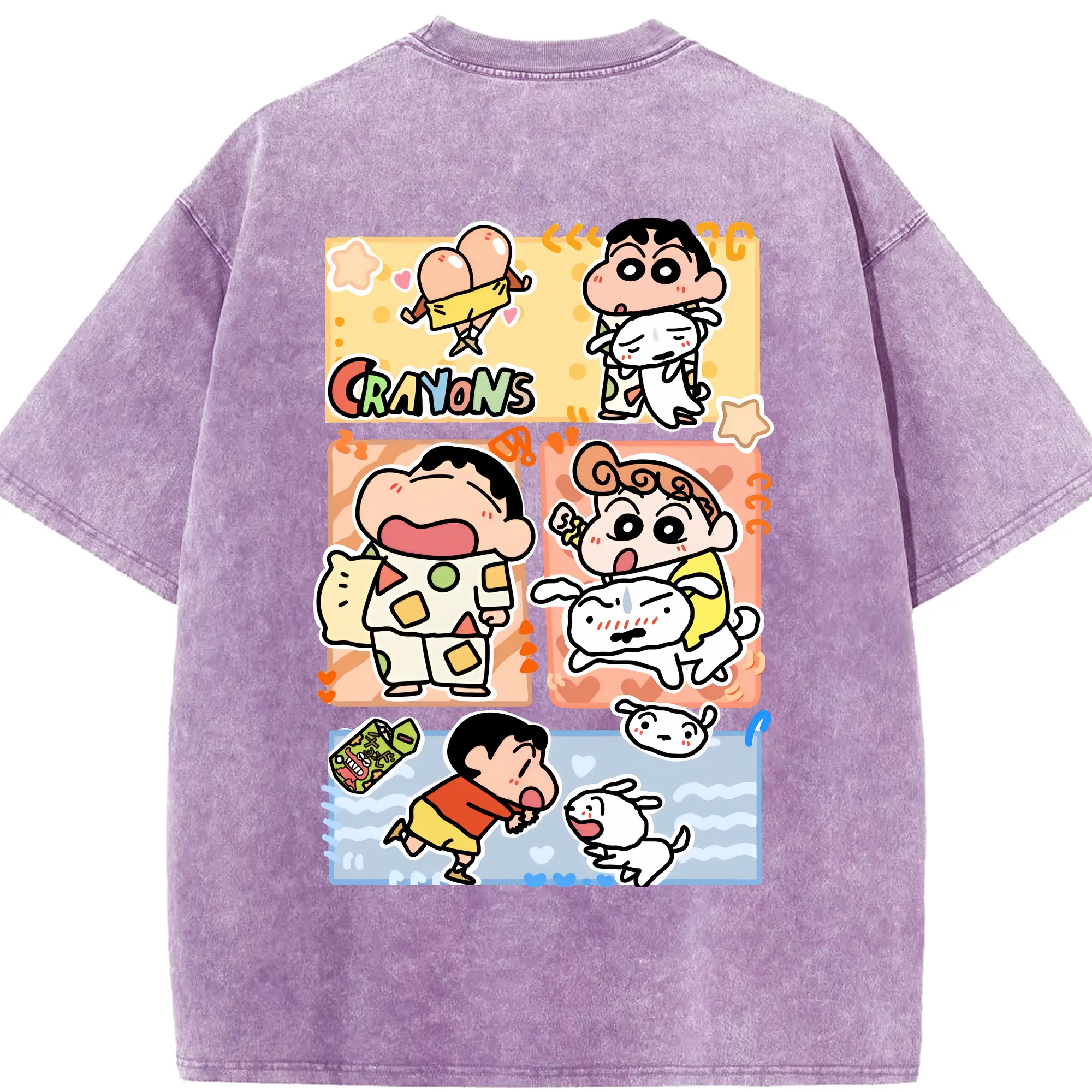 クレヨンしんちゃん グッズ 野原 ひまわり - 綿100% ヴィンテージ風 半袖Tシャツ ・ 背面プリント ・ 柔らか肌触り ・ 通気性 快適 ・ スポーツ カジュアル 外出用