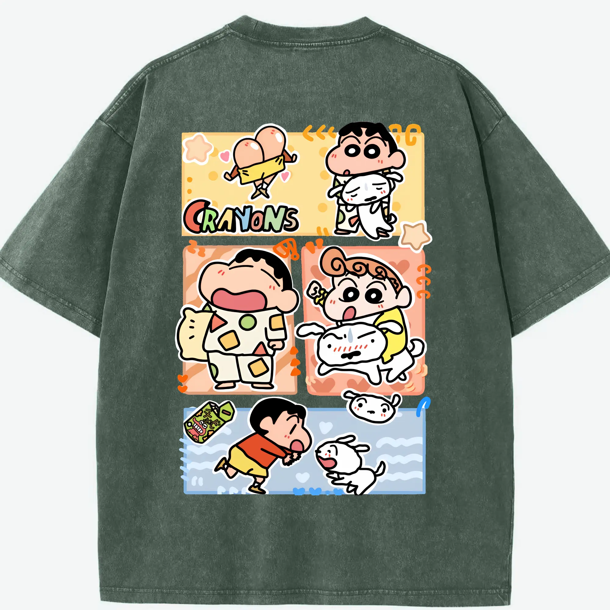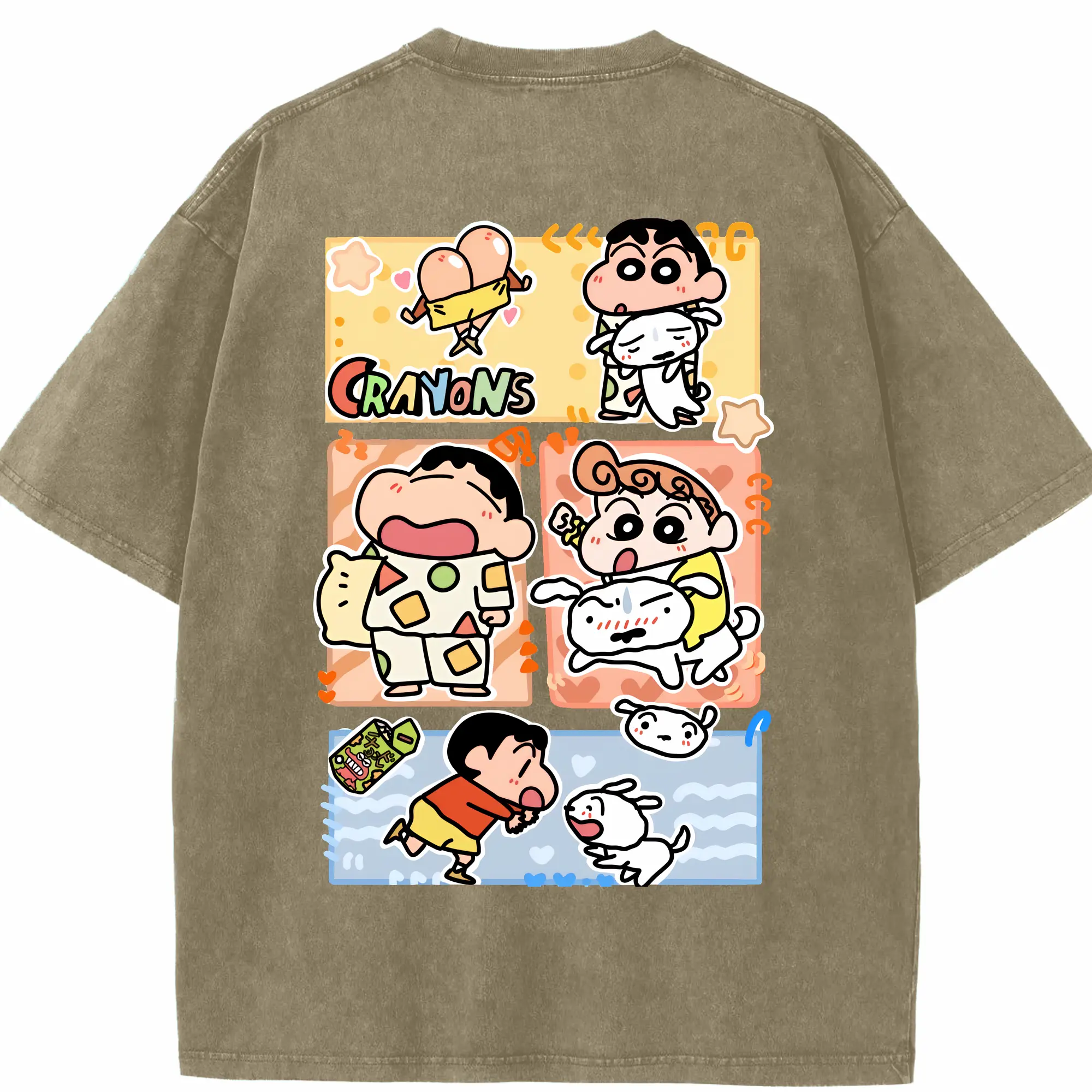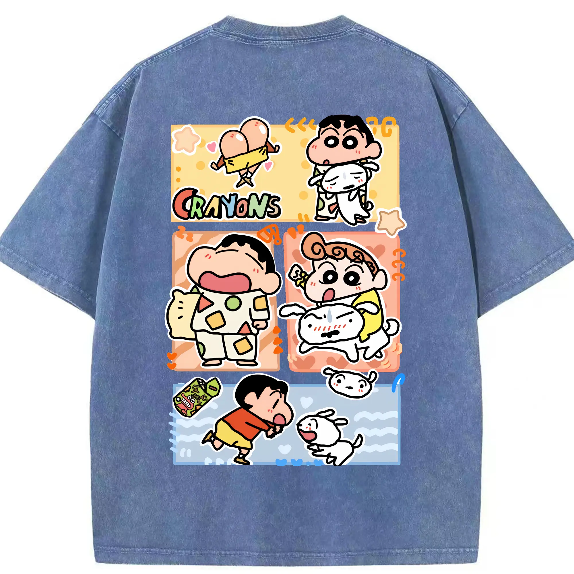 クレヨンしんちゃん グッズ 野原 ひまわり - 綿100% ヴィンテージ風 半袖Tシャツ ・ 背面プリント ・ 柔らか肌触り ・ 通気性 快適 ・ スポーツ カジュアル 外出用