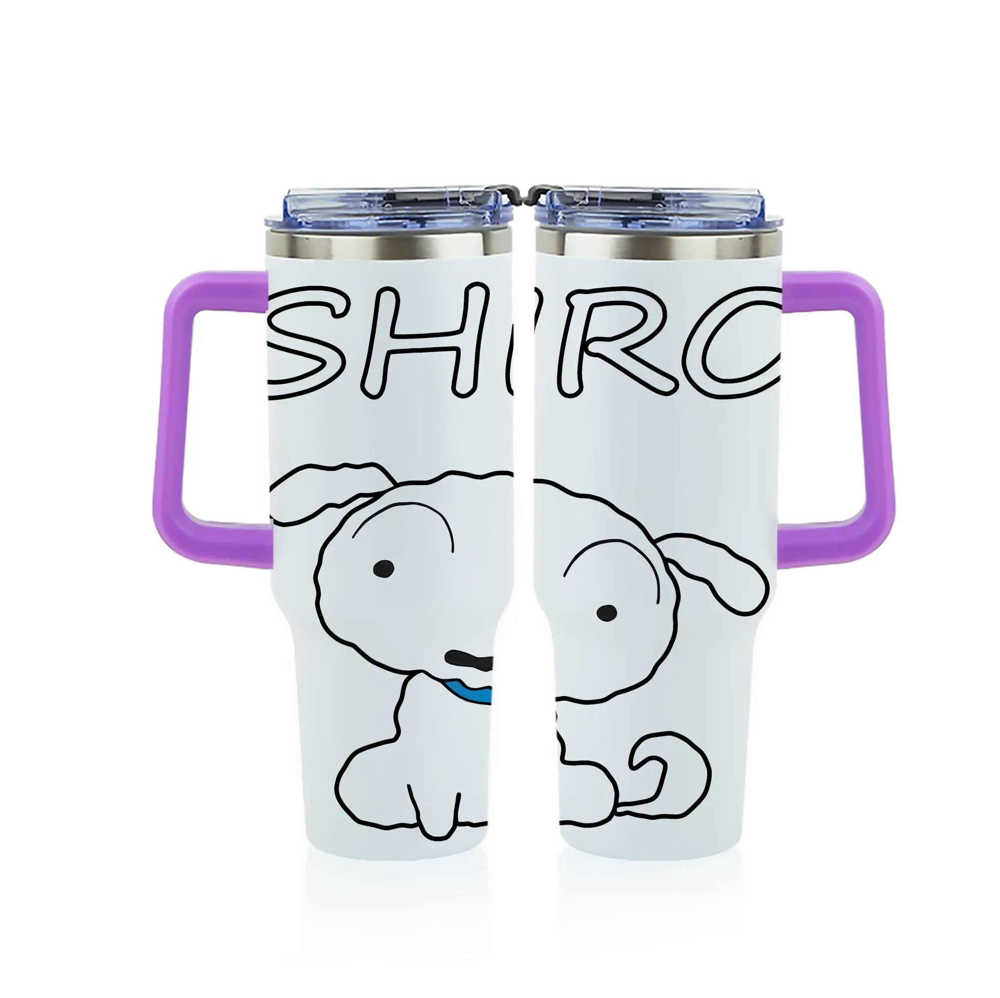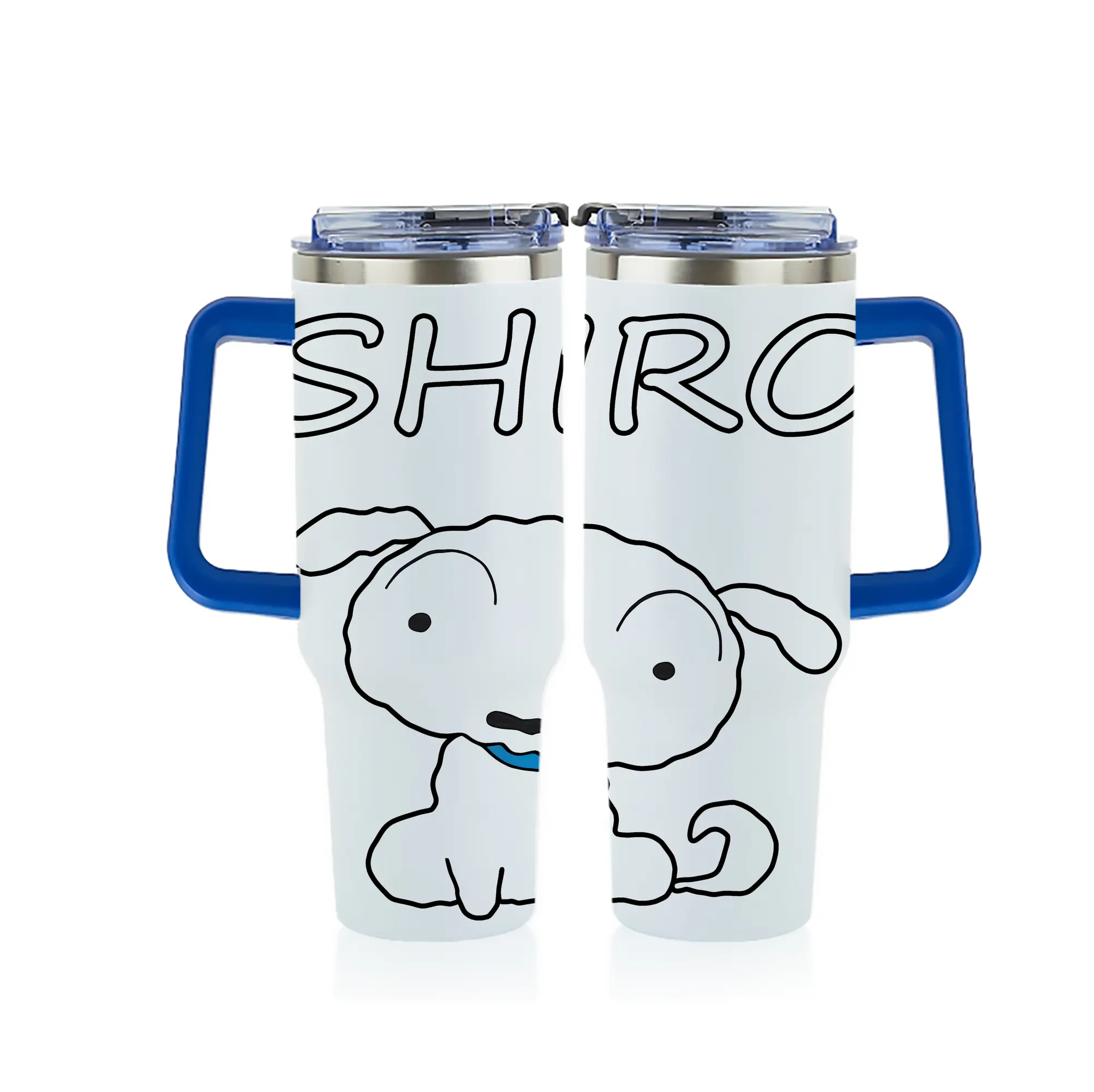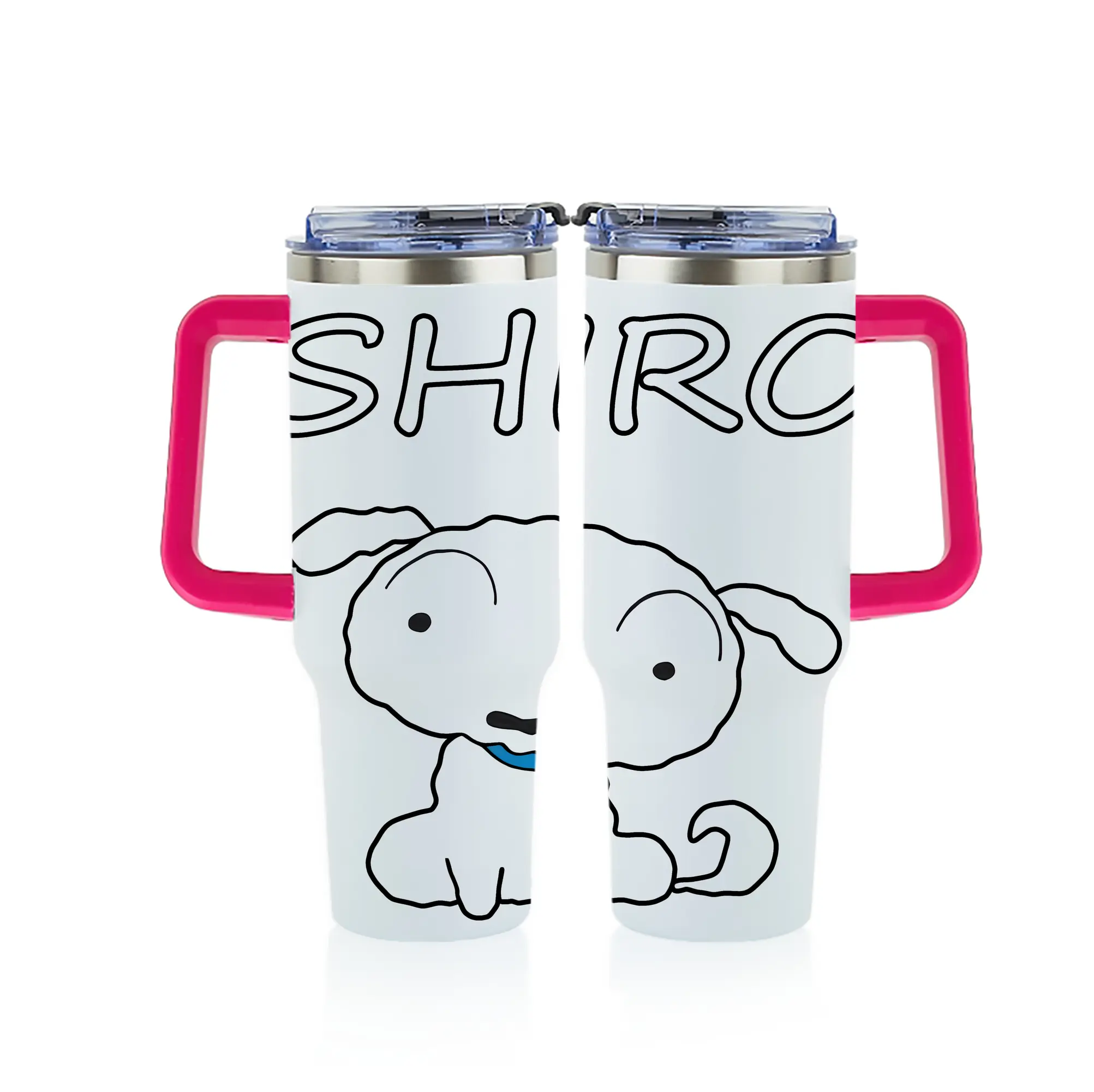 クレヨンしんちゃん グッズ シロ - 1200mL フルプリント車用タンブラー ・ 304ステンレス 内側 ・ 201ステンレス 外側 ・ 保温 保冷 ・ 通勤 ドライブ アウトドア用