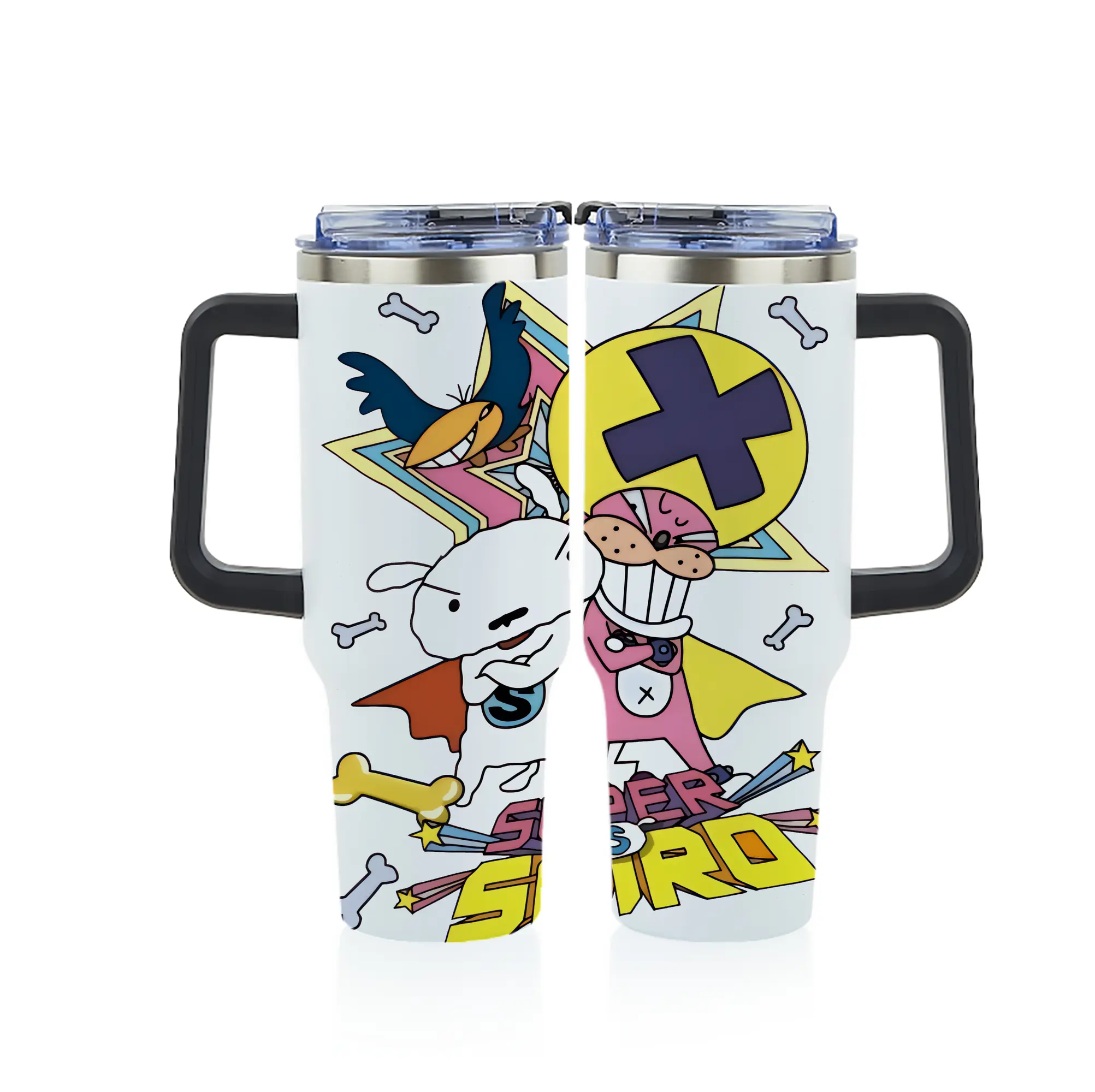 クレヨンしんちゃん グッズ シロ - 1200mL フルプリント車用タンブラー ・ 304ステンレス 内側 ・ 201ステンレス 外側 ・ 保温 保冷 ・ 通勤 ドライブ アウトドア用