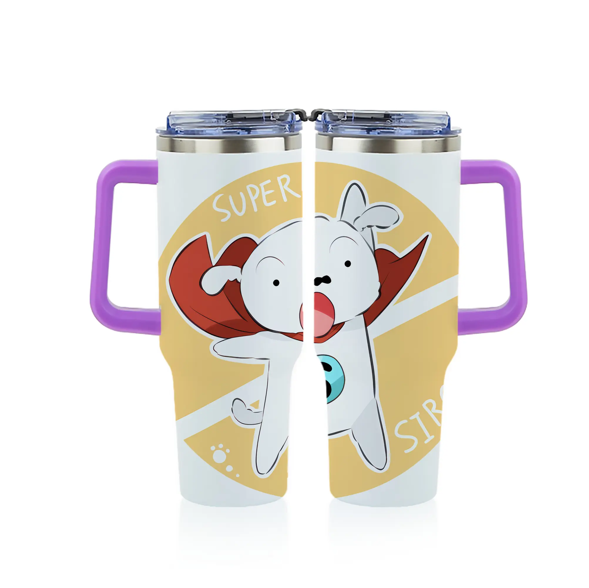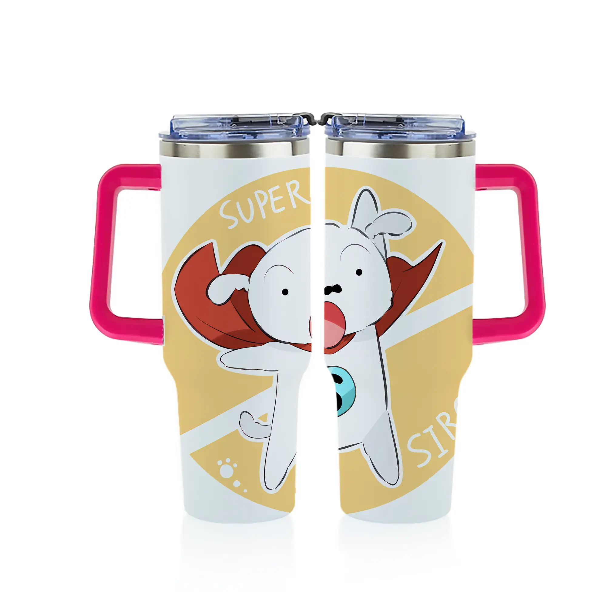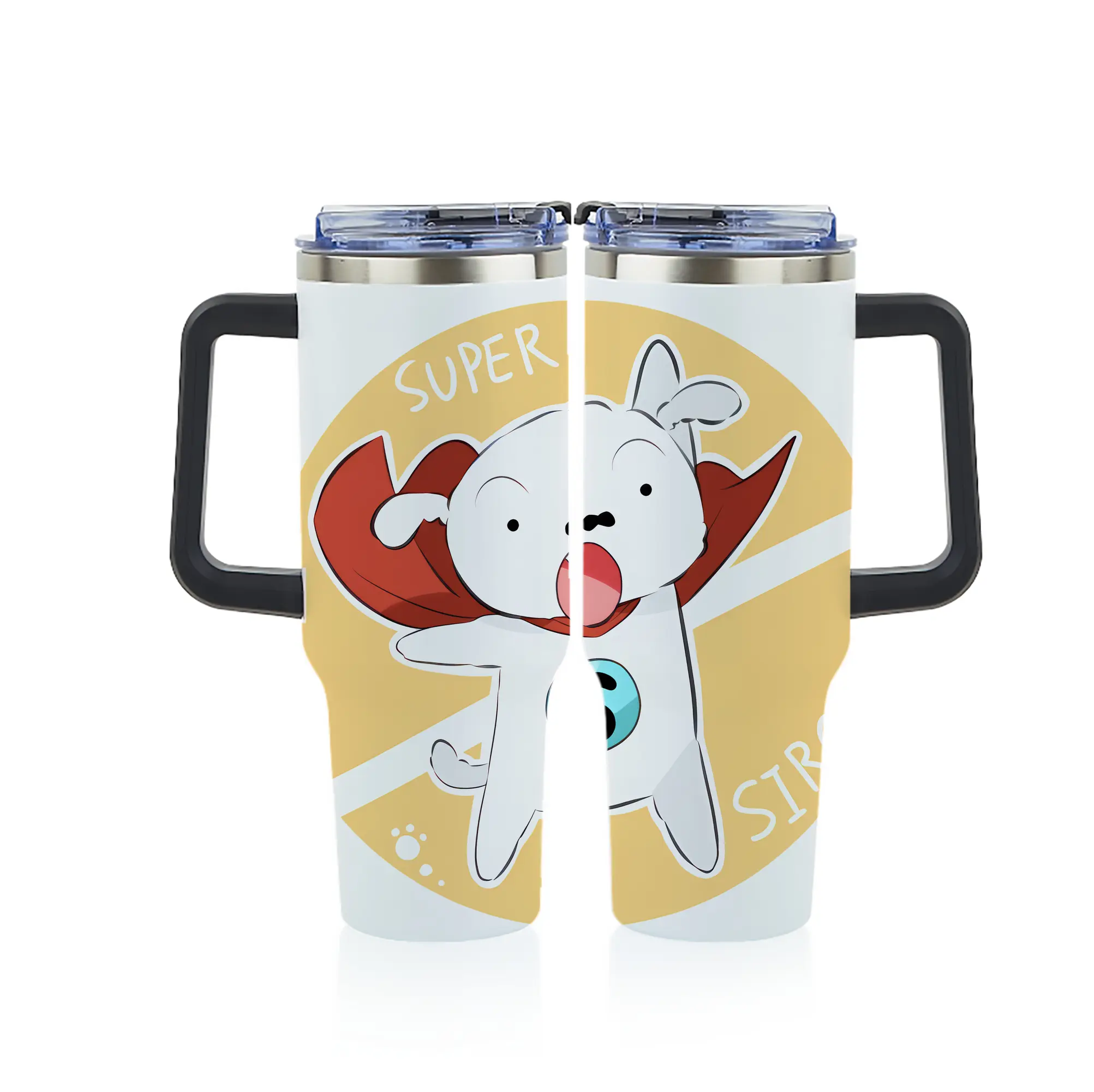 クレヨンしんちゃん グッズ シロ - 1200mL フルプリント車用タンブラー ・ 304ステンレス 内側 ・ 201ステンレス 外側 ・ 保温 保冷 ・ 通勤 ドライブ アウトドア用