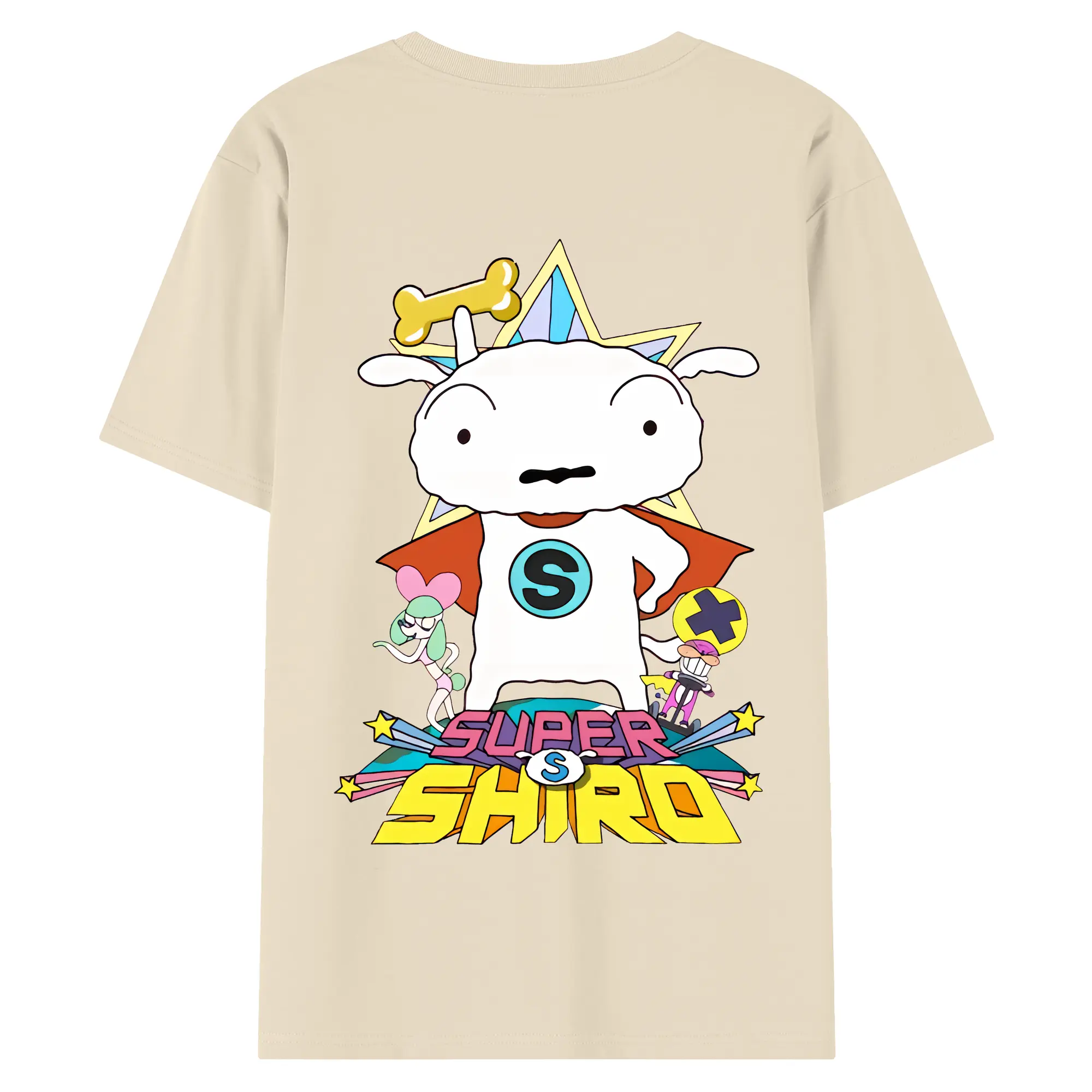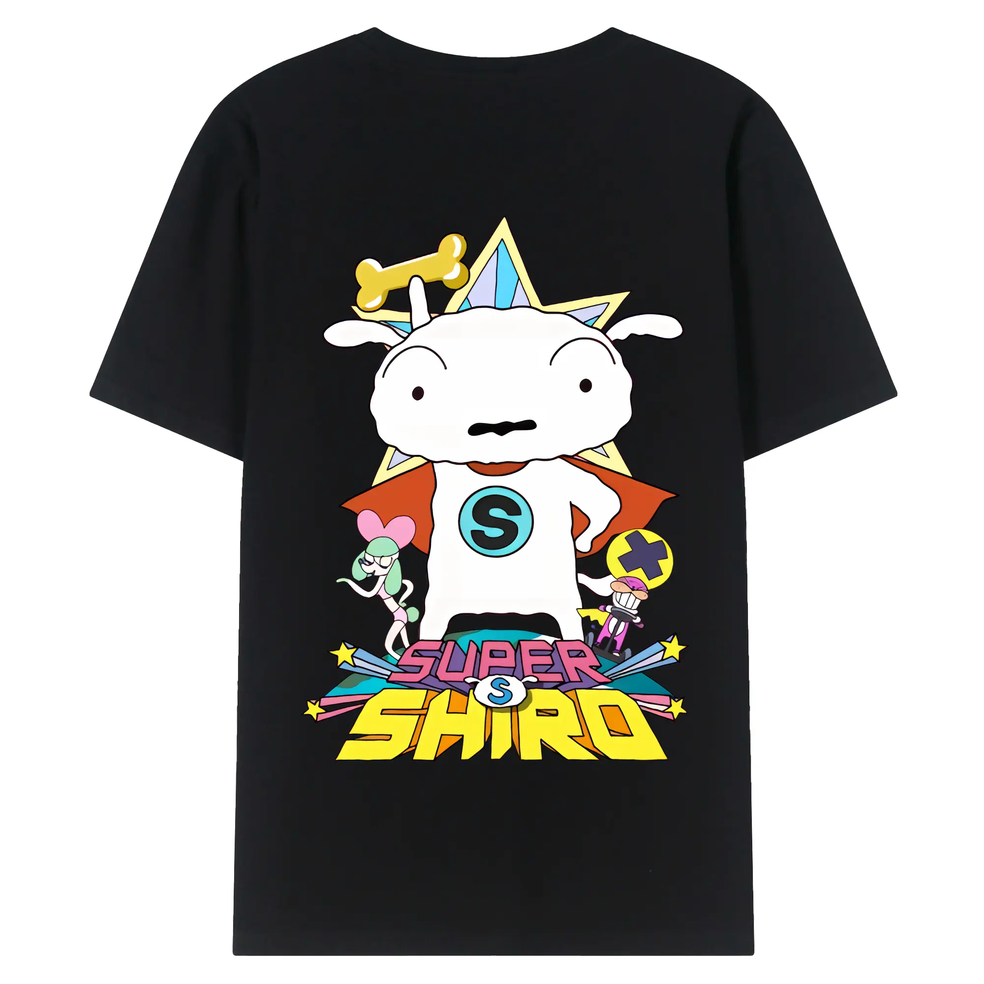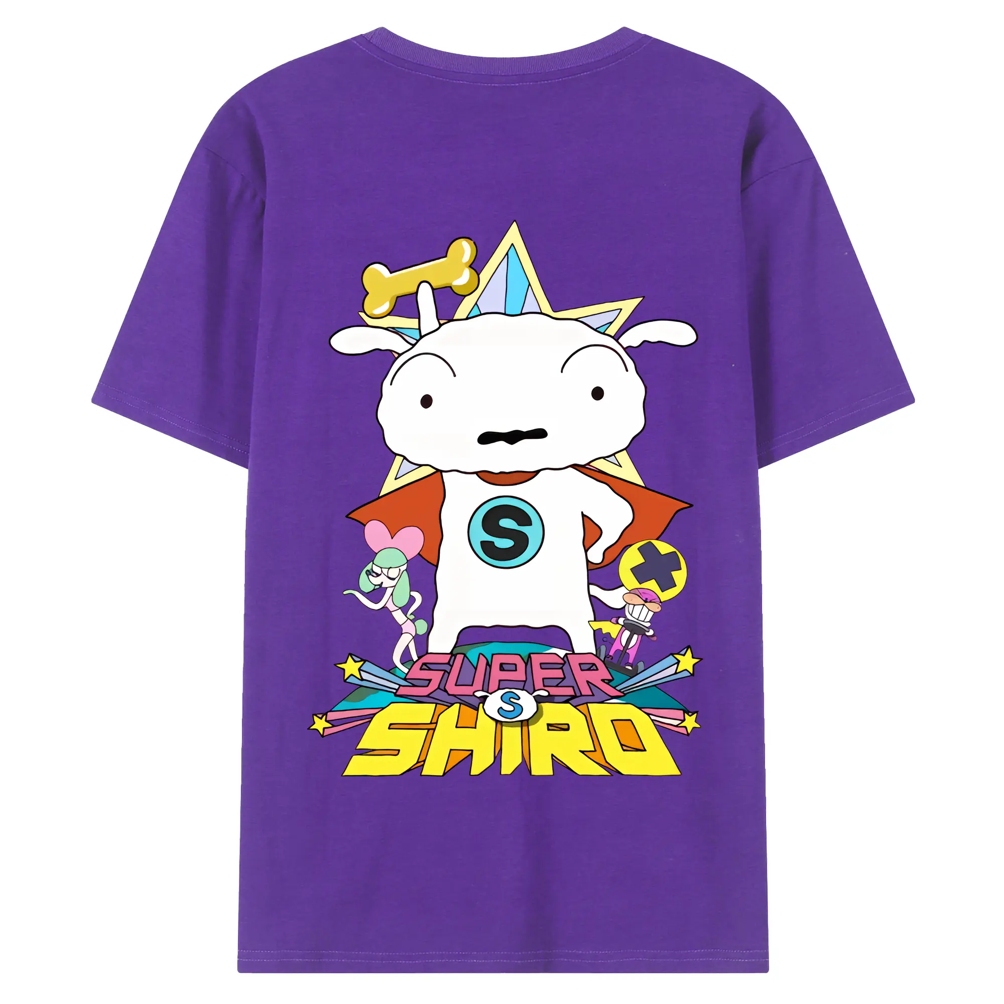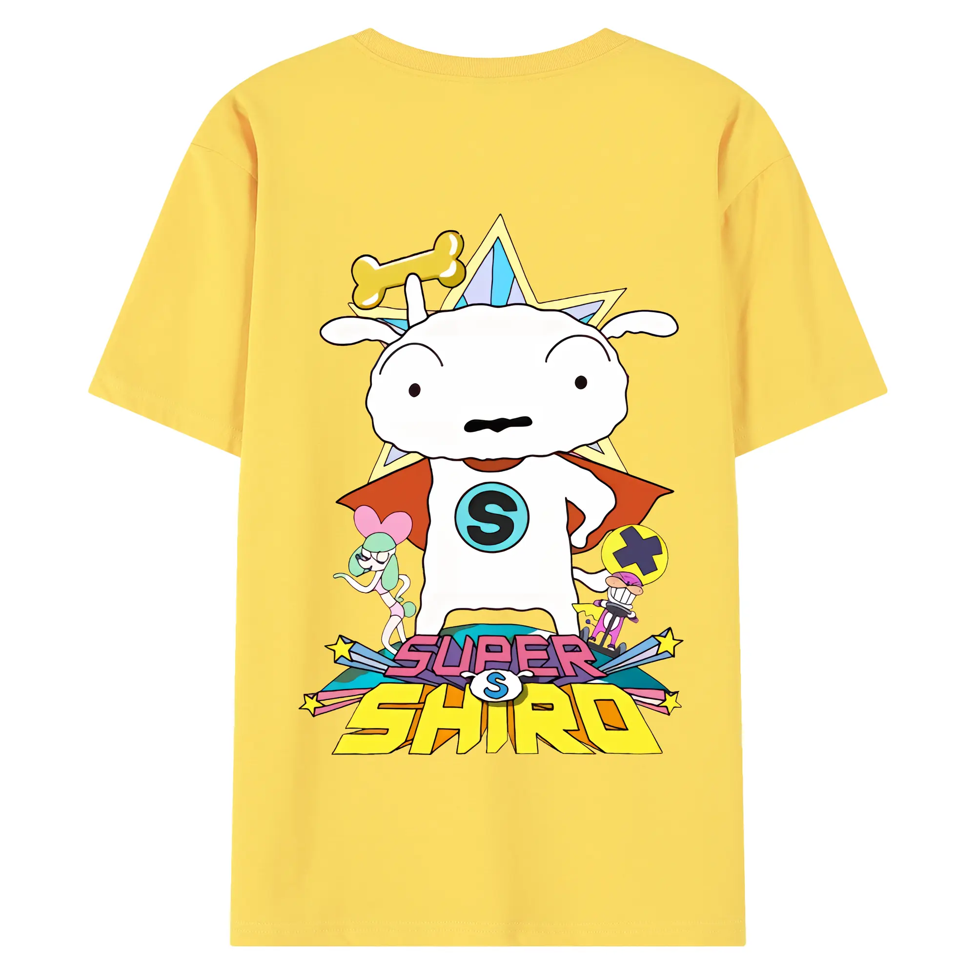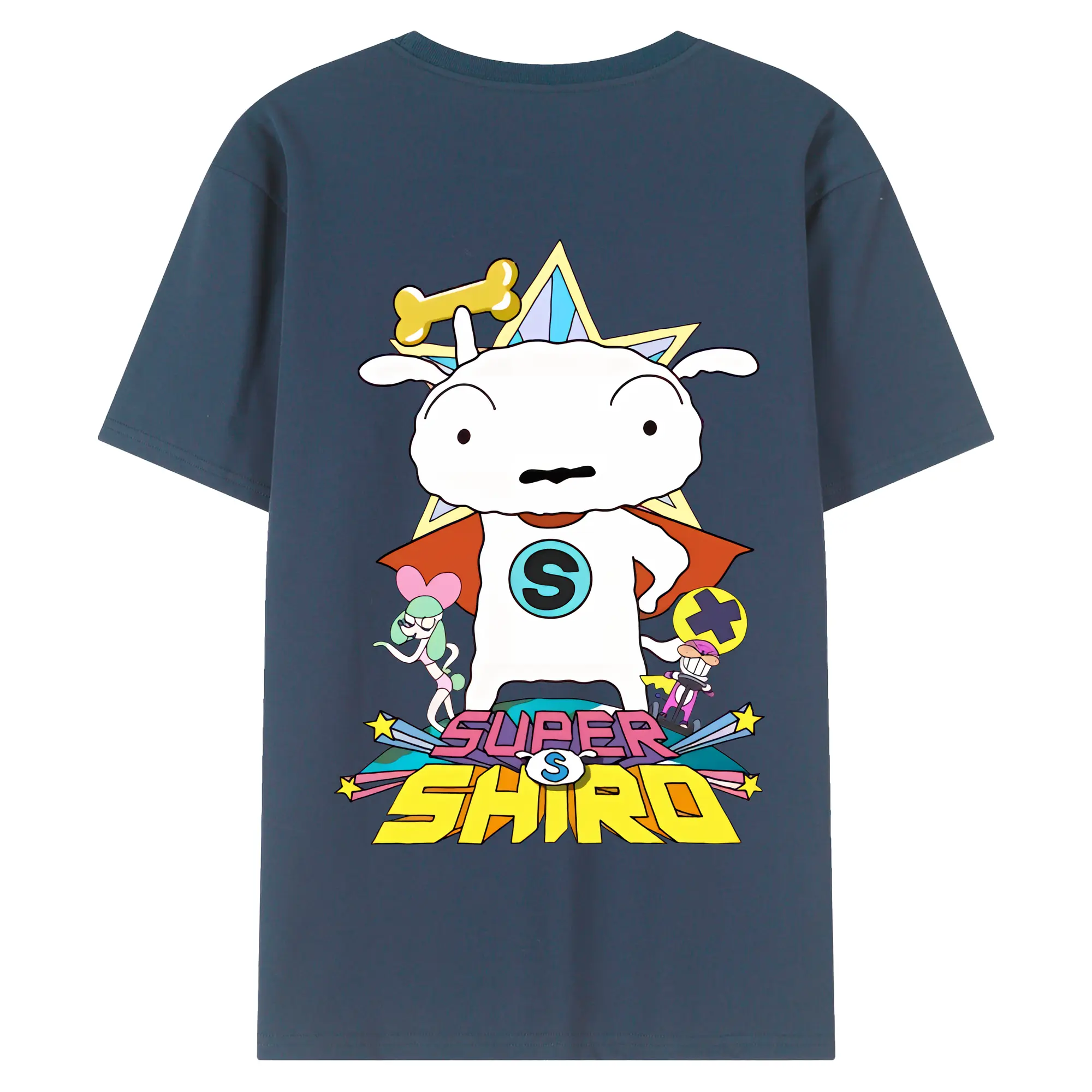 クレヨンしんちゃん グッズ シロ - 綿100% ヴィンテージ風 半袖Tシャツ ・ 背面プリント ・ 柔らか肌触り ・ 通気性 快適 ・ スポーツ カジュアル 外出用