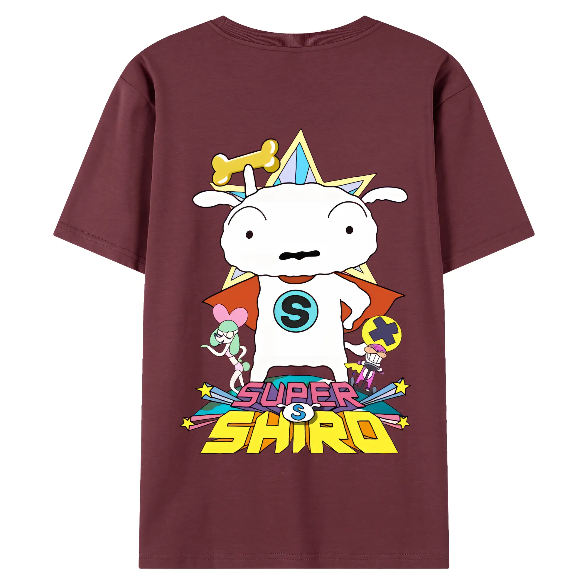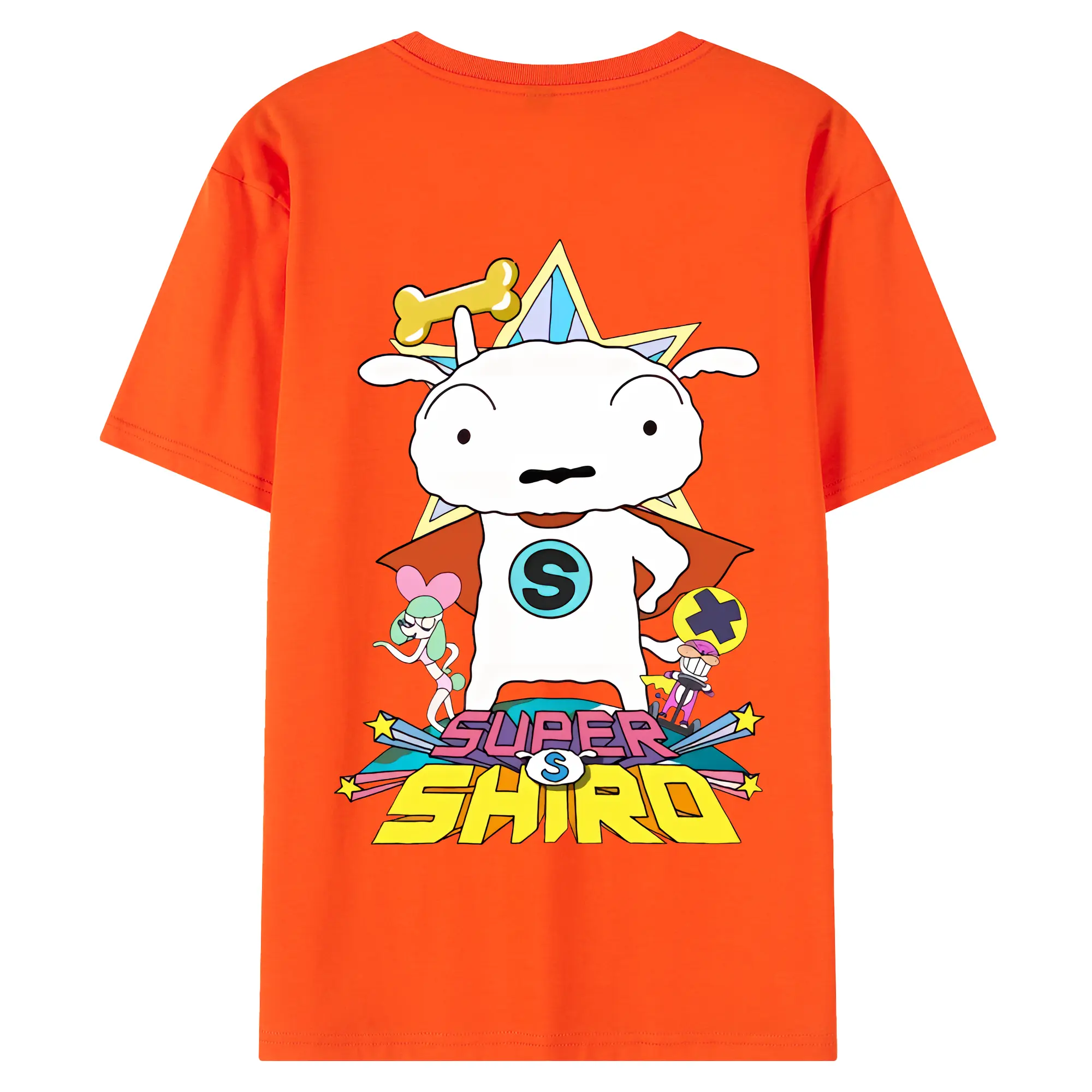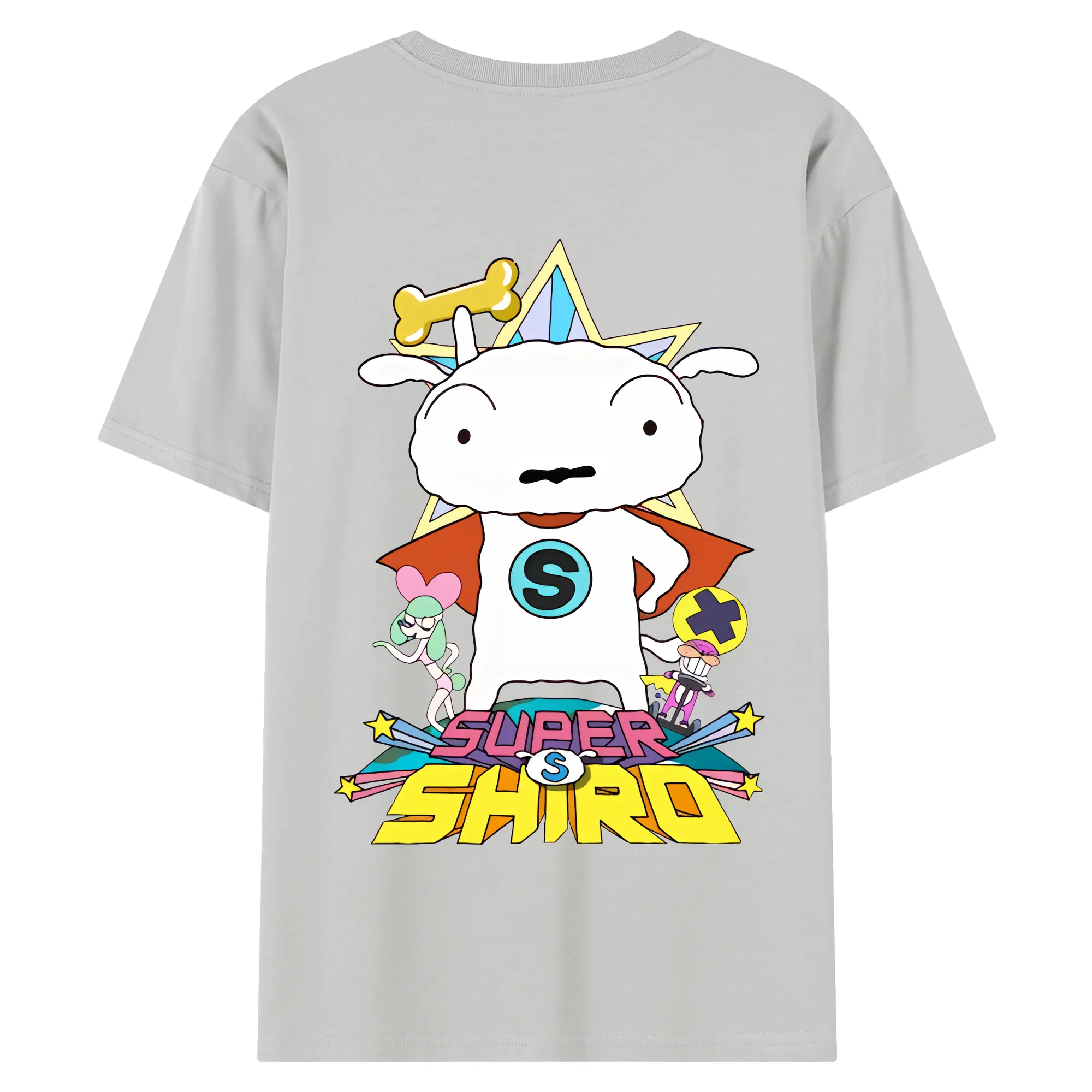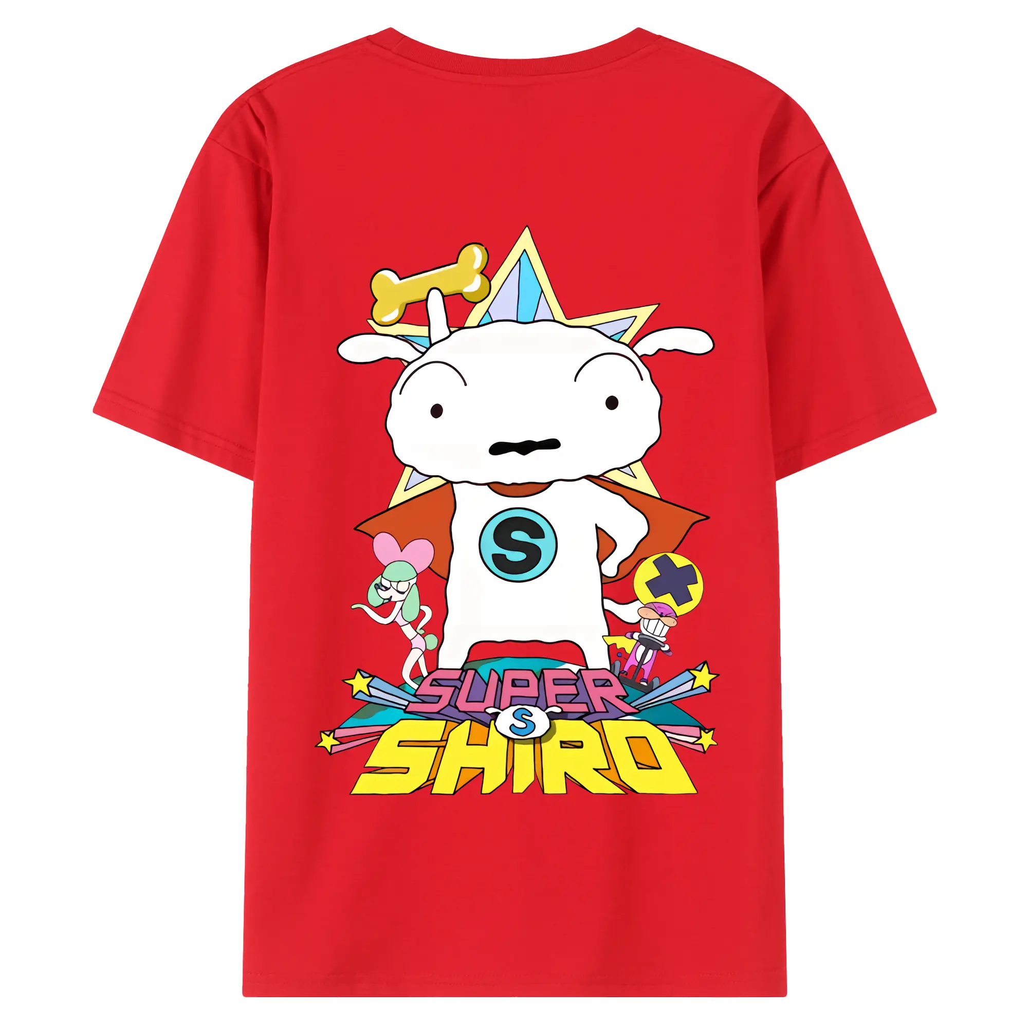 クレヨンしんちゃん グッズ シロ - 綿100% ヴィンテージ風 半袖Tシャツ ・ 背面プリント ・ 柔らか肌触り ・ 通気性 快適 ・ スポーツ カジュアル 外出用