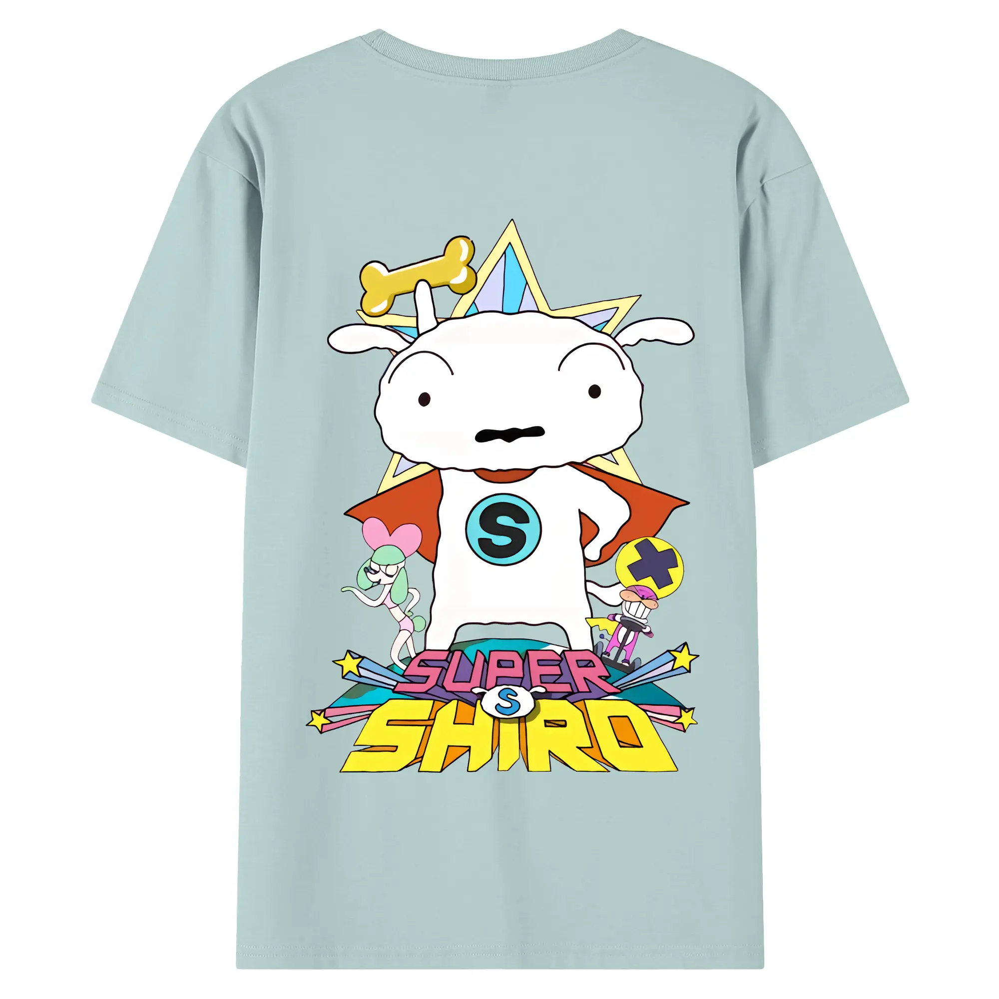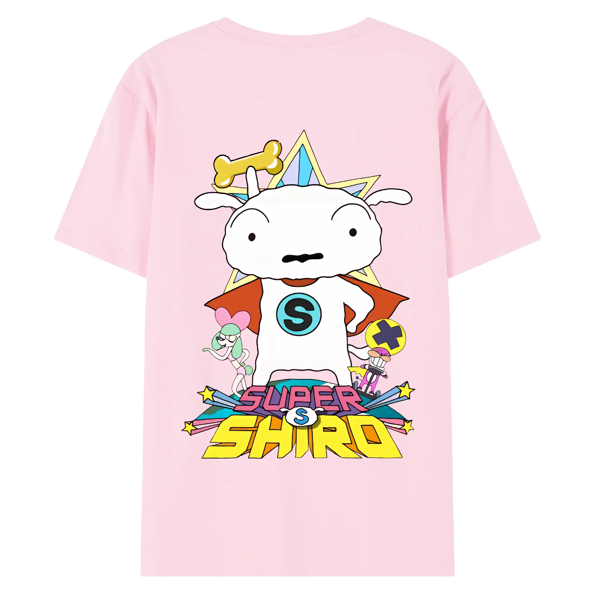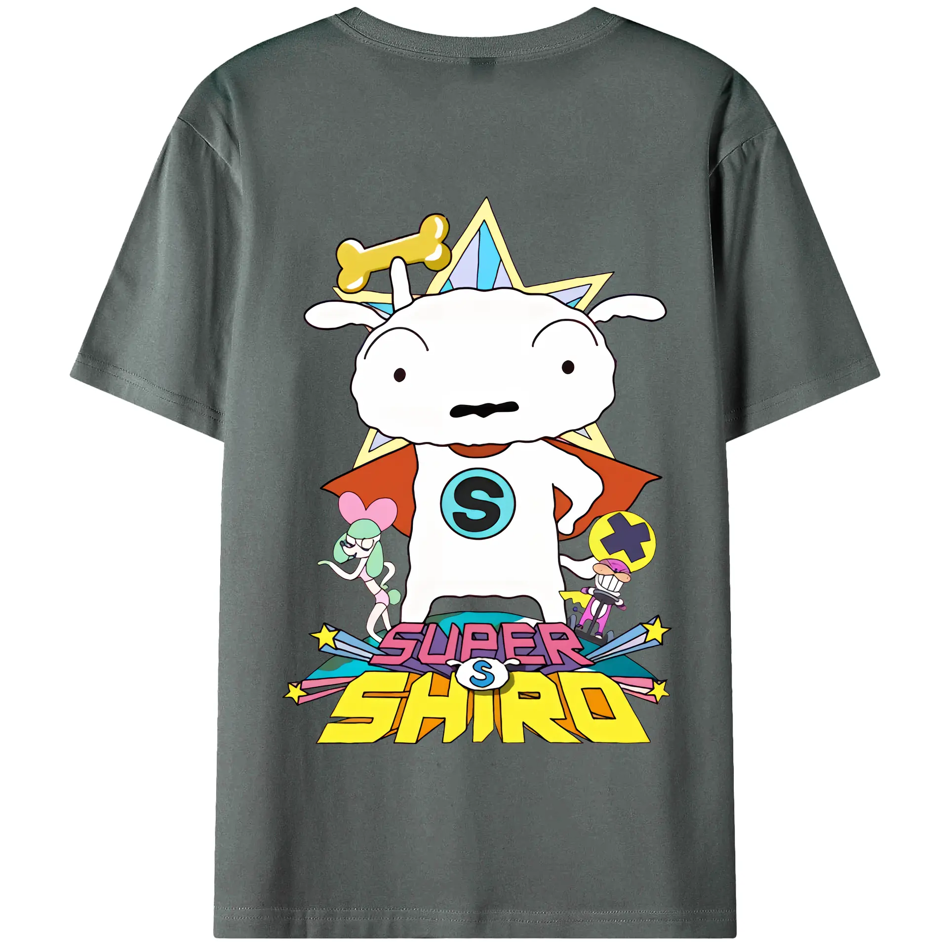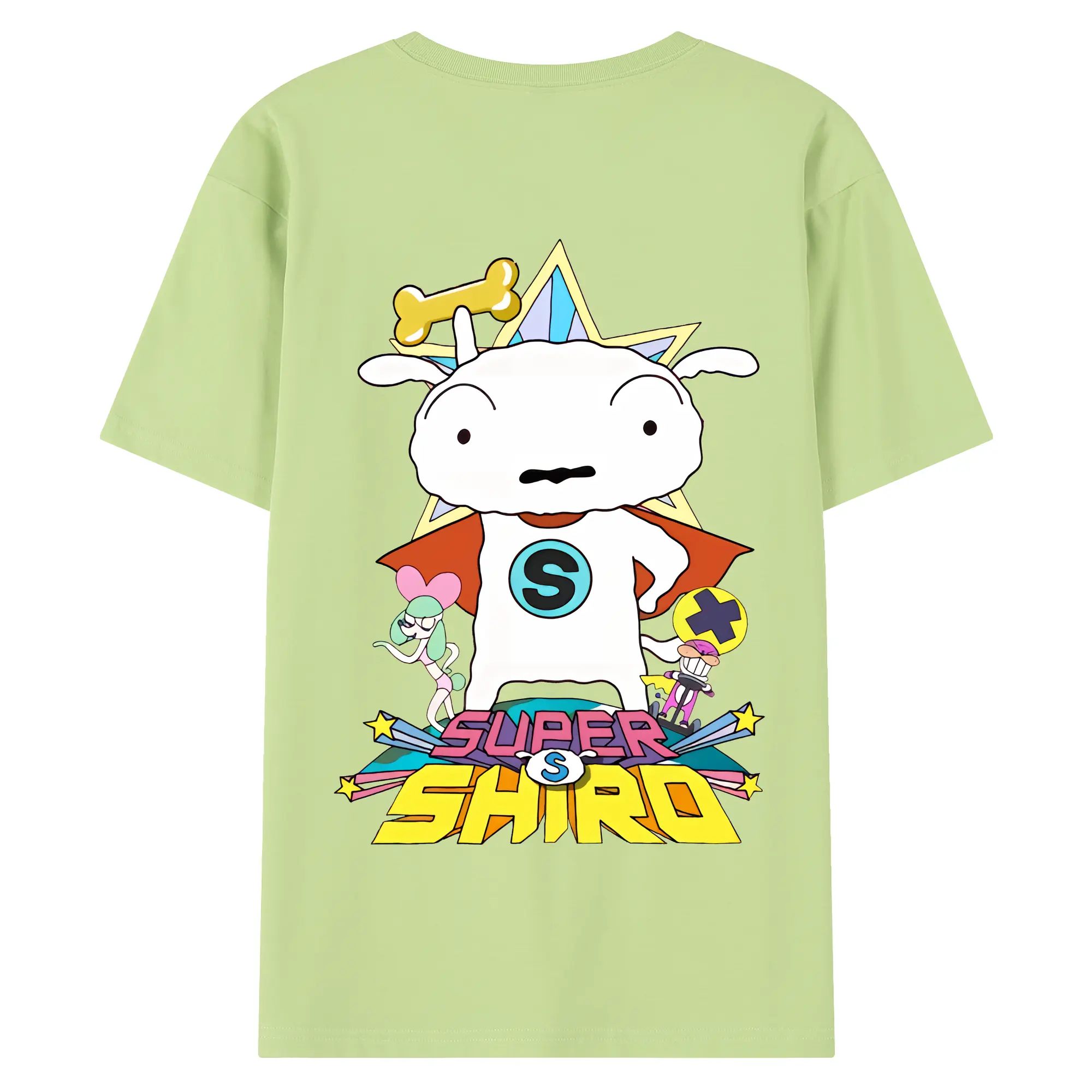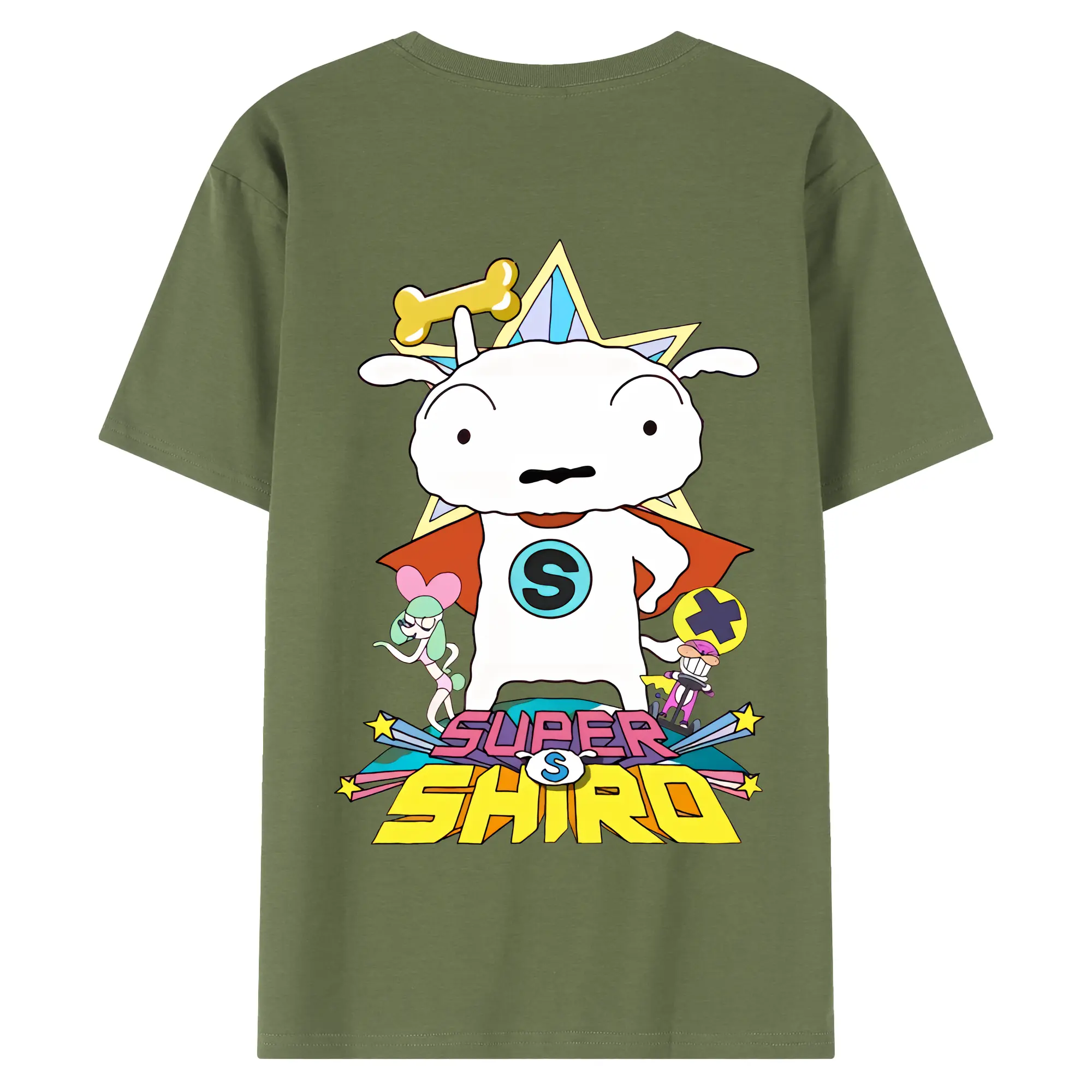 クレヨンしんちゃん グッズ シロ - 綿100% ヴィンテージ風 半袖Tシャツ ・ 背面プリント ・ 柔らか肌触り ・ 通気性 快適 ・ スポーツ カジュアル 外出用