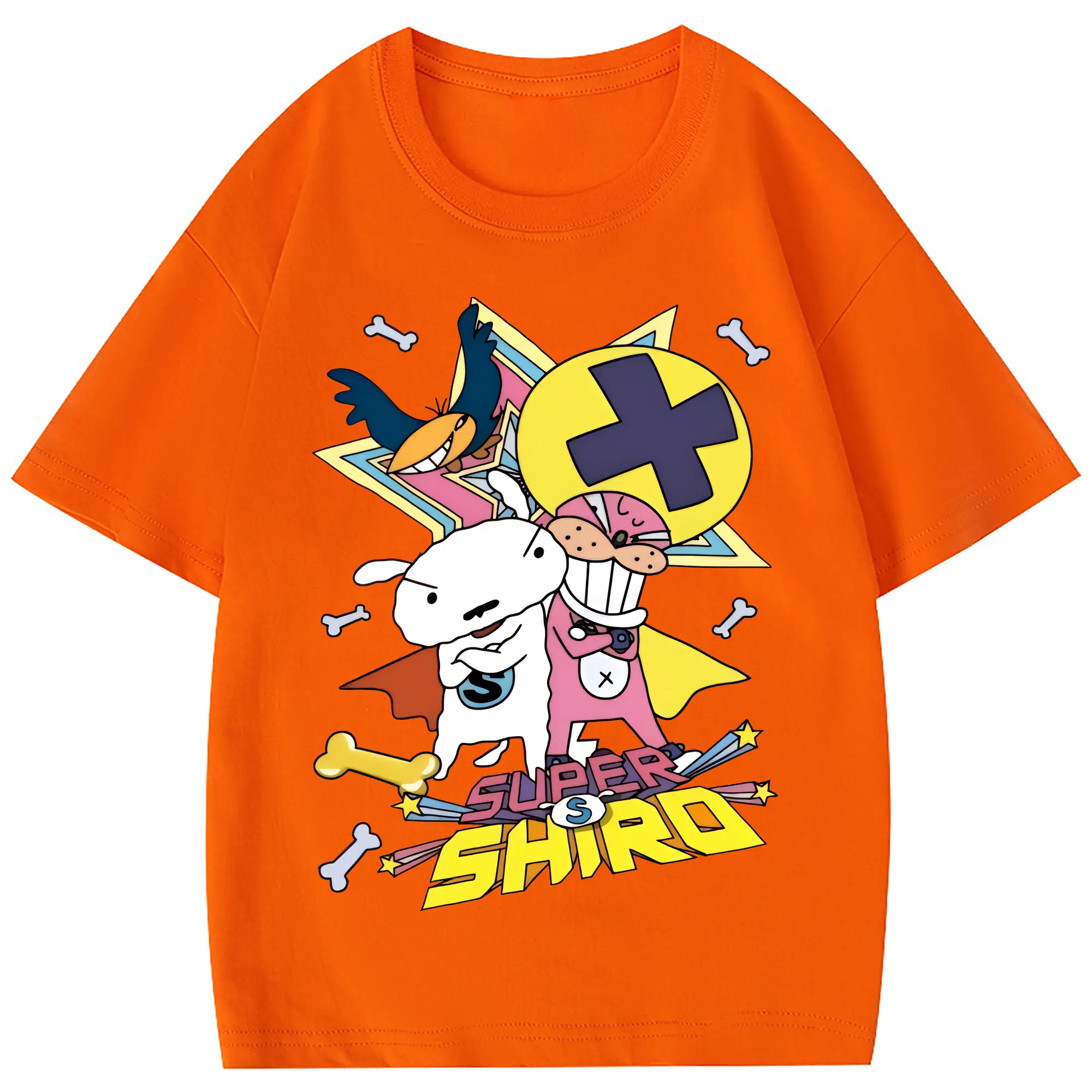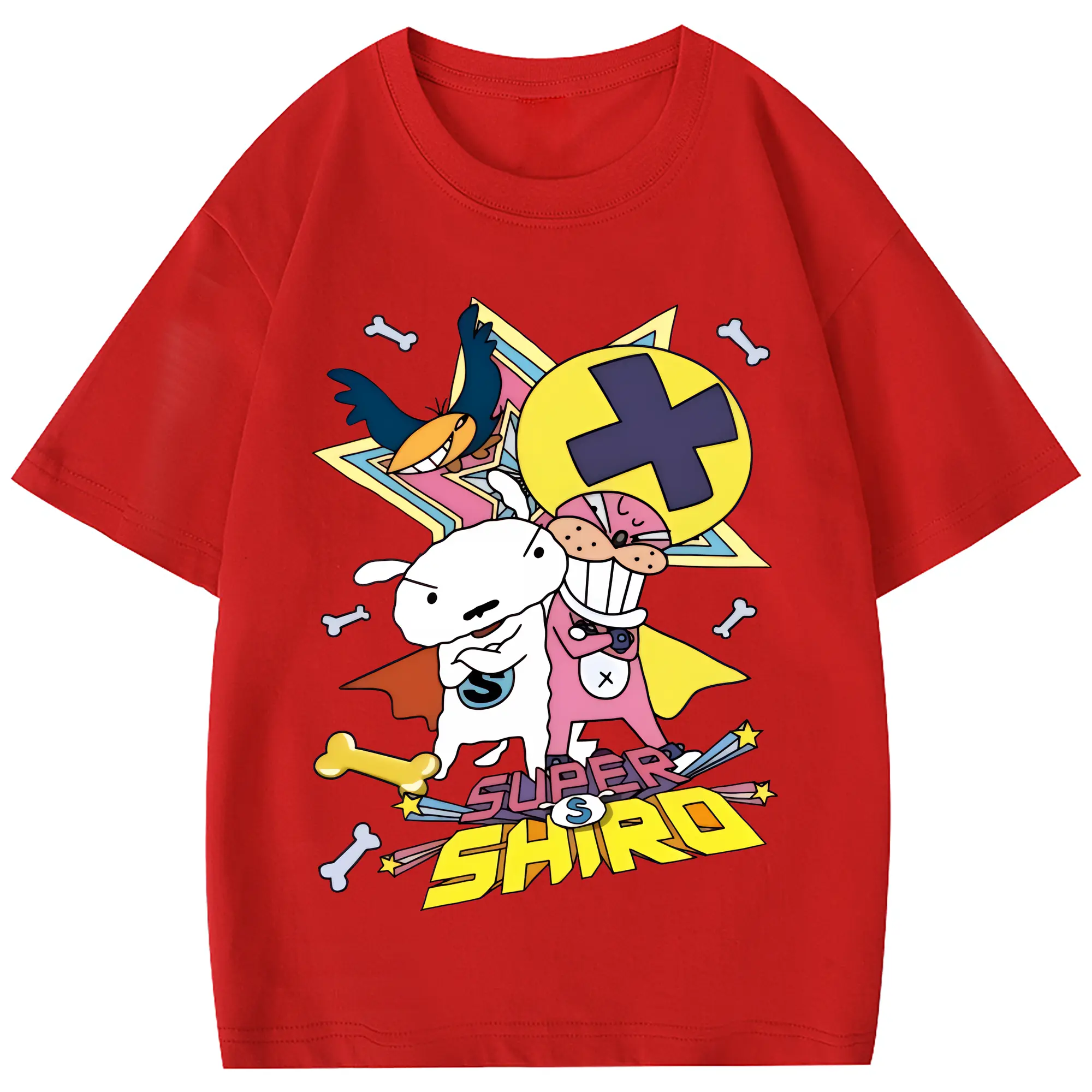 クレヨンしんちゃん グッズ シロ - 綿100% ヴィンテージ風 半袖Tシャツ ・ 背面プリント ・ 柔らか肌触り ・ 通気性 快適 ・ スポーツ カジュアル 外出用