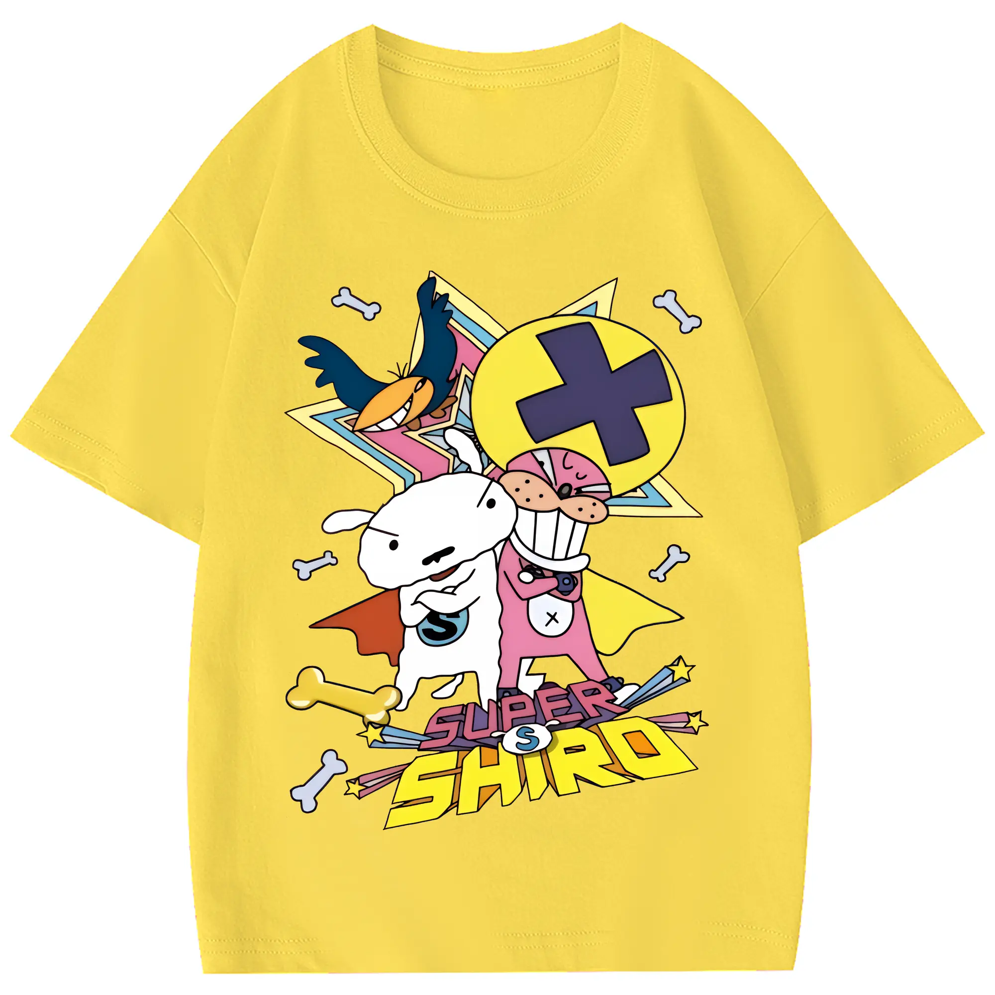 クレヨンしんちゃん グッズ シロ - 綿100% ヴィンテージ風 半袖Tシャツ ・ フロントプリント ・ 柔らか肌触り ・ 通気性 快適 ・ スポーツ カジュアル 外出用