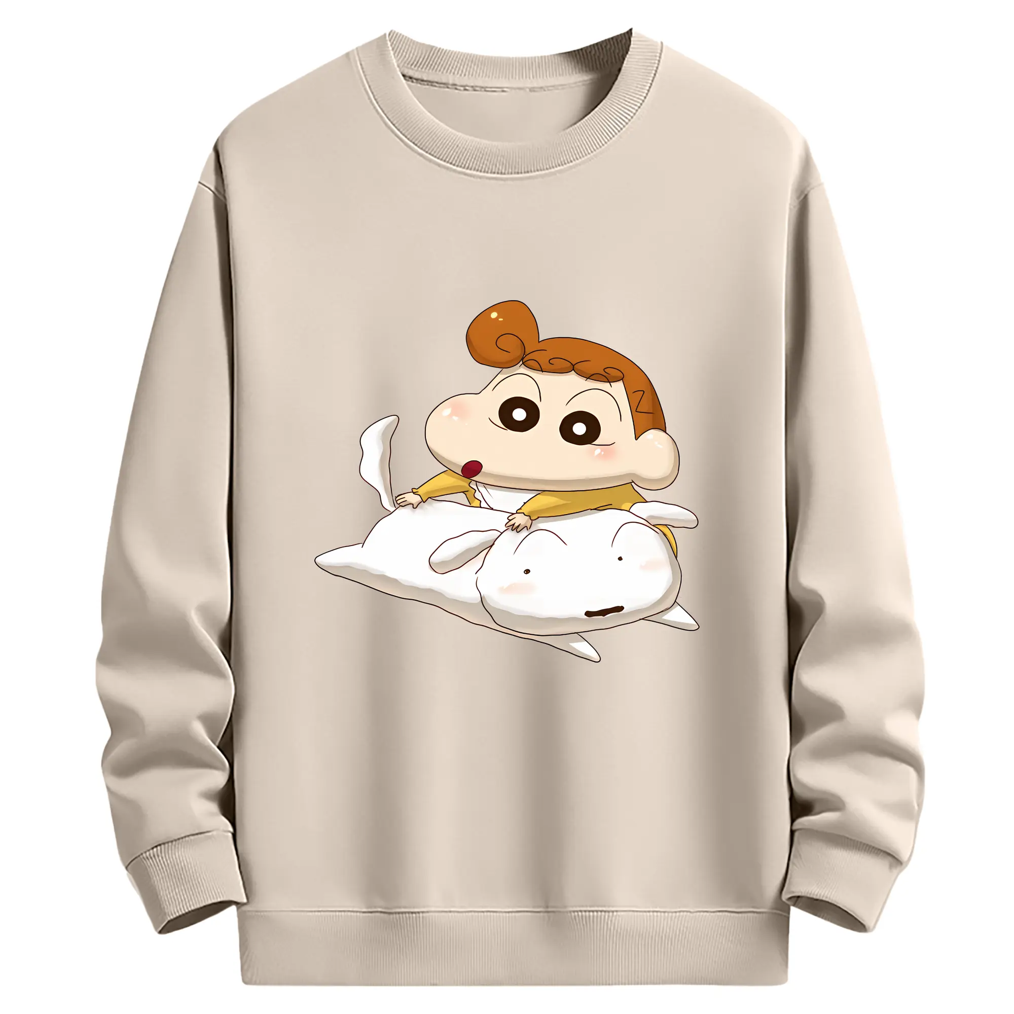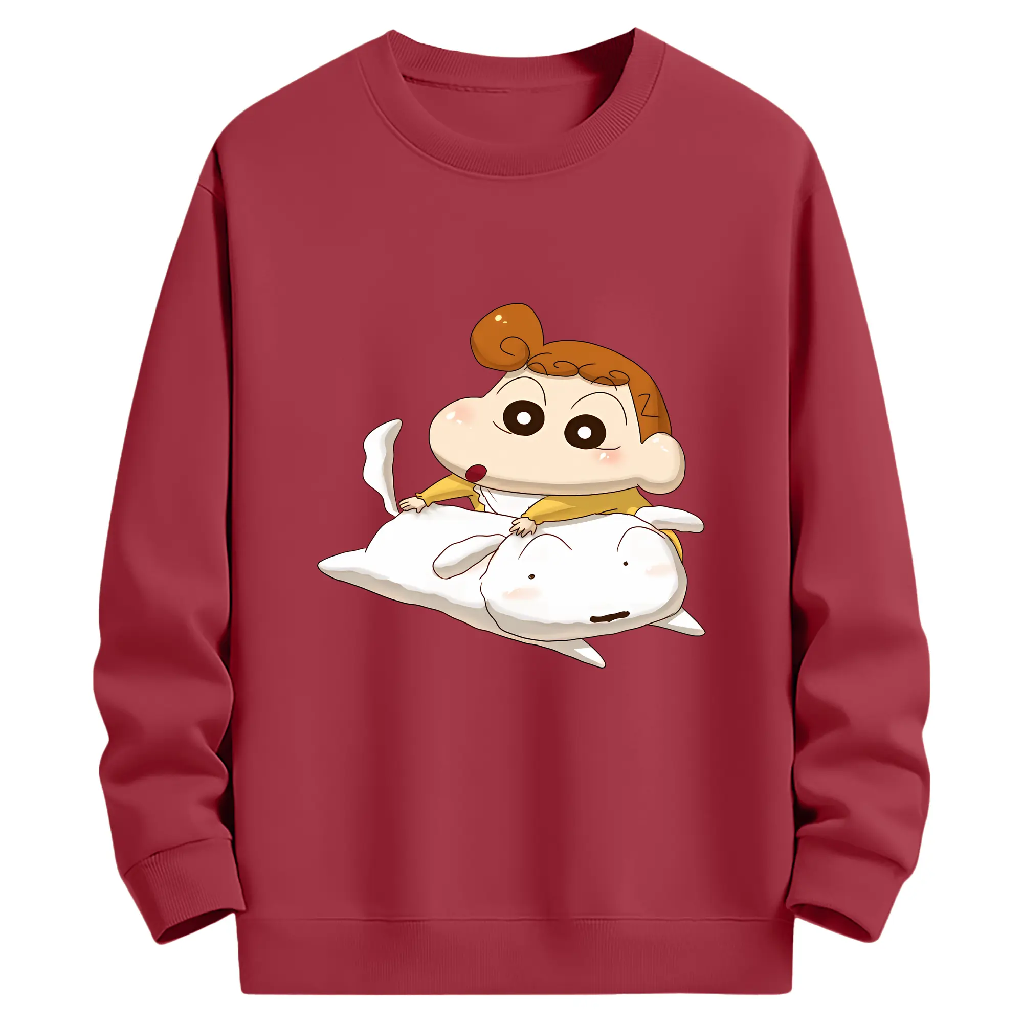 クレヨンしんちゃん グッズ シロ - 薄手 クルーネック スウェット 裏毛260g · ポリエステル 春秋向け カジュアル 男女兼用 · トレーナー デイリー スポーツ 散歩に最適