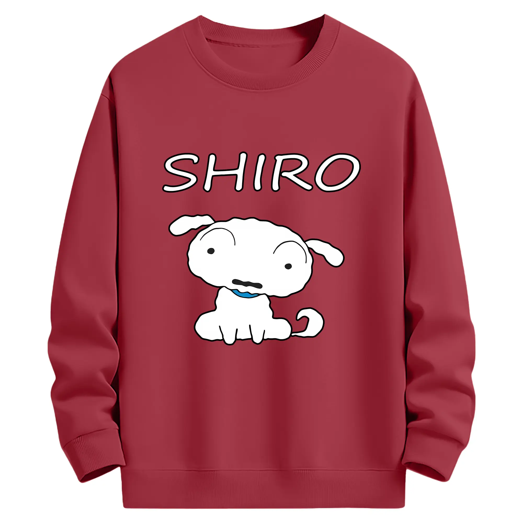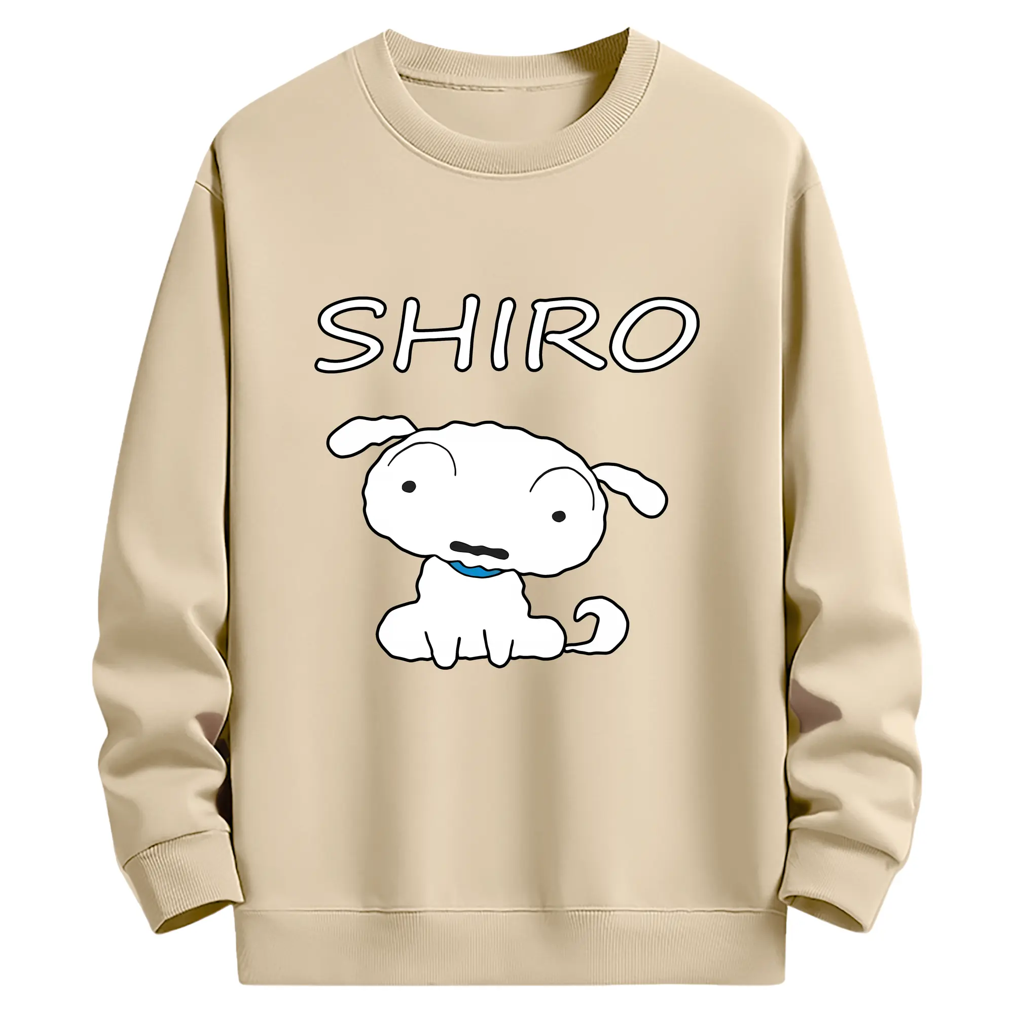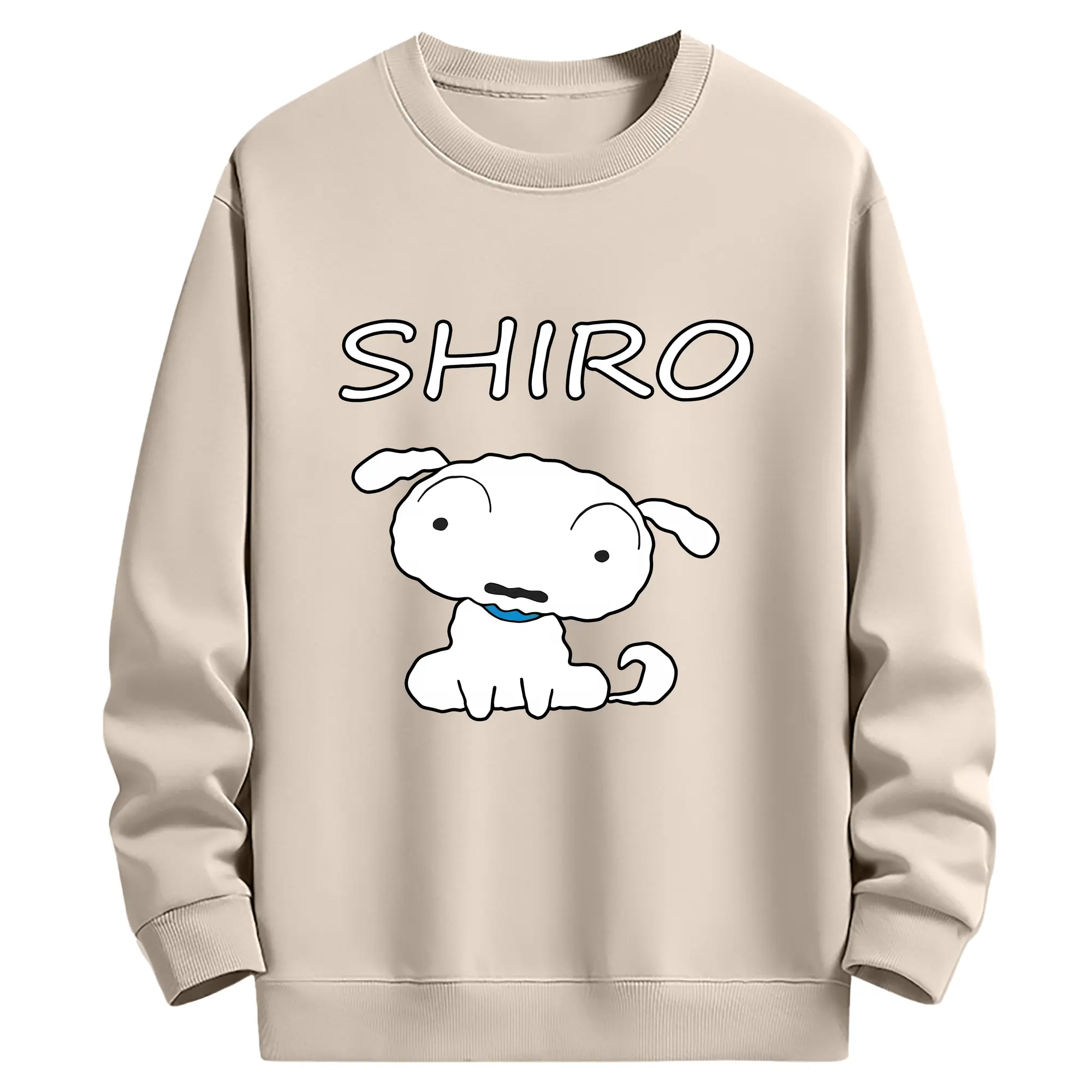 クレヨンしんちゃん グッズ シロ - 薄手 クルーネック スウェット 裏毛260g · ポリエステル 春秋向け カジュアル 男女兼用 · トレーナー デイリー スポーツ 散歩に最適