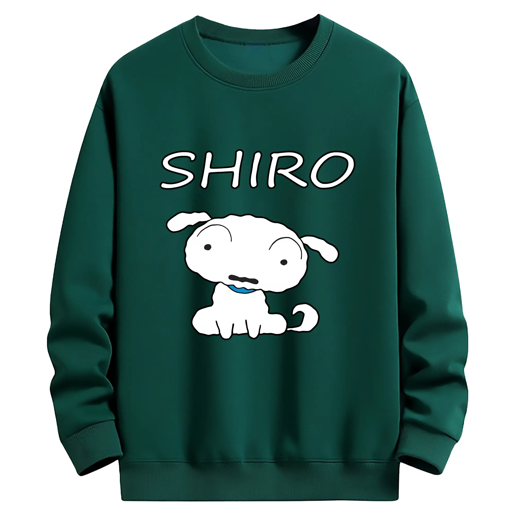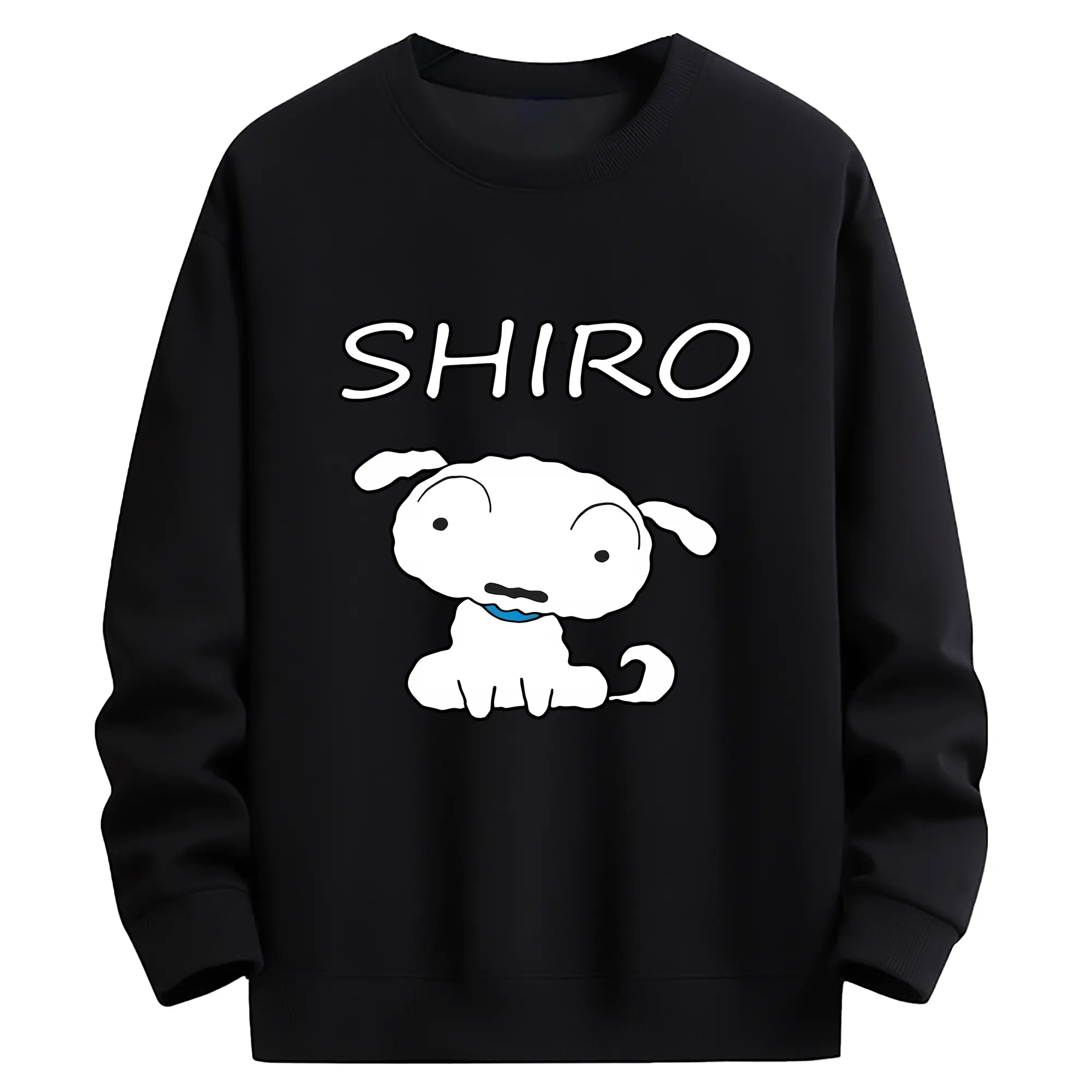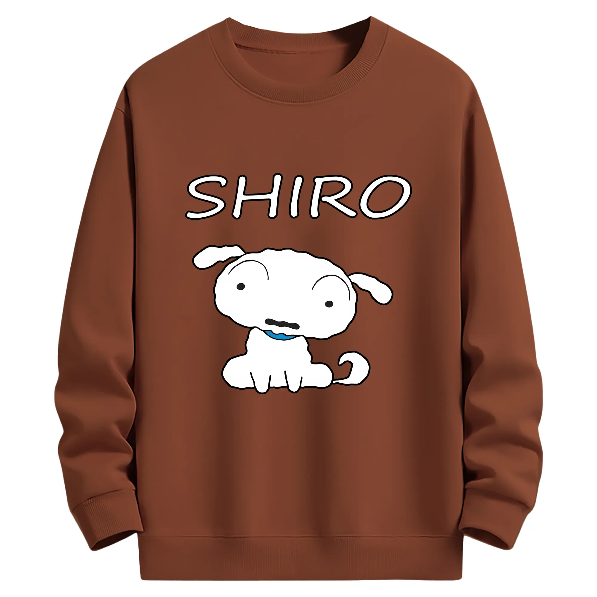 クレヨンしんちゃん グッズ シロ - 薄手 クルーネック スウェット 裏毛260g · ポリエステル 春秋向け カジュアル 男女兼用 · トレーナー デイリー スポーツ 散歩に最適