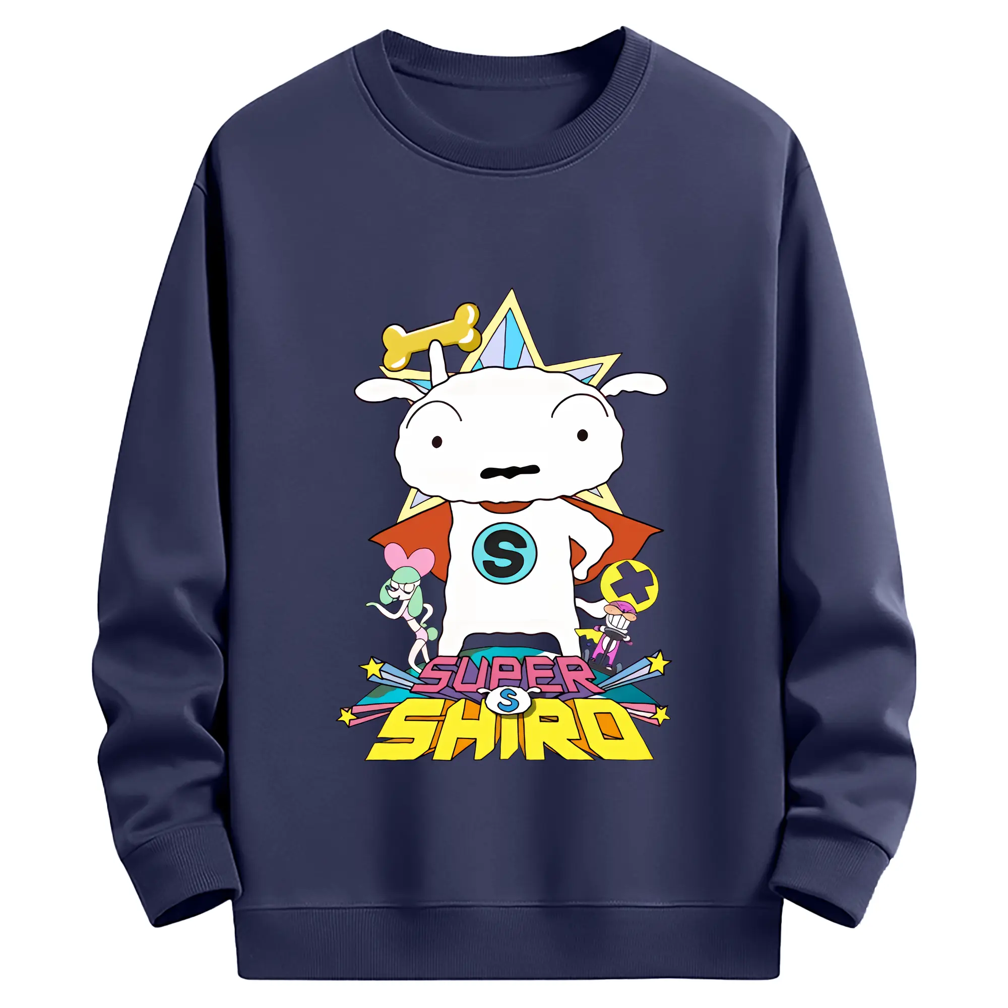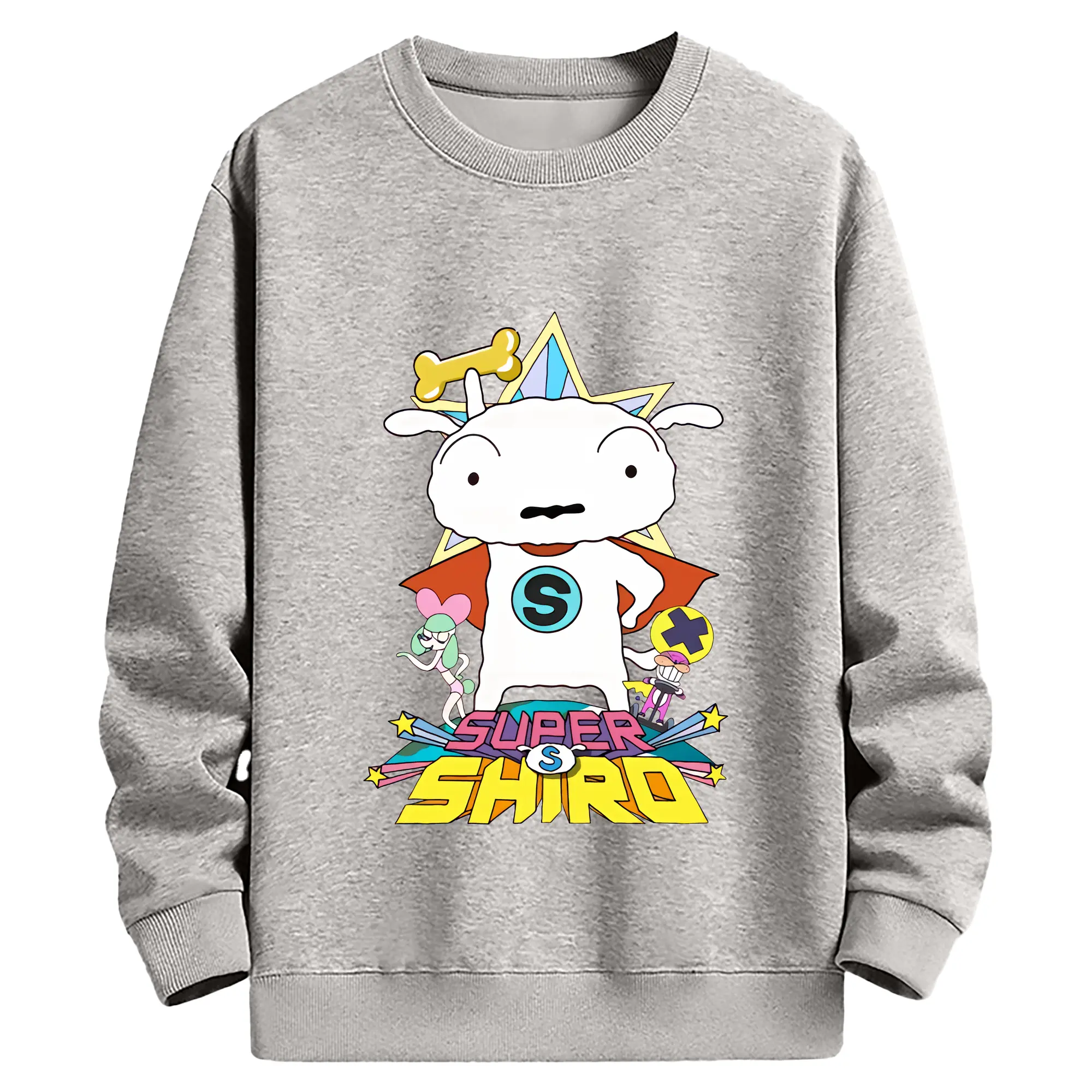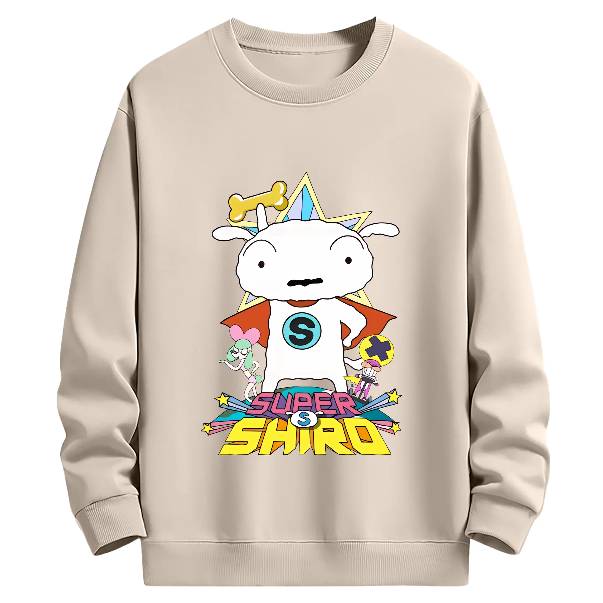 クレヨンしんちゃん グッズ シロ - 薄手 クルーネック スウェット 裏毛260g · ポリエステル 春秋向け カジュアル 男女兼用 · トレーナー デイリー スポーツ 散歩に最適