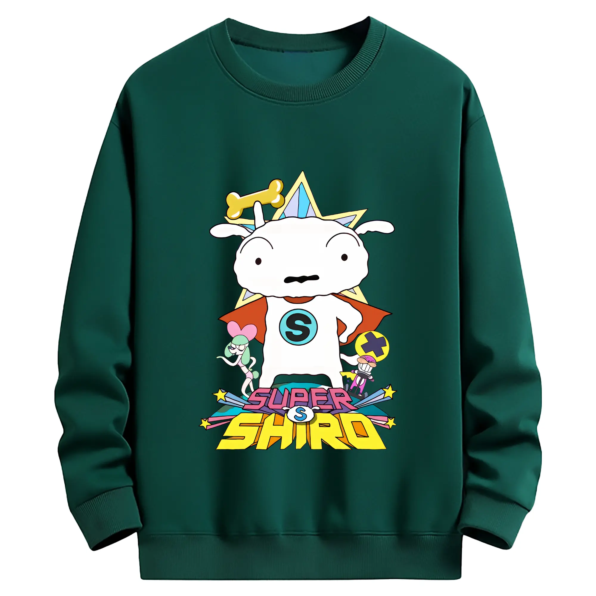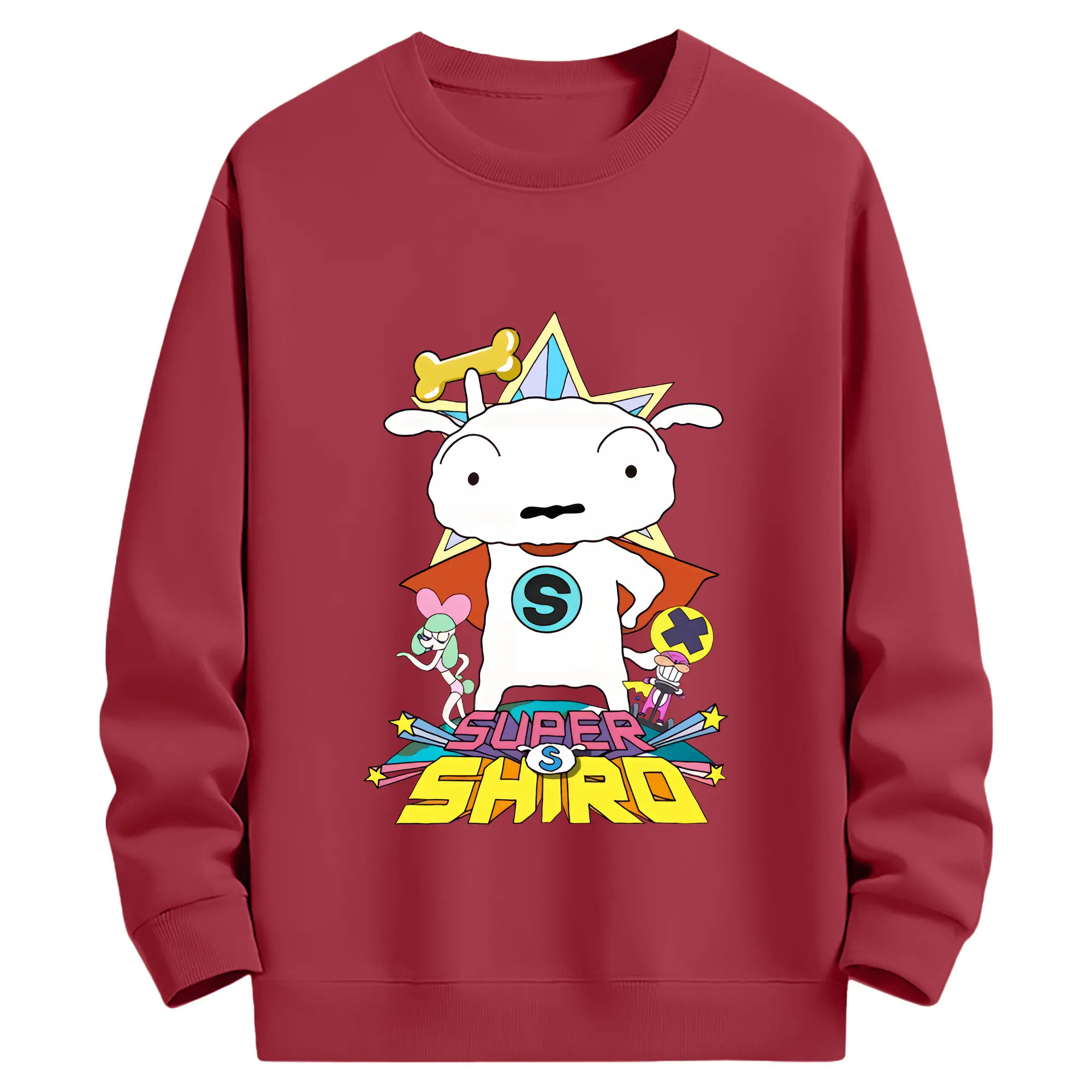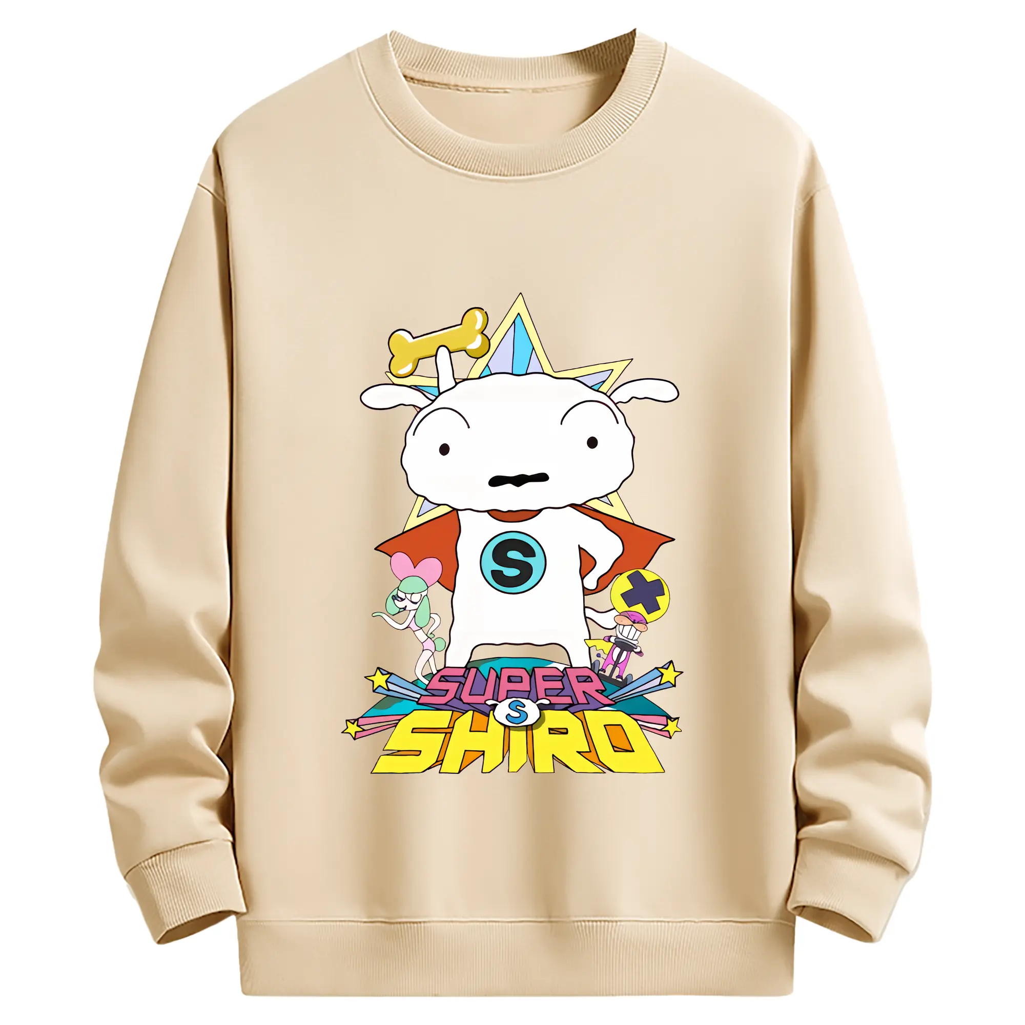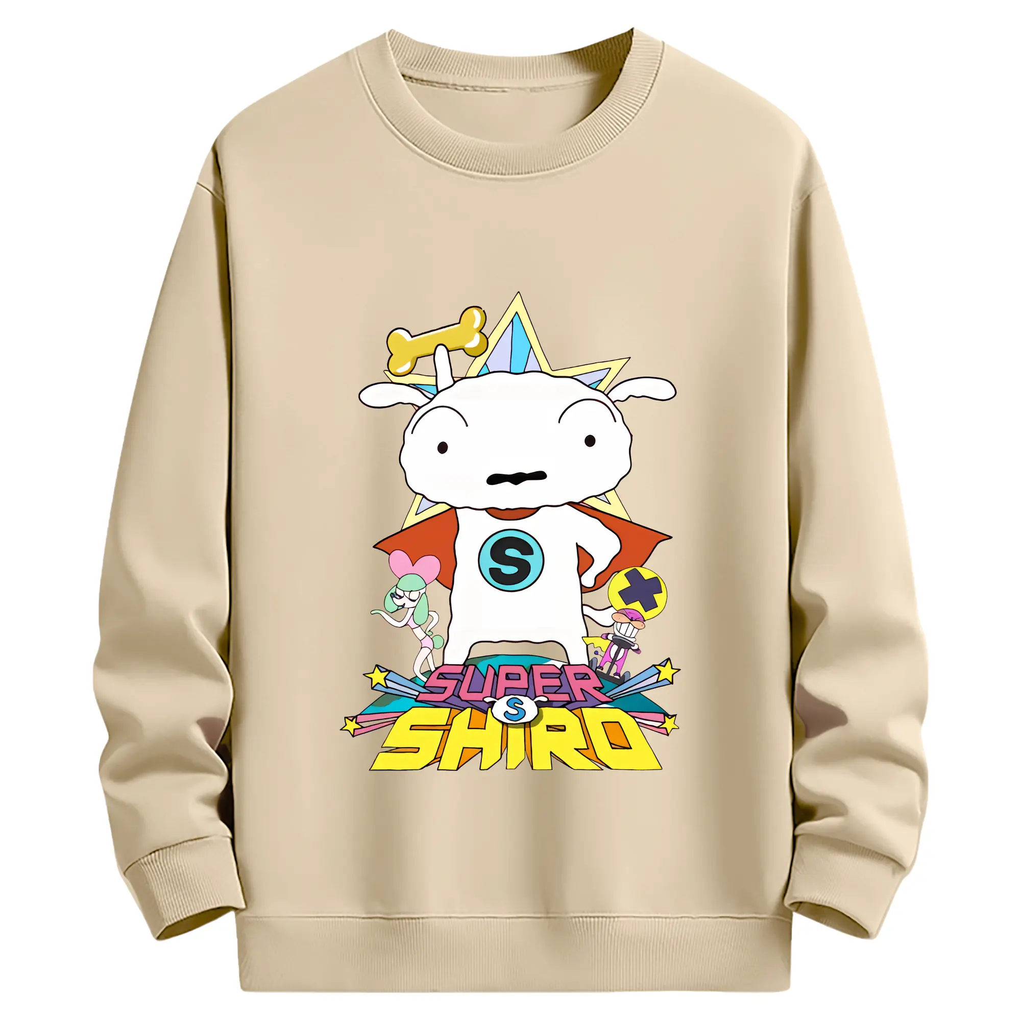 クレヨンしんちゃん グッズ シロ - 薄手 クルーネック スウェット 裏毛260g · ポリエステル 春秋向け カジュアル 男女兼用 · トレーナー デイリー スポーツ 散歩に最適